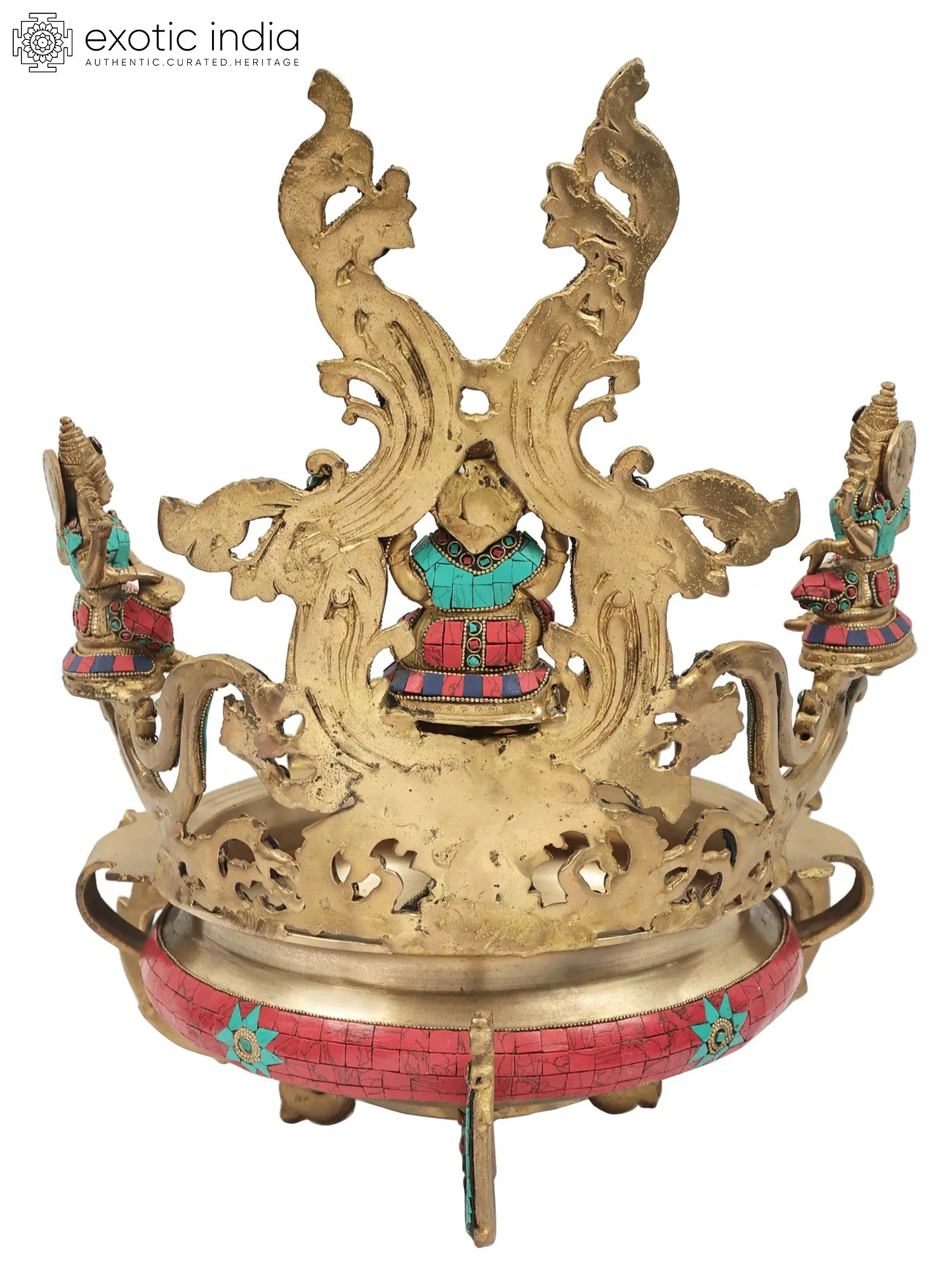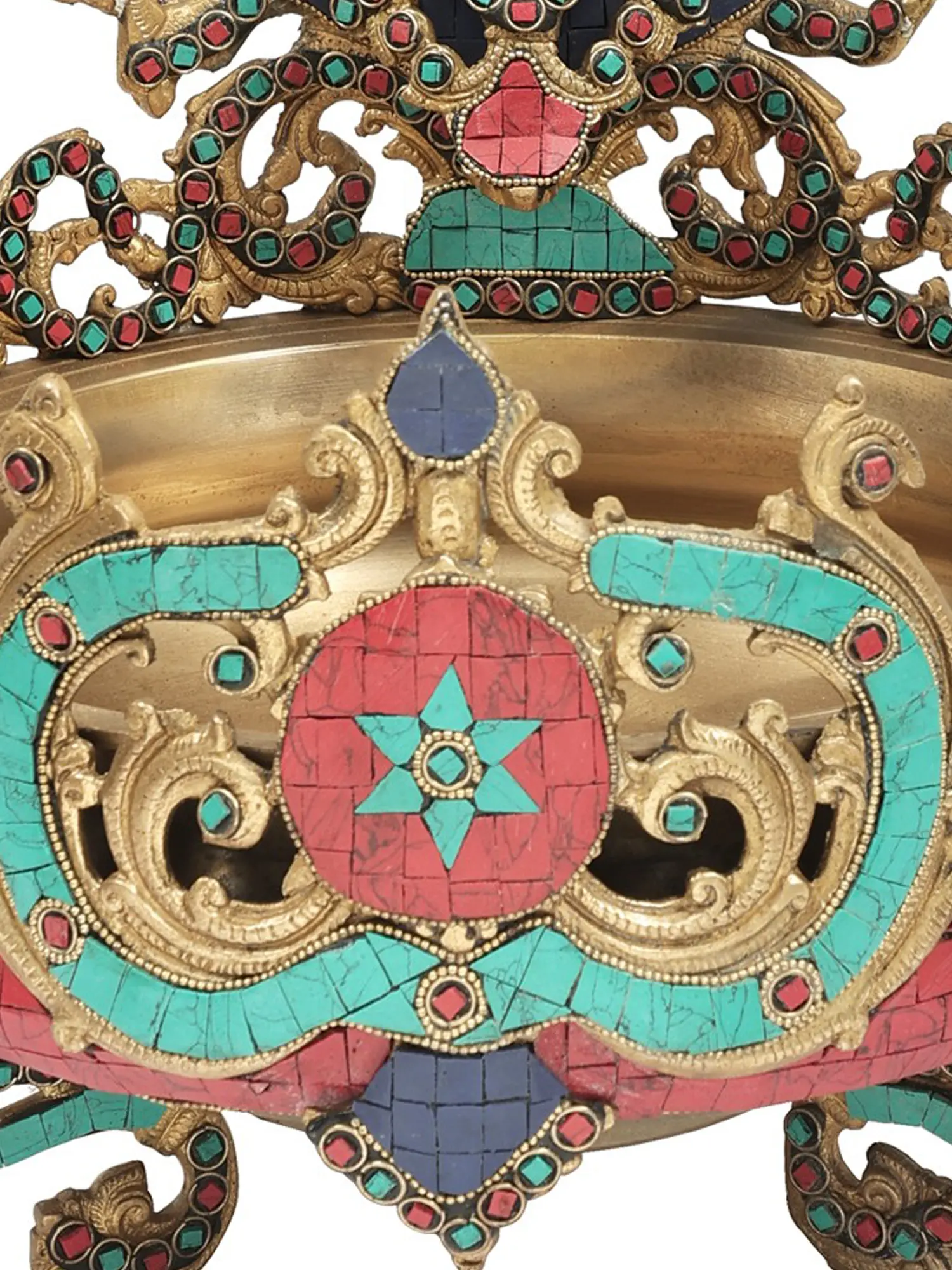 Embrace the divine presence of Lord Ganesha, Goddess Lakshmi, and Goddess Saraswati with our Beautiful Urli. Handmade with intricate inlay work in India, this brass urli is a creation that captures the essence of divine blessings. The central-mounted Ganesha symbolizes wisdom and auspicious beginnings, while Lakshmi and Saraswati bring wealth and knowledge. Place it in your home as a decorative piece, and let it fill your space with positivity and spirituality. Experience the divine blessings with the Beautiful Urli, a symbol of wisdom, wealth, and the harmonious presence of divine energies.