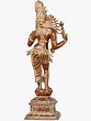 The Ardharishvara is a composite deity and a self-sufficient unit. The brass Ardhanarishvara that you see on this page comes with a stoney, etched-in finish. The colour is a deep, polished brown, punctuated with the pale etchings of the garments, the shringar, and the crown.