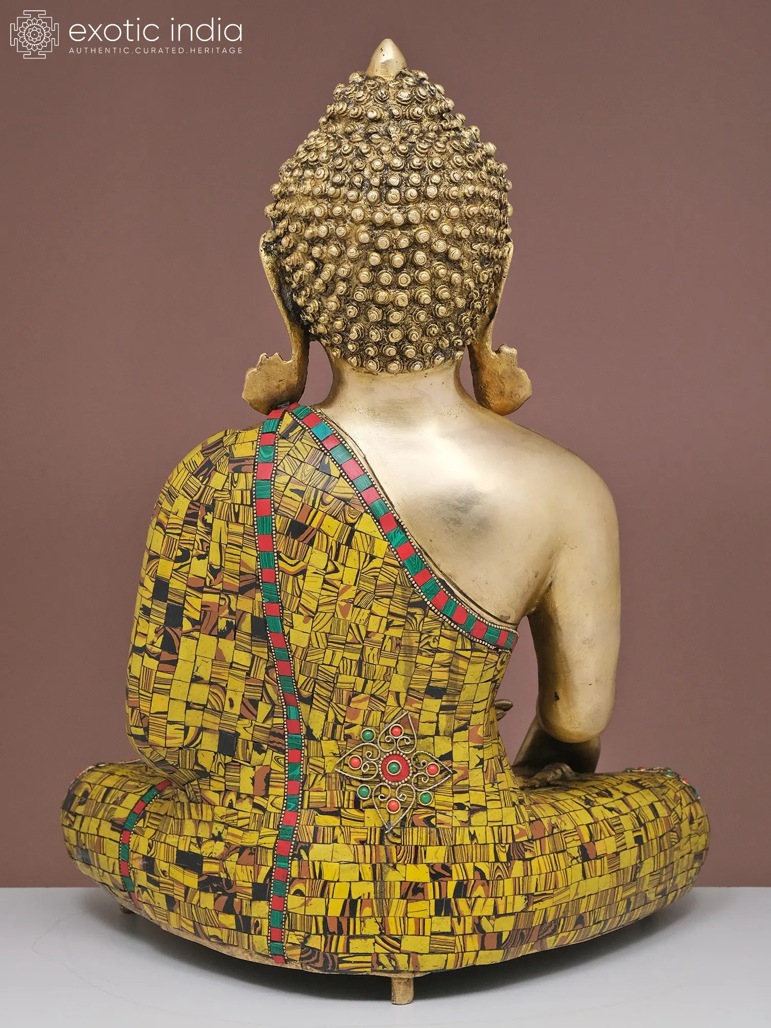 20" Brass Bhumisparsha Buddha with Inlay Work | Handmade
