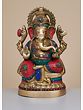 20" Brass Lord Ganesha Seated on Oval Base with Inlay Work | Handmade