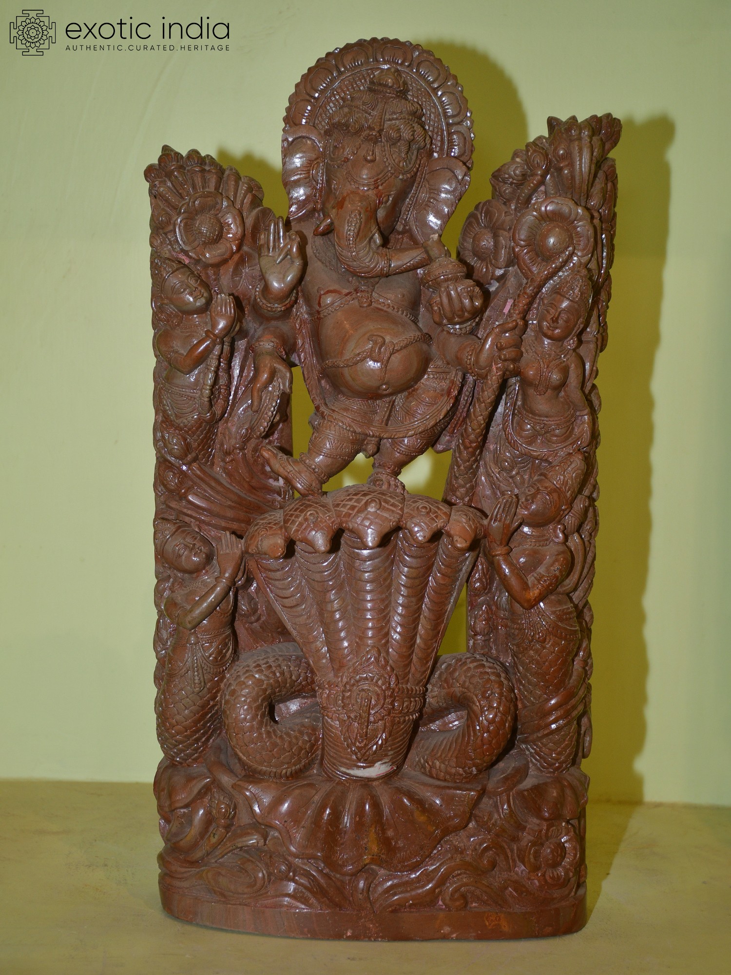 15" Brass Lord Ganesha Statue with Umbrella | Handmade | Made in India
