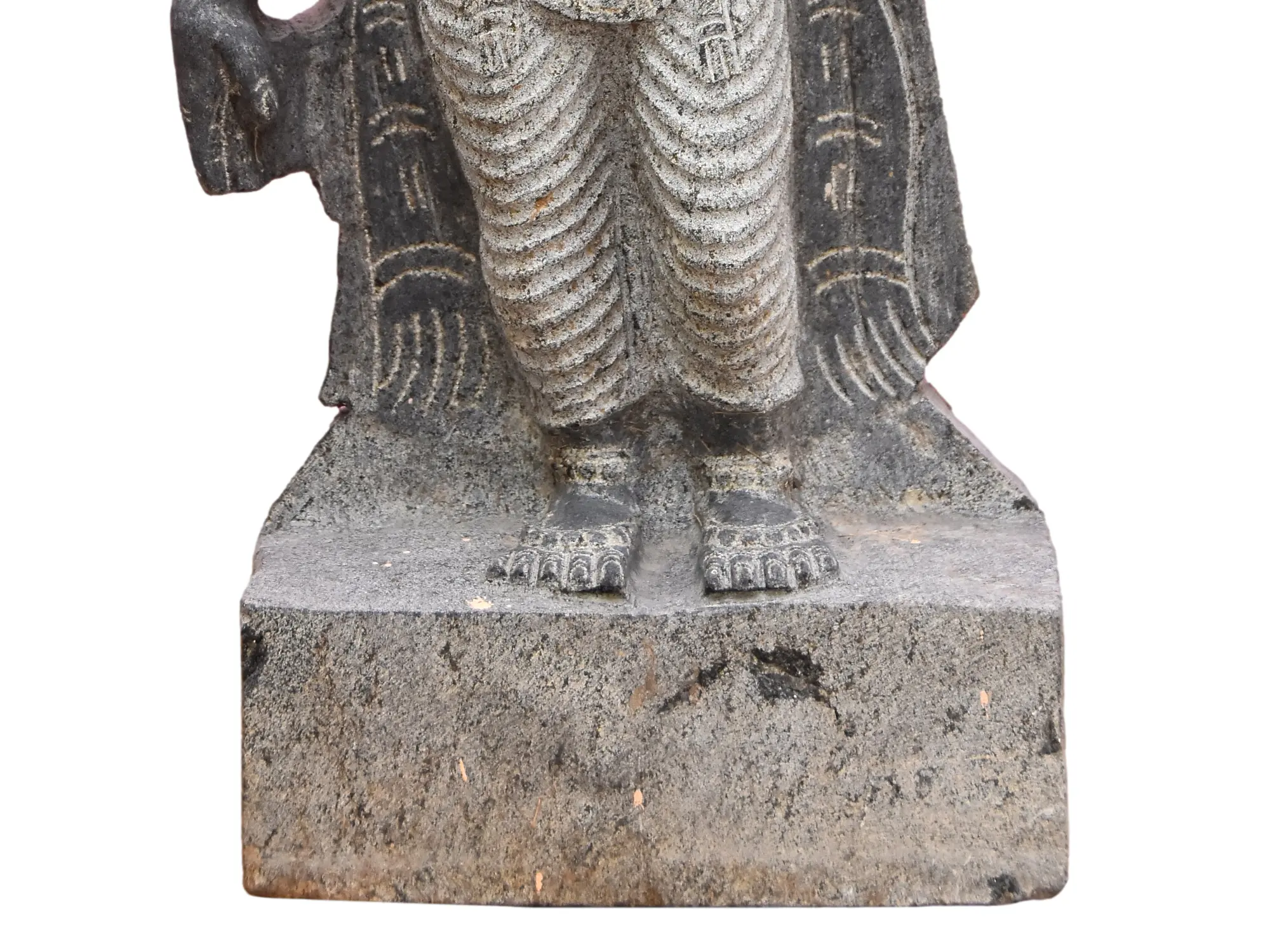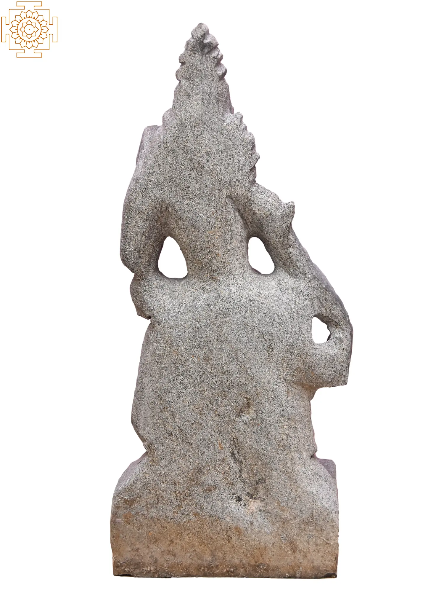 The feminine grace and grandeur of Uma Parvati's presence have been captured for a long time in the aesthetically delicate idiom of Chola bronzes, which are popular the world over for their unparalleled treatment of Devi's divine form. This granite stone statue recreates the elegance of Uma as "Shivakamasundari" (the beloved of Shiva), with the iconography of Panchaloha, but in an immensely hard material, in a manner that inspires awe and admiration for the craft and the craftsmen.