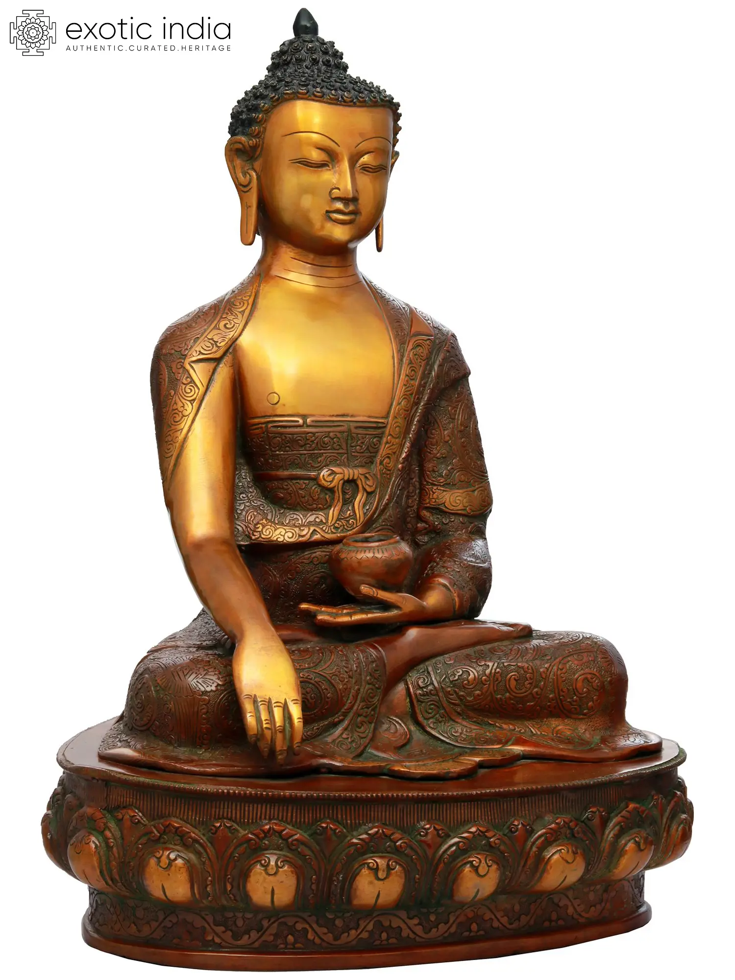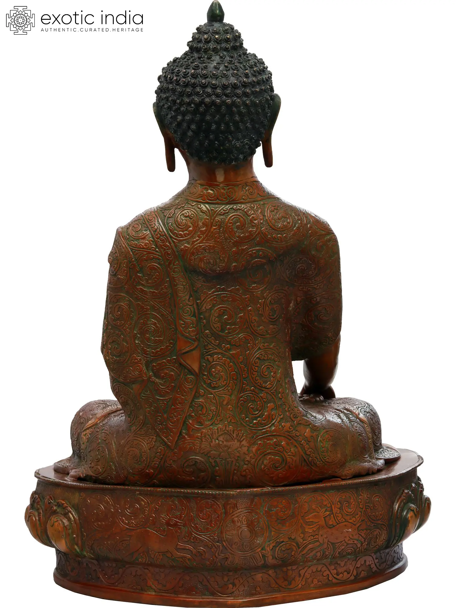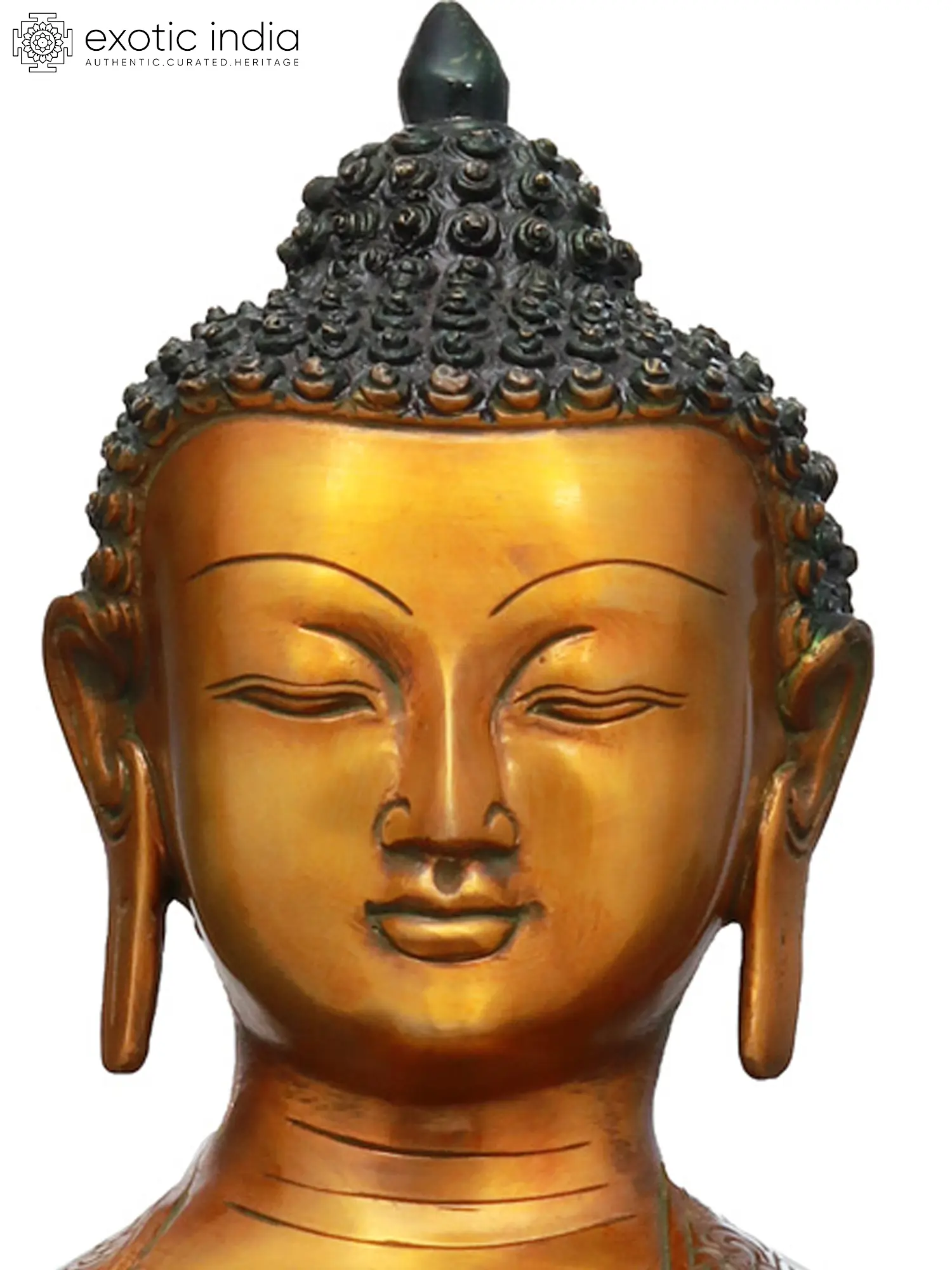 20" Lord Buddha in Earth Touching Gesture Wearing a Fullly Carved Robe (Tibetan Buddhist) In Brass | Handmade | Made In India