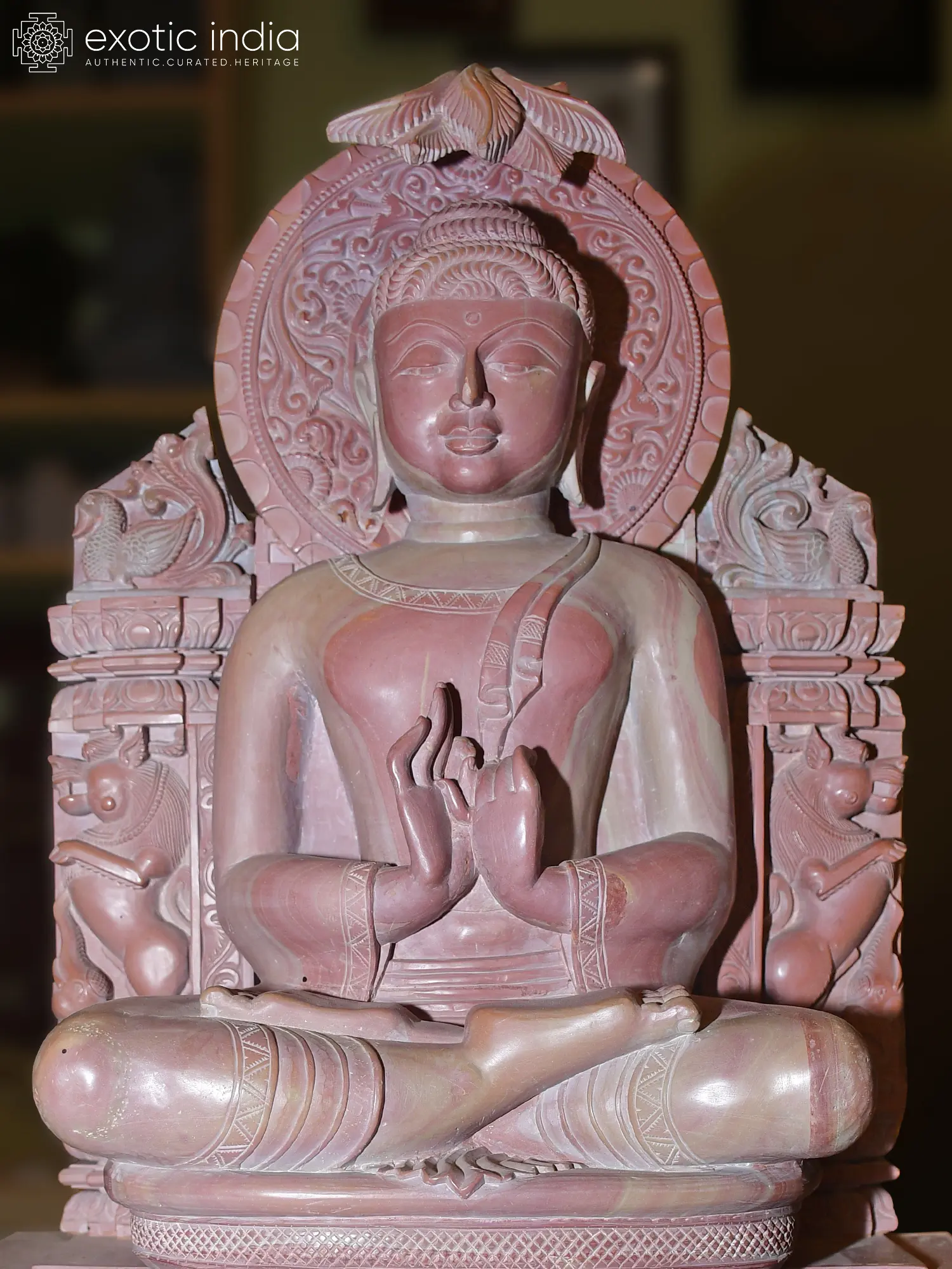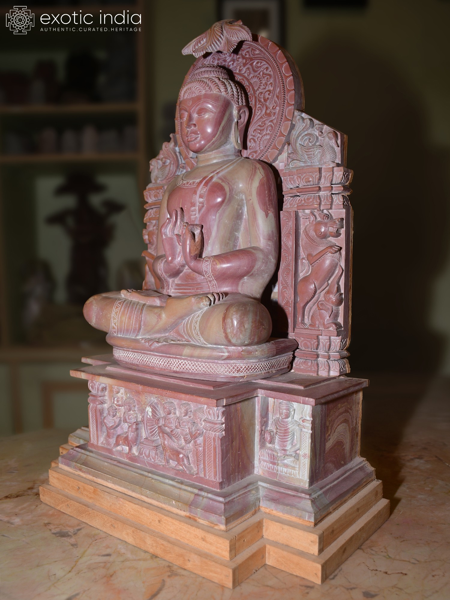 9" Red Conch (Shankh) | Orissa Stone Statue | Exquisite Indian Handmade Art