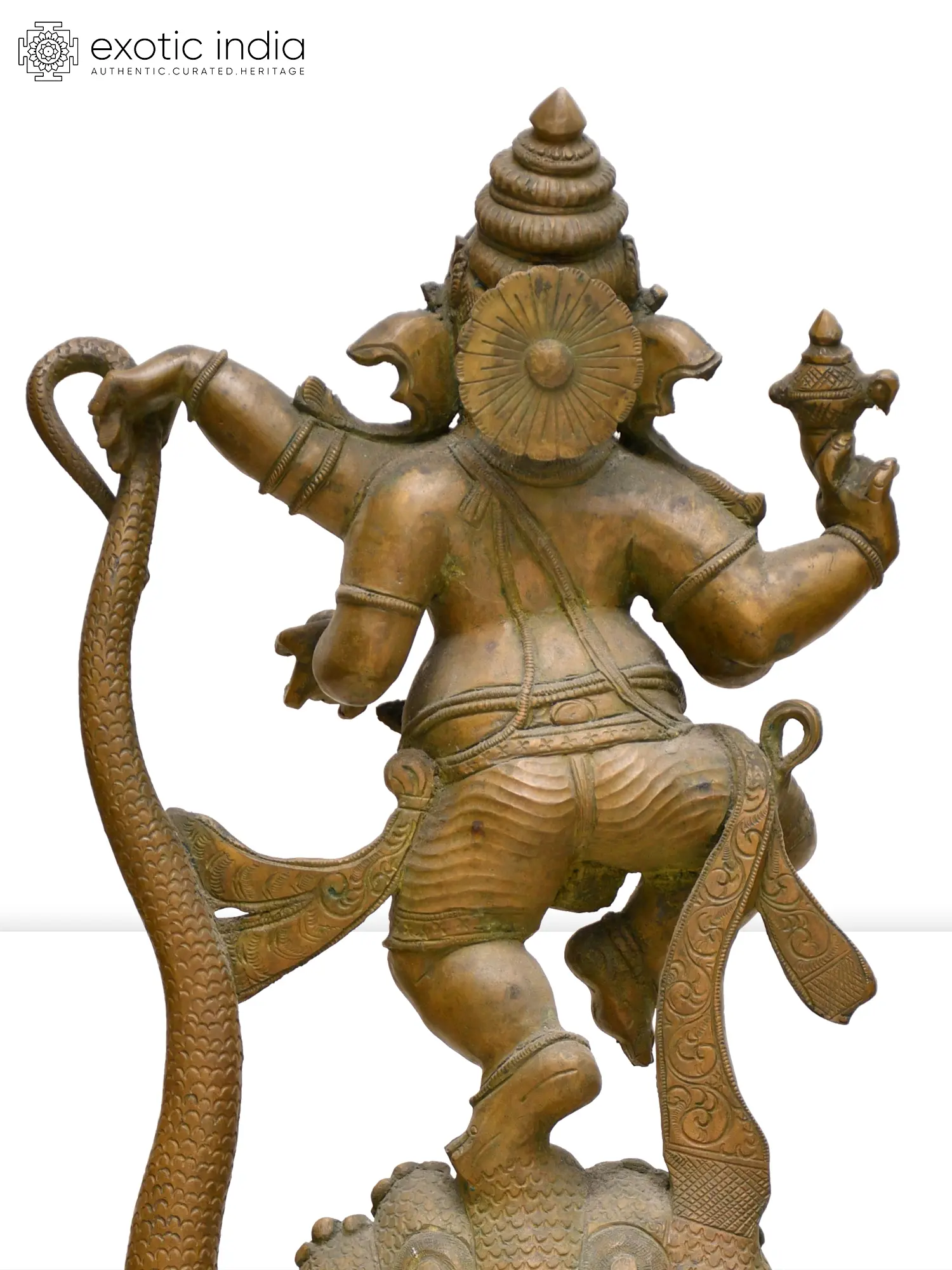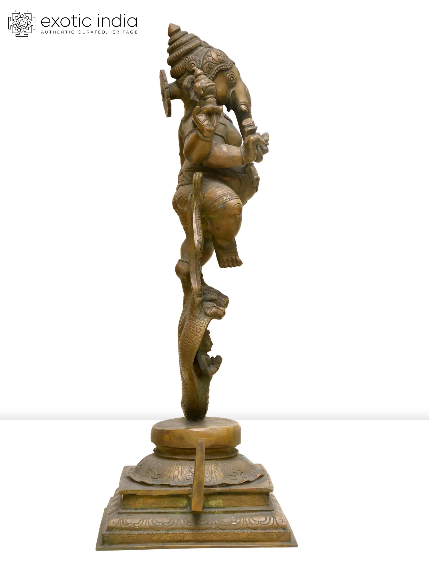 This bronze statue of Nritya-Ganapati represents Ganesha's triumph over Adi-Shesha as described in the Ganesha Purana.