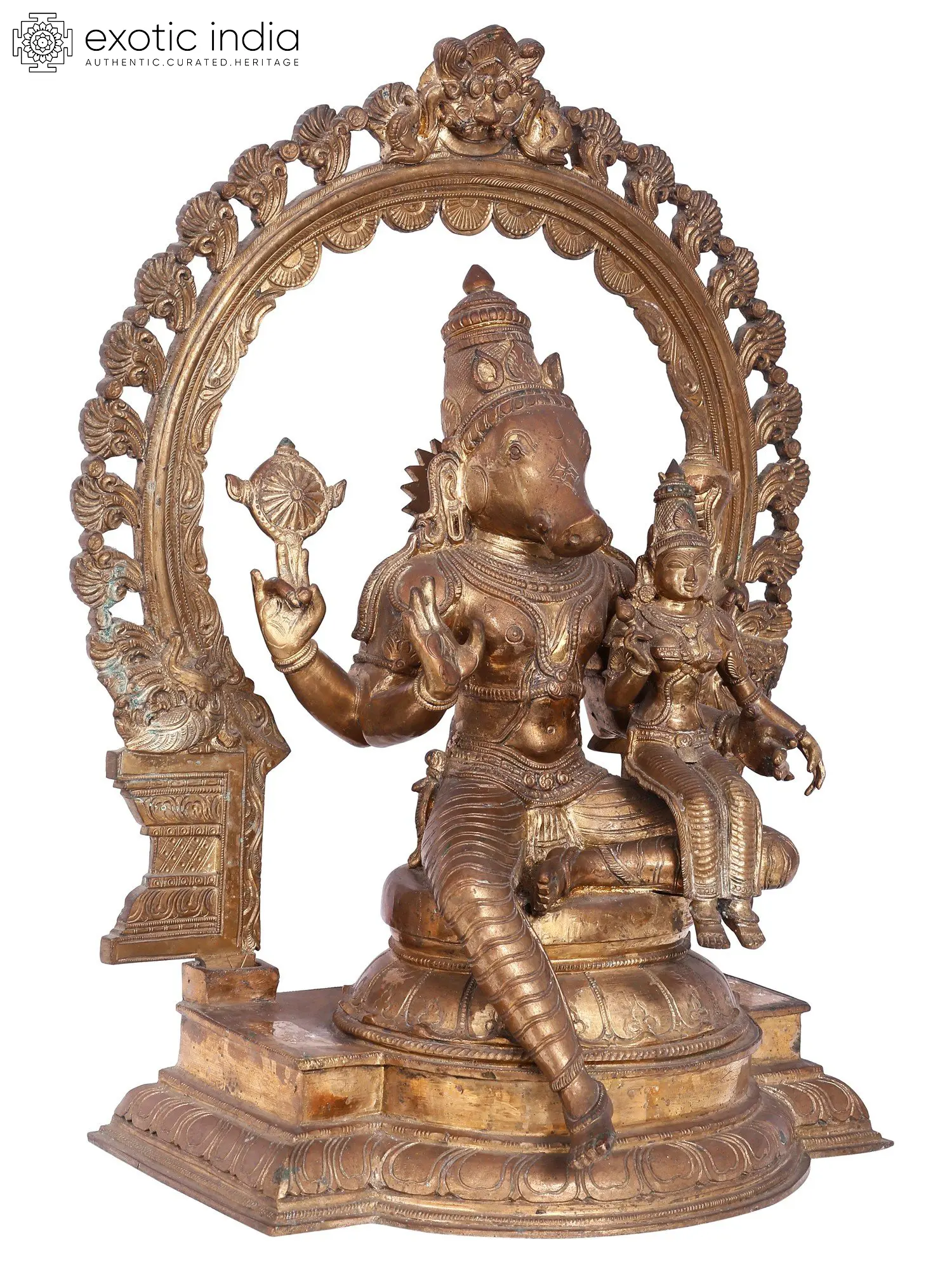 20'' Lord Varaha with Goddess Lakshmi | Madhuchista Vidhana (Lost-Wax) | Panchaloha Bronze from Swamimalai