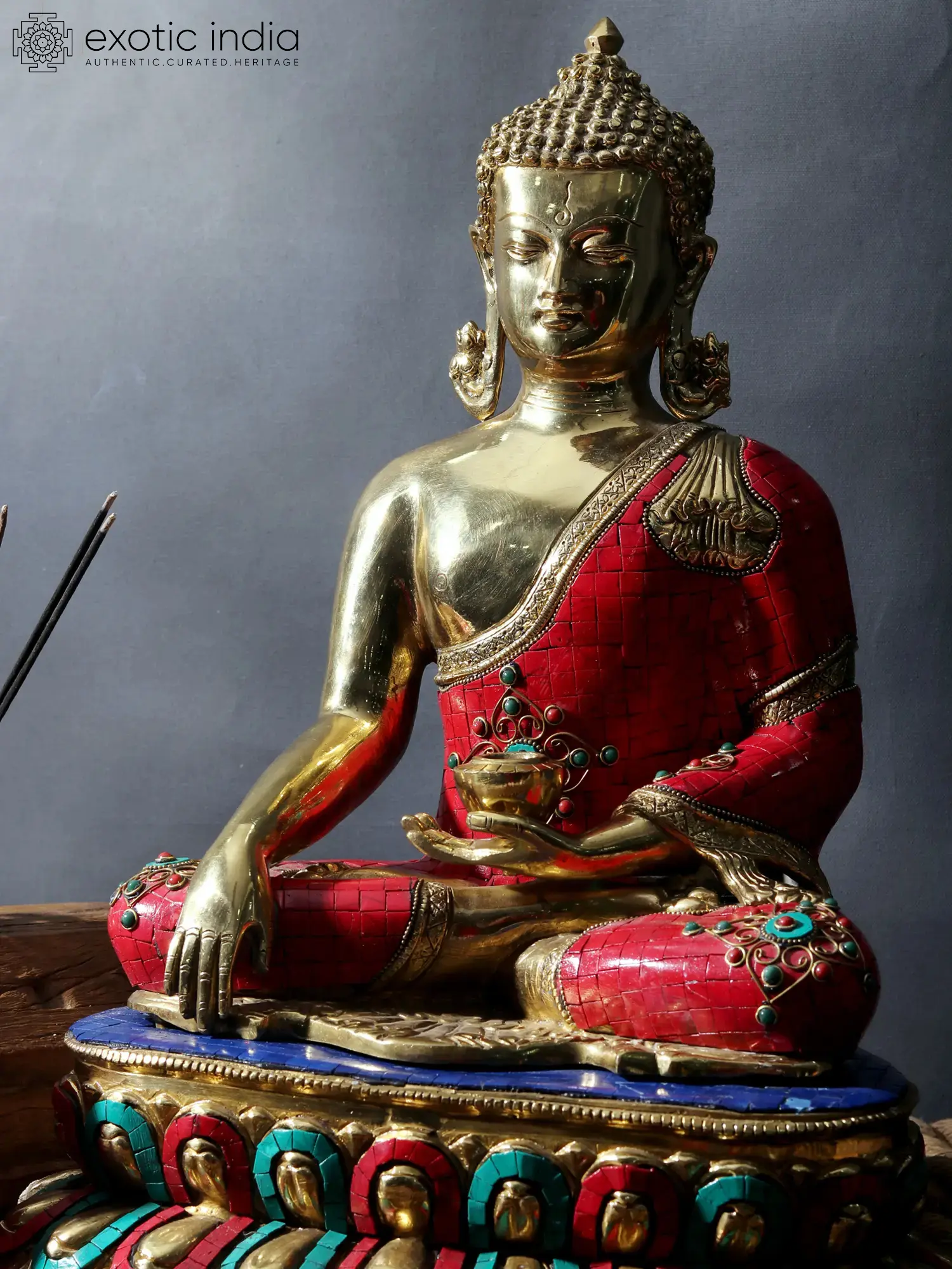 20" The Radiant Buddha, Seated on Double Lotus (Tibetan Buddhist) In Brass | Handmade | Made In India