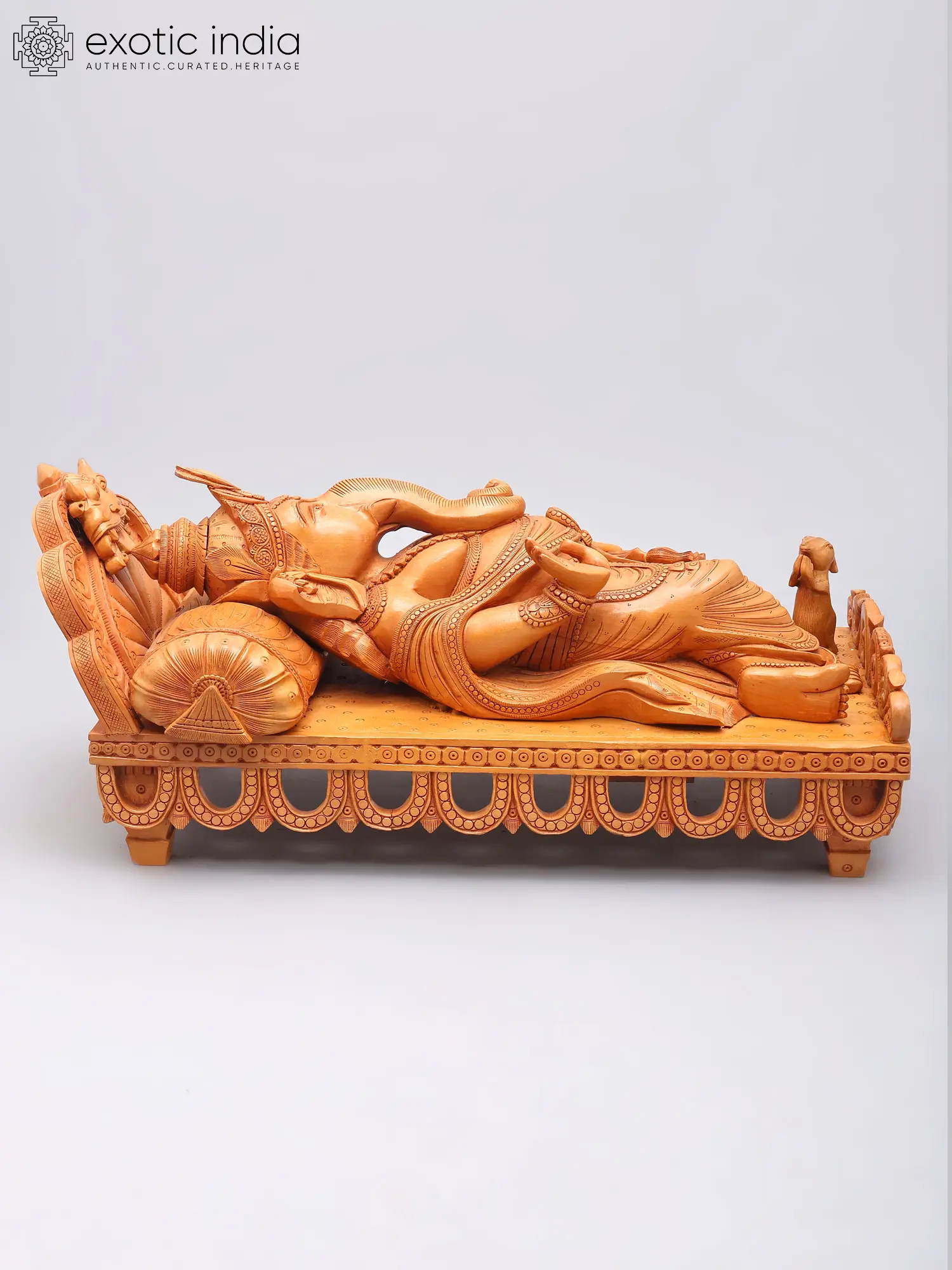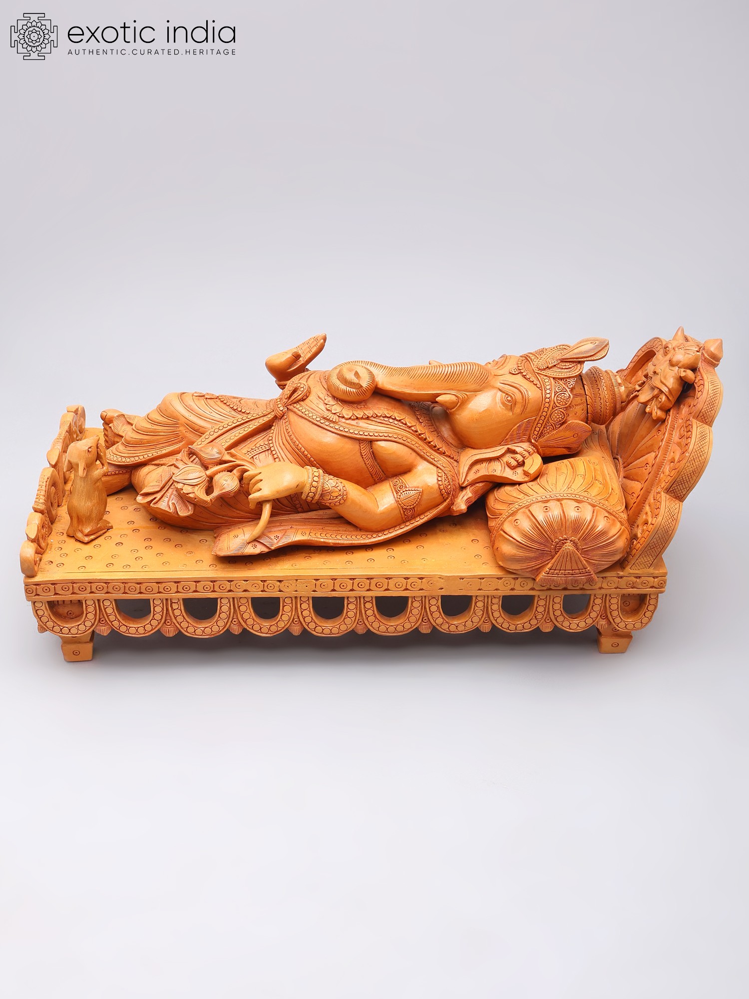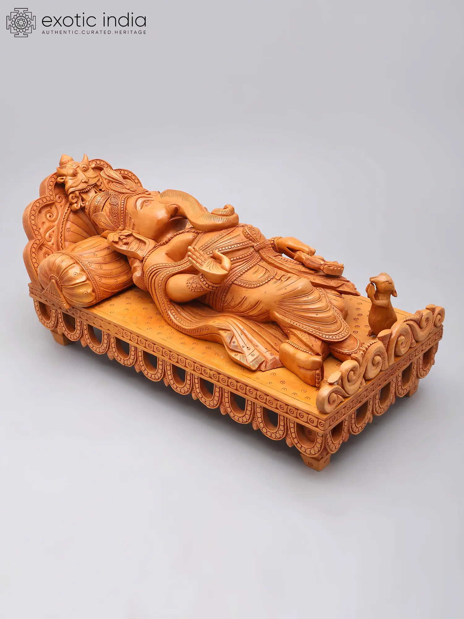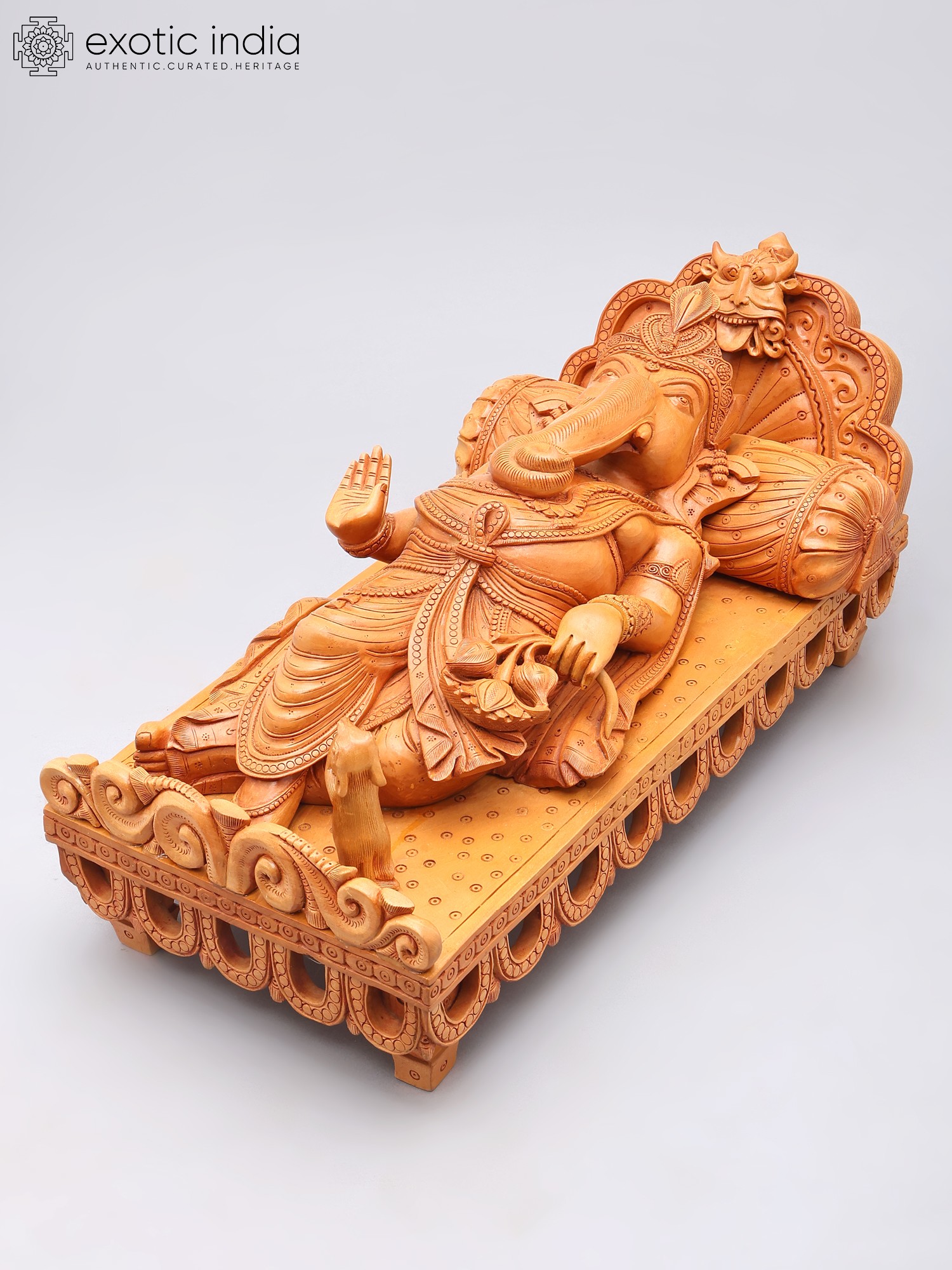 Relaxing Ganesha Wooden Sculpture | South Indian Temple Wood Carving