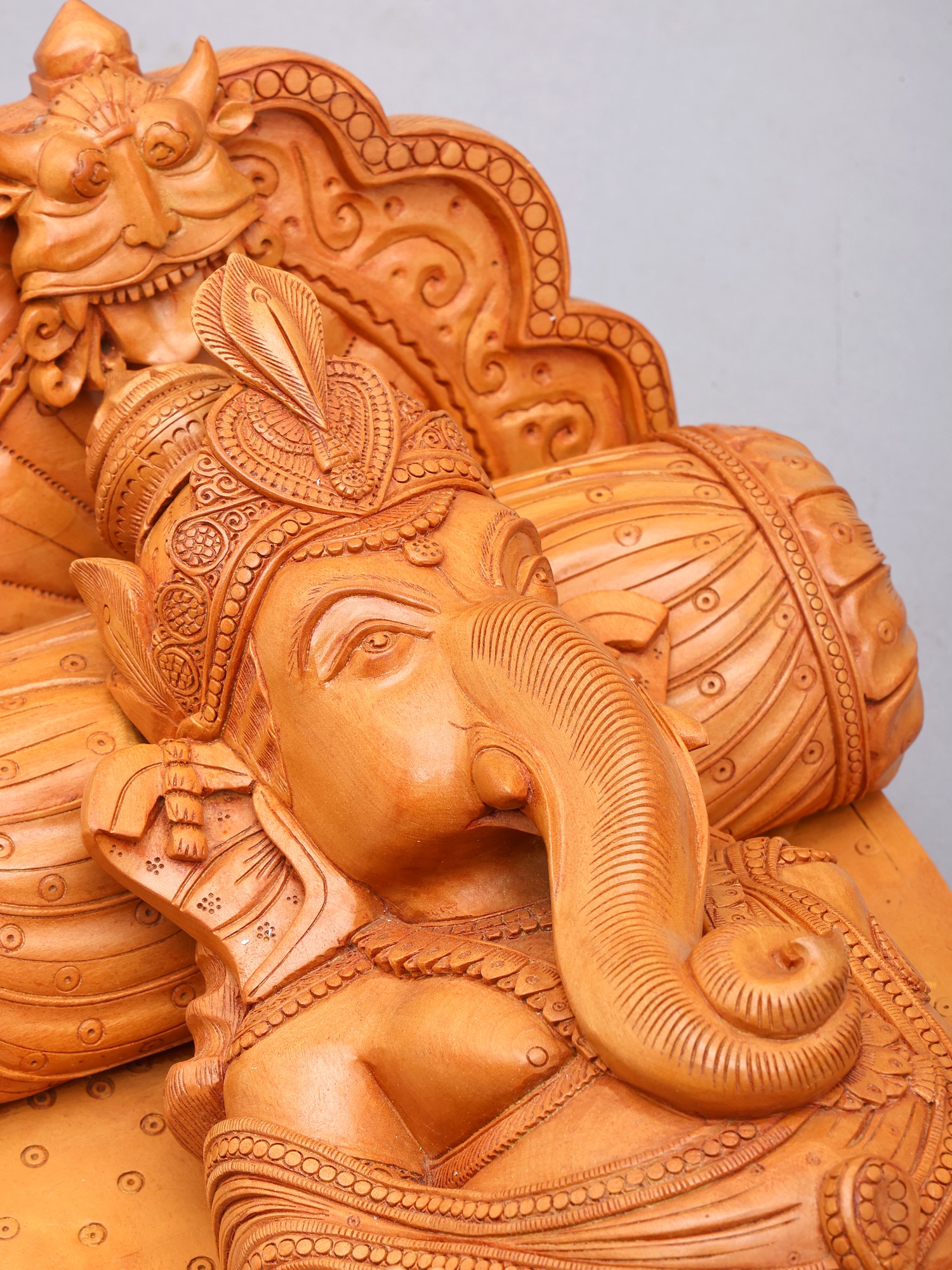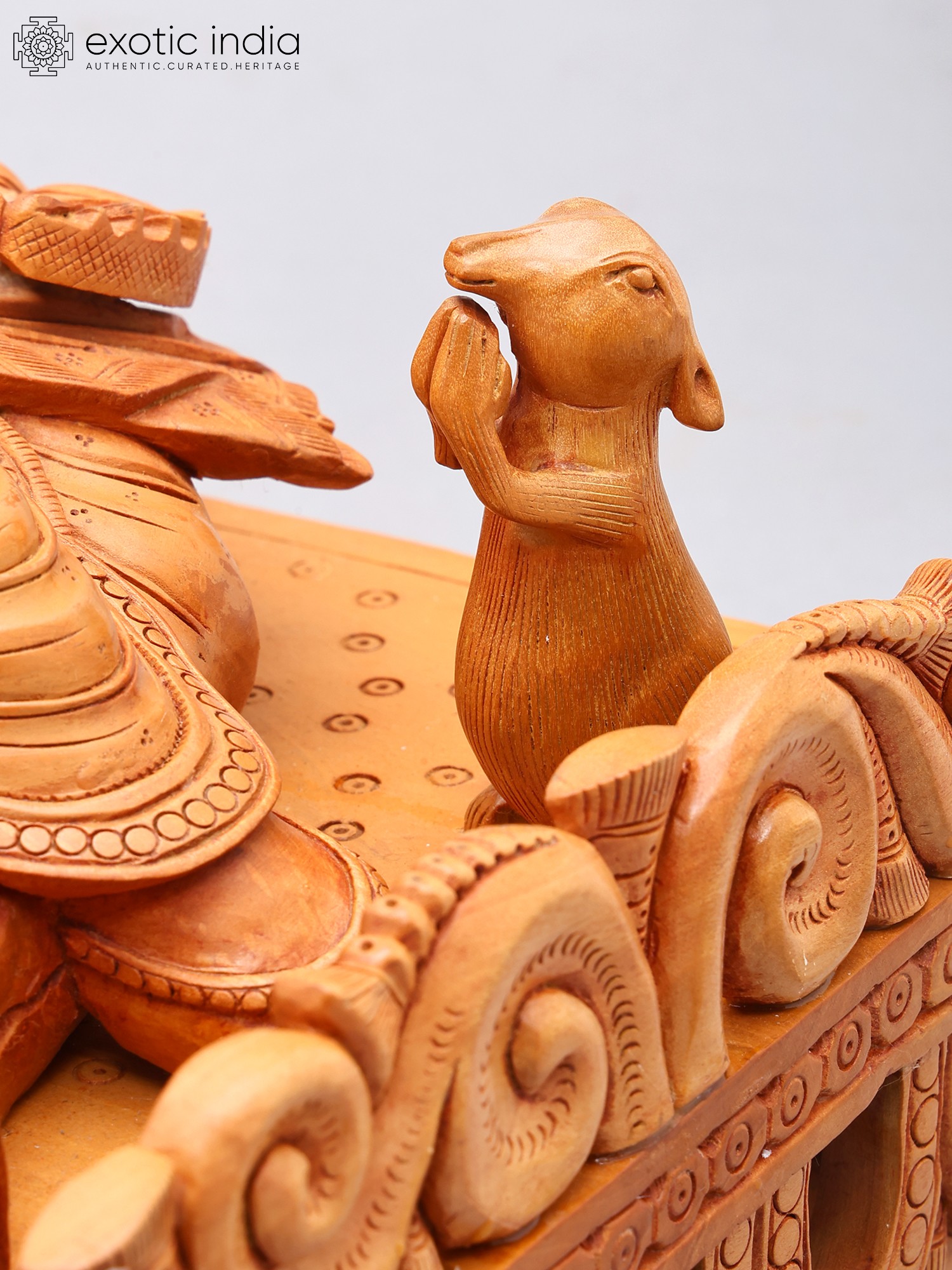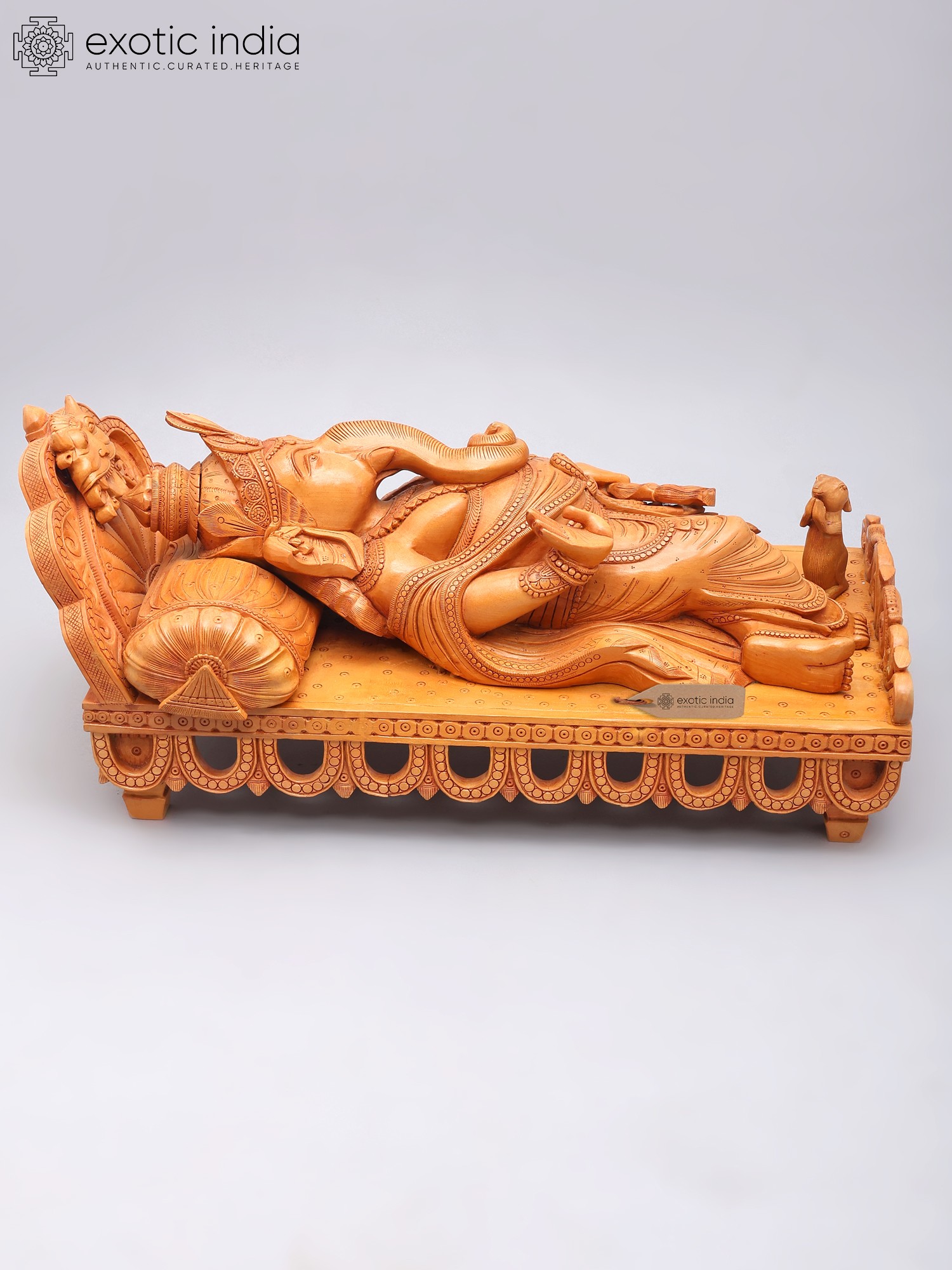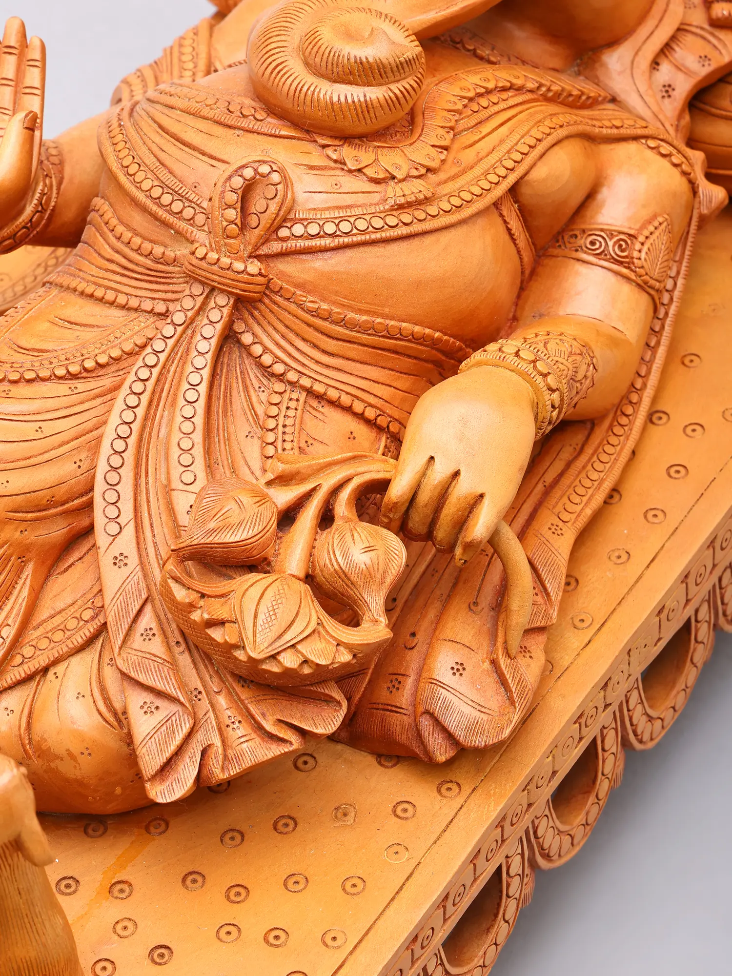 Relaxing Ganesha Wooden Sculpture | South Indian Temple Wood Carving