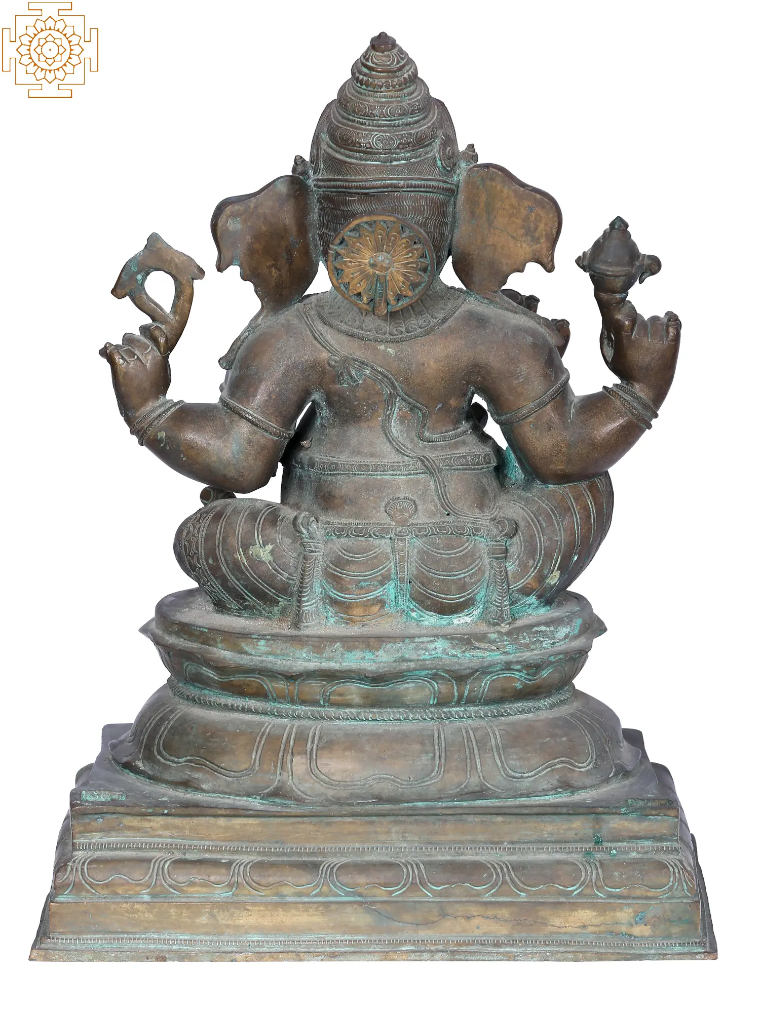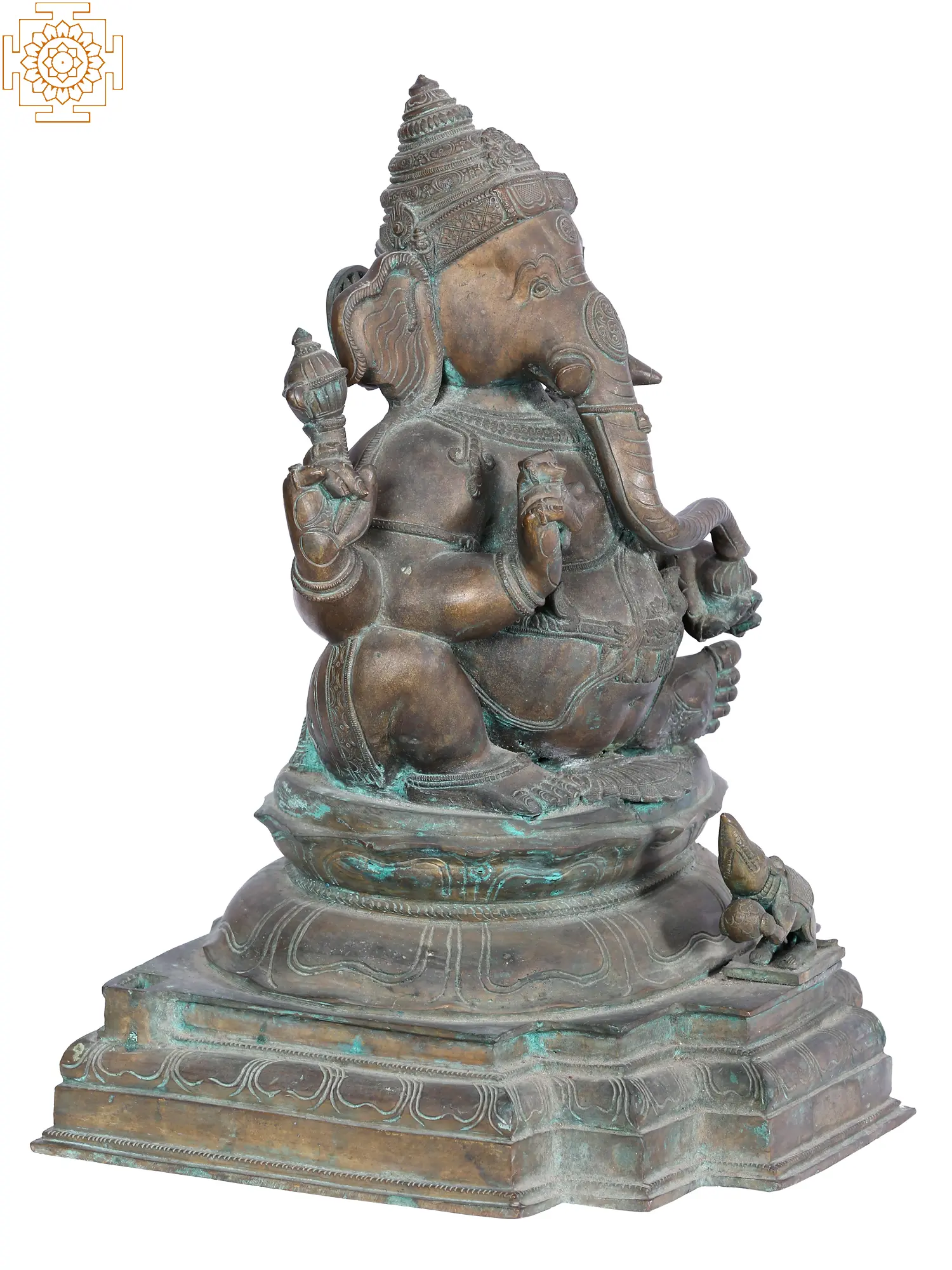 Chaturbhuja Lord Ganesha Bronze Statue, 14 Inch, Seated on Lotus