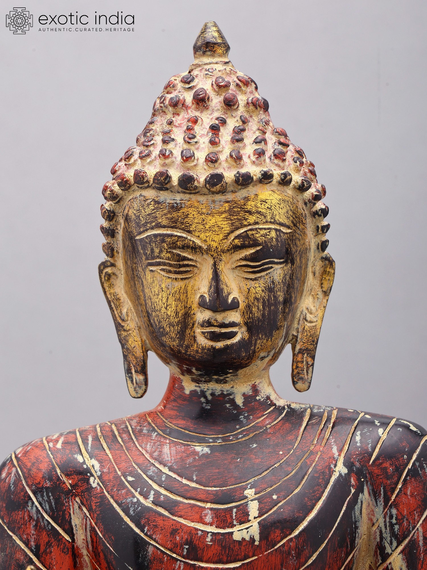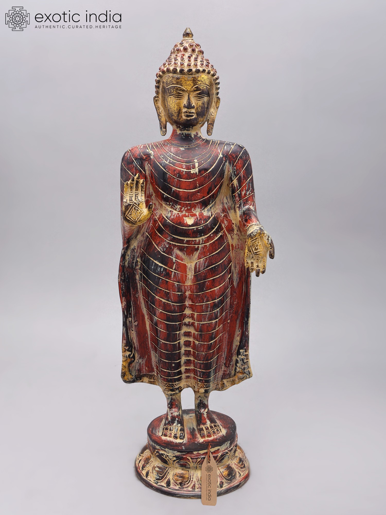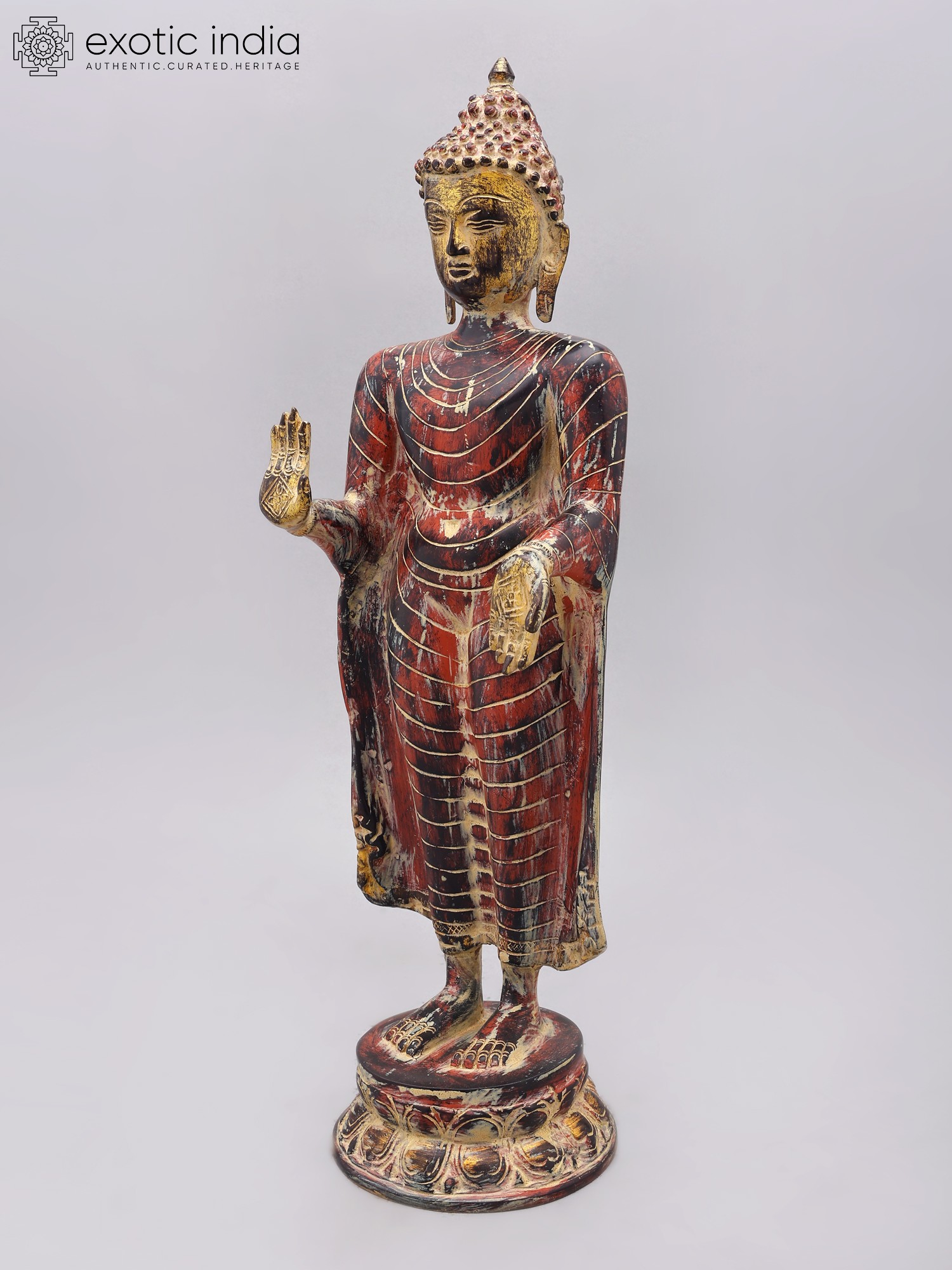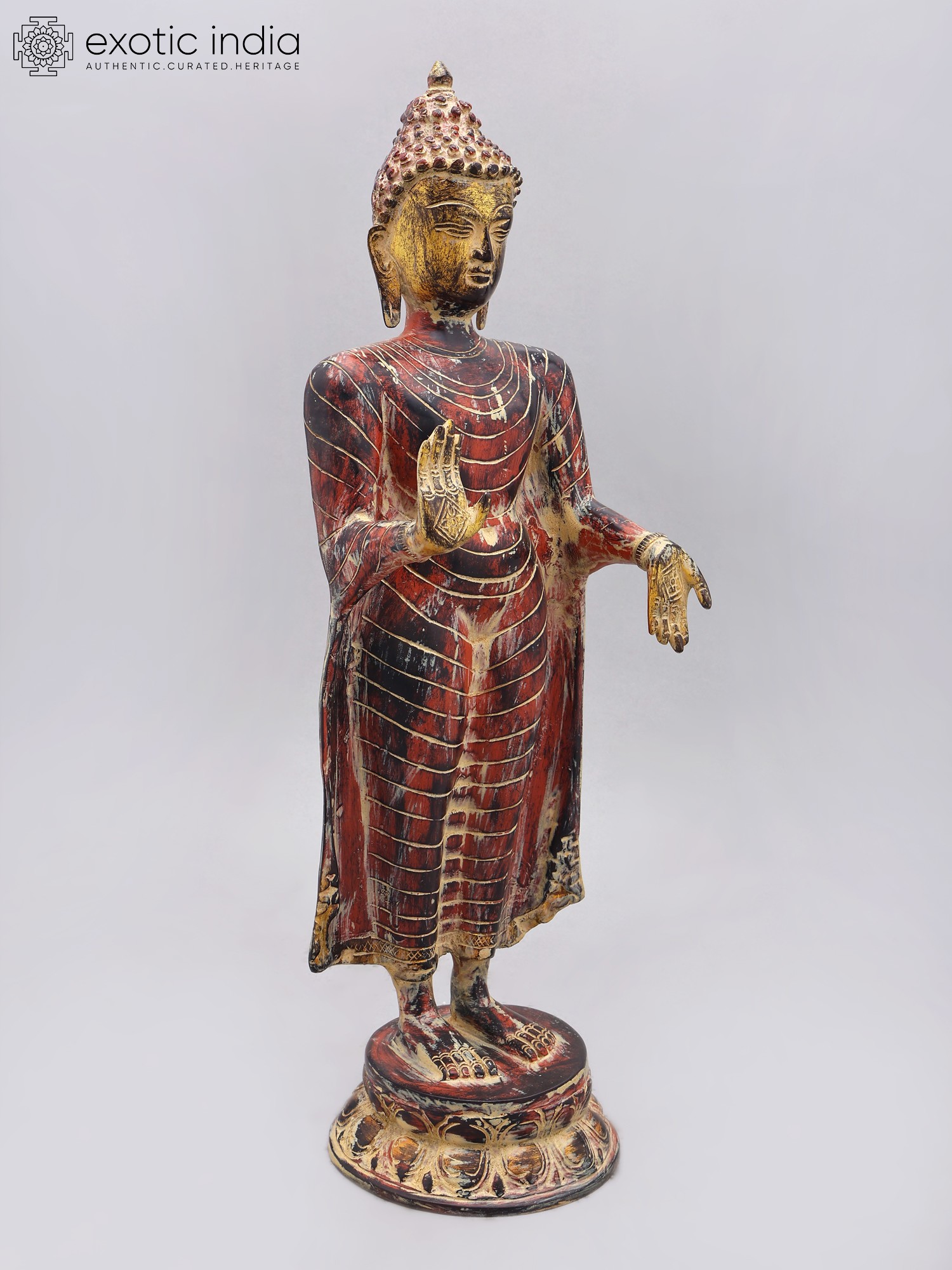 33" Large Size Standing Buddha Idol Granting Abhaya | Handmade Brass Statue | Made in India