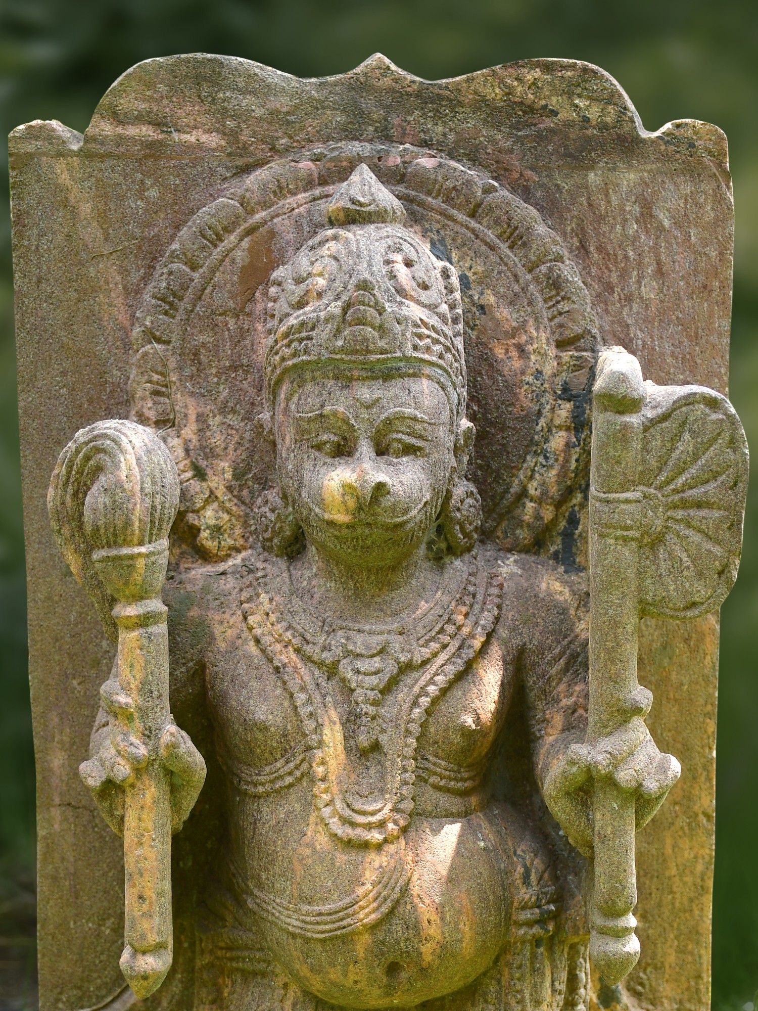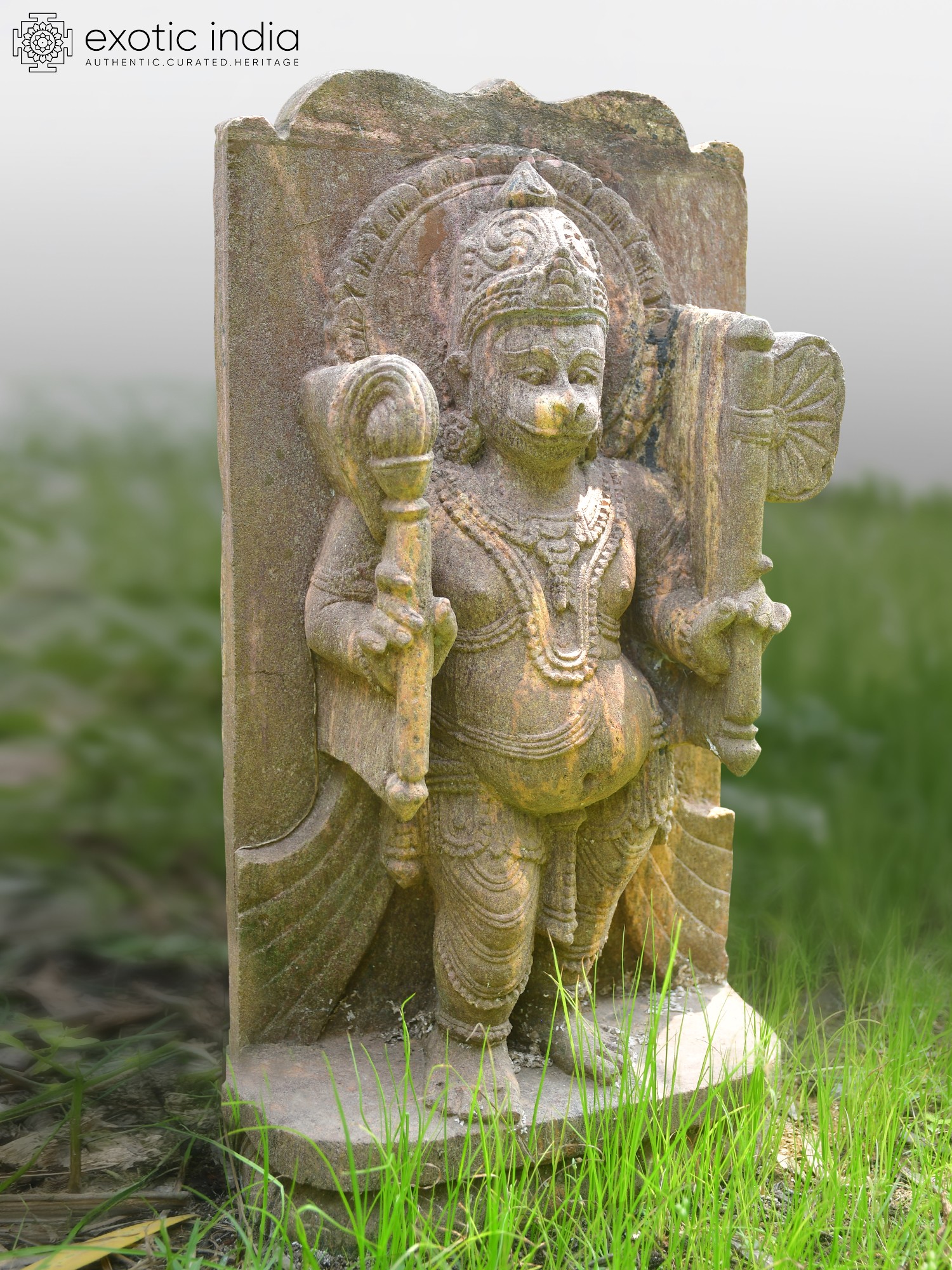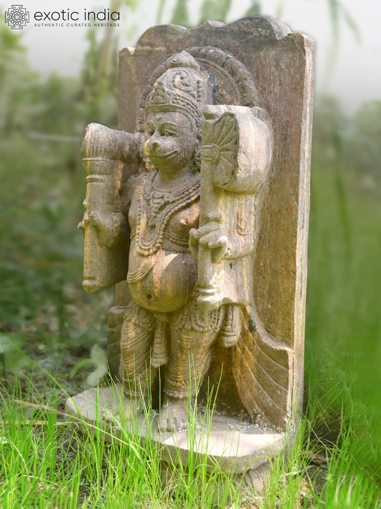 Invite an aura of unwavering devotion and immense power into your surroundings with this striking sandstone depiction. It serves as a potent reminder of courage and loyalty, embodying the spirit of a celestial warrior ready to face any challenge. You’ll appreciate the profound presence it commands, whether as a focal point in your sacred space or a guardian of your tranquil garden.