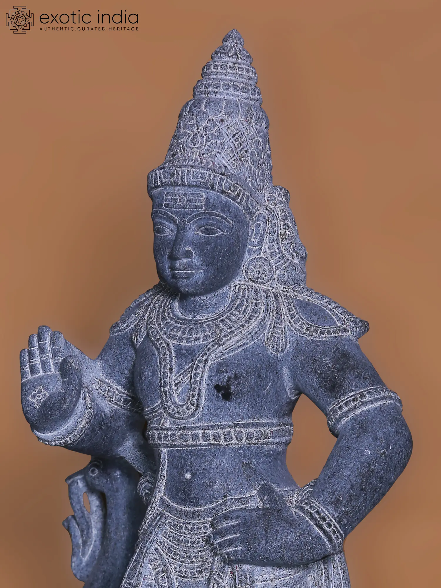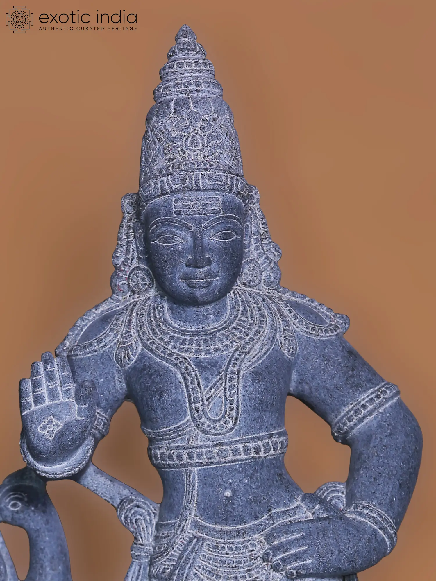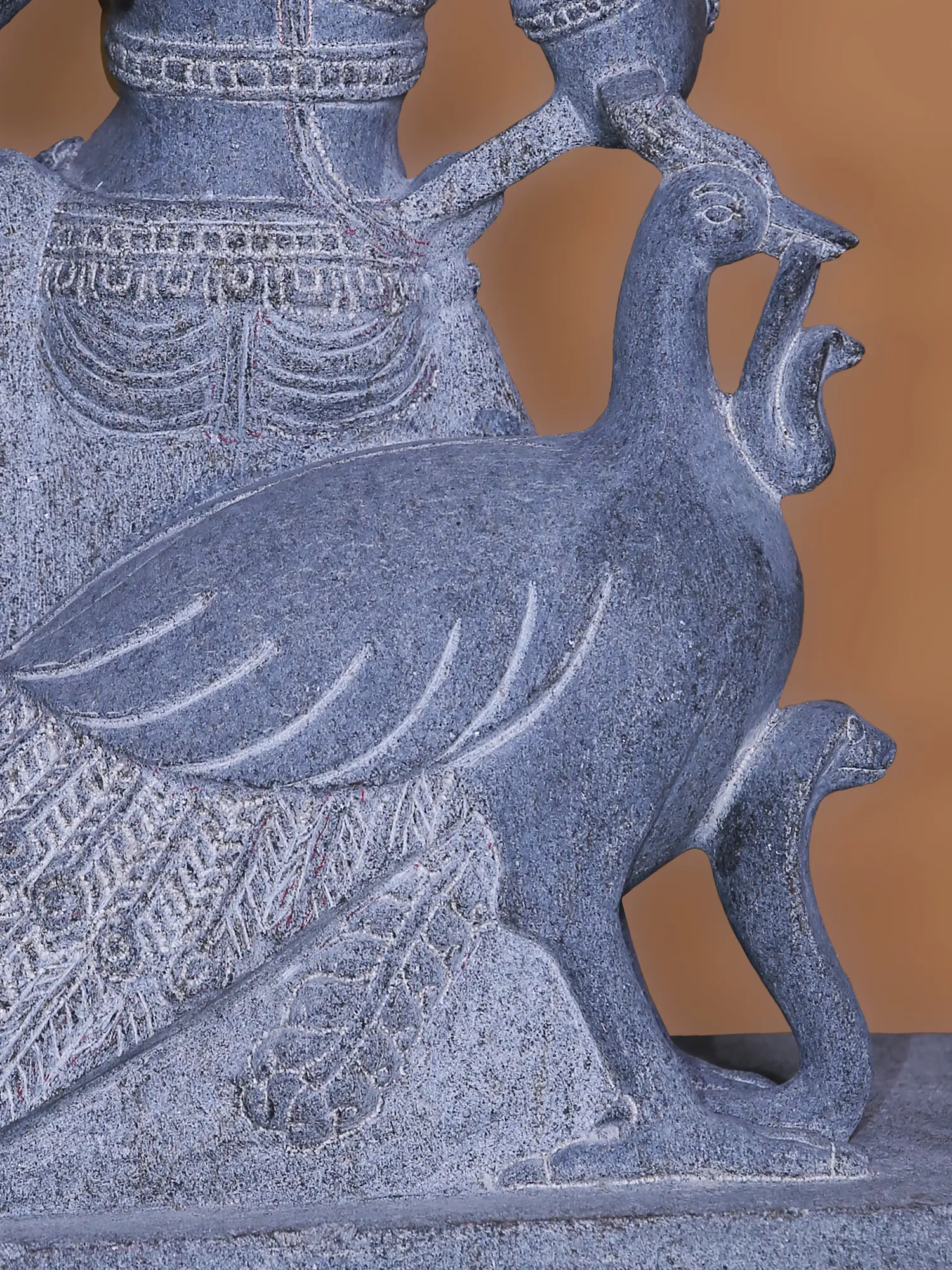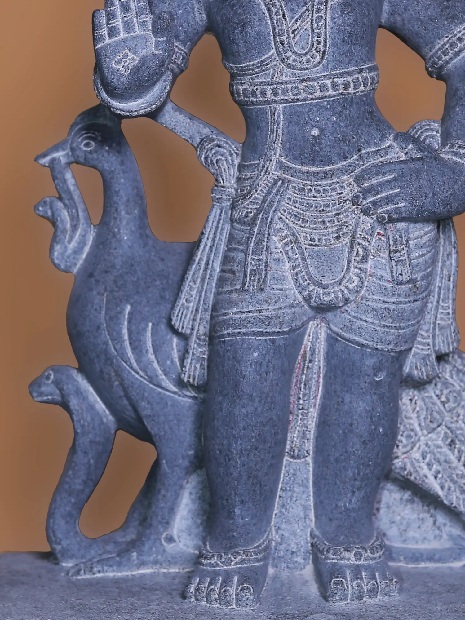 The divine commander-in-chief or Senani of Indra’s Devasena, Murugan, or Karttikeya appears in this beautiful granite statue as a young Lord.