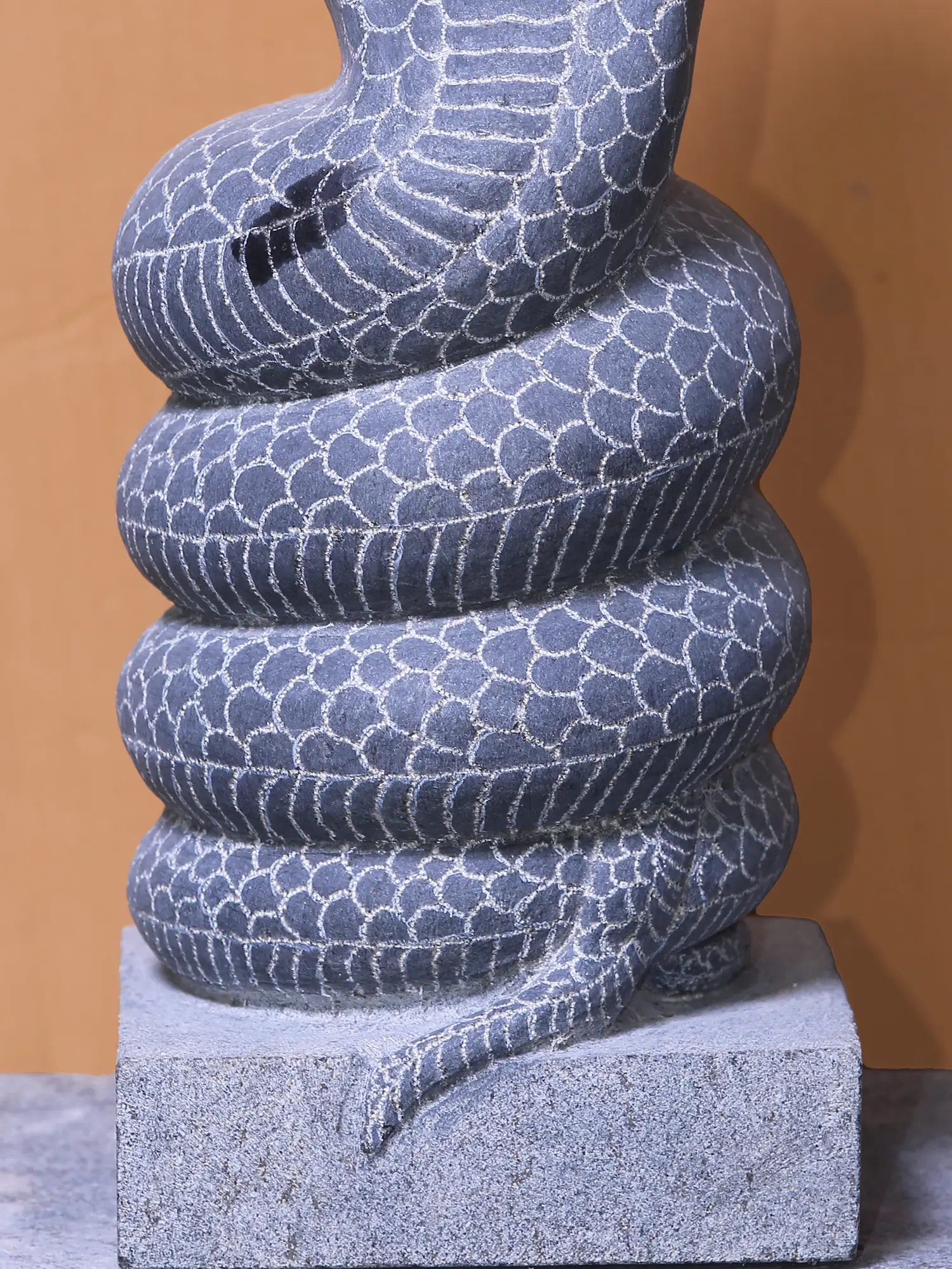 The beautifully coiled granite Naga or serpent represents the awakening of Kundalini or inner wisdom, at the core of which lies the power and wisdom of the primordial Lord- Shiva.