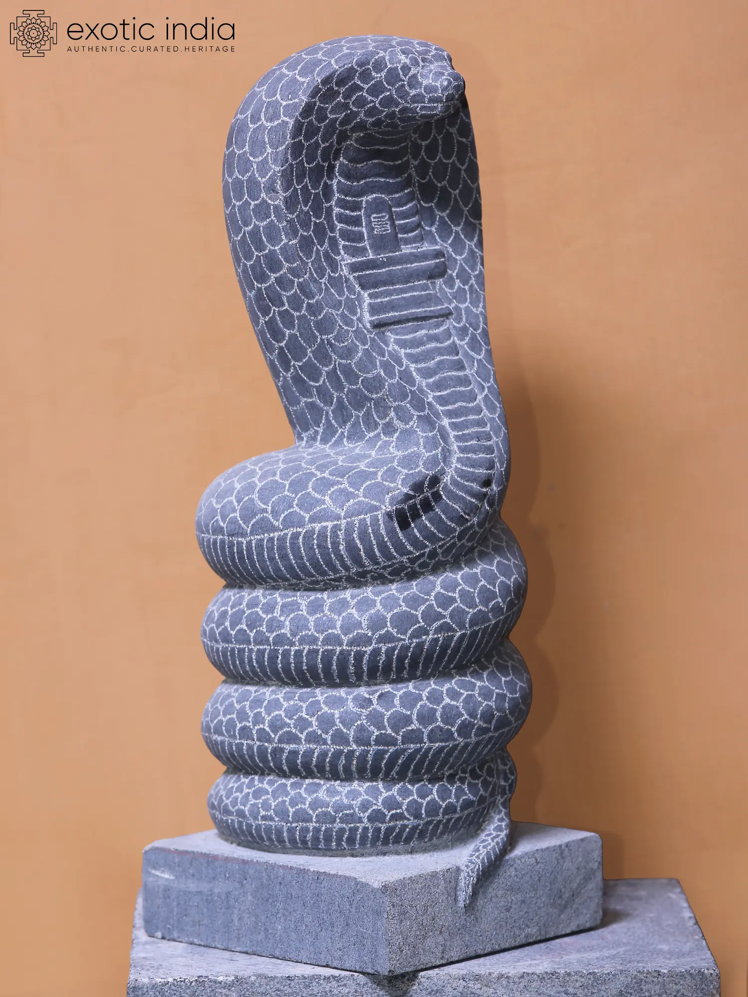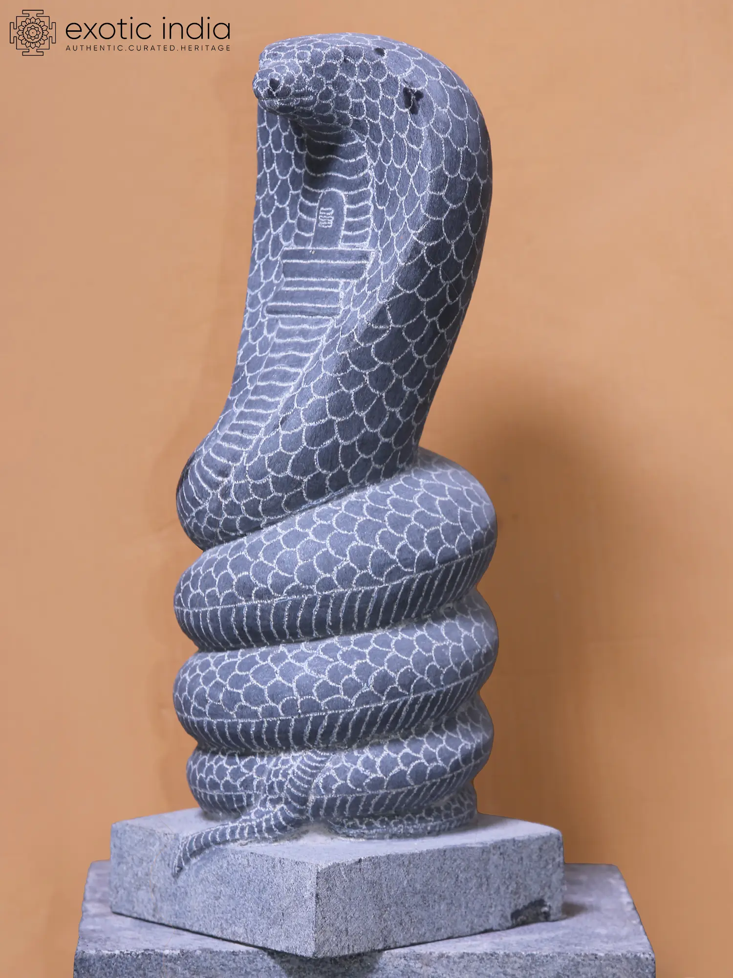 Sculpted in a rounded manner with its scales finely detailed, the Shiva-Lingam marks the Naga, the Nirguna roopa of Mahadeva considered the most auspicious and powerful icon in three realms.