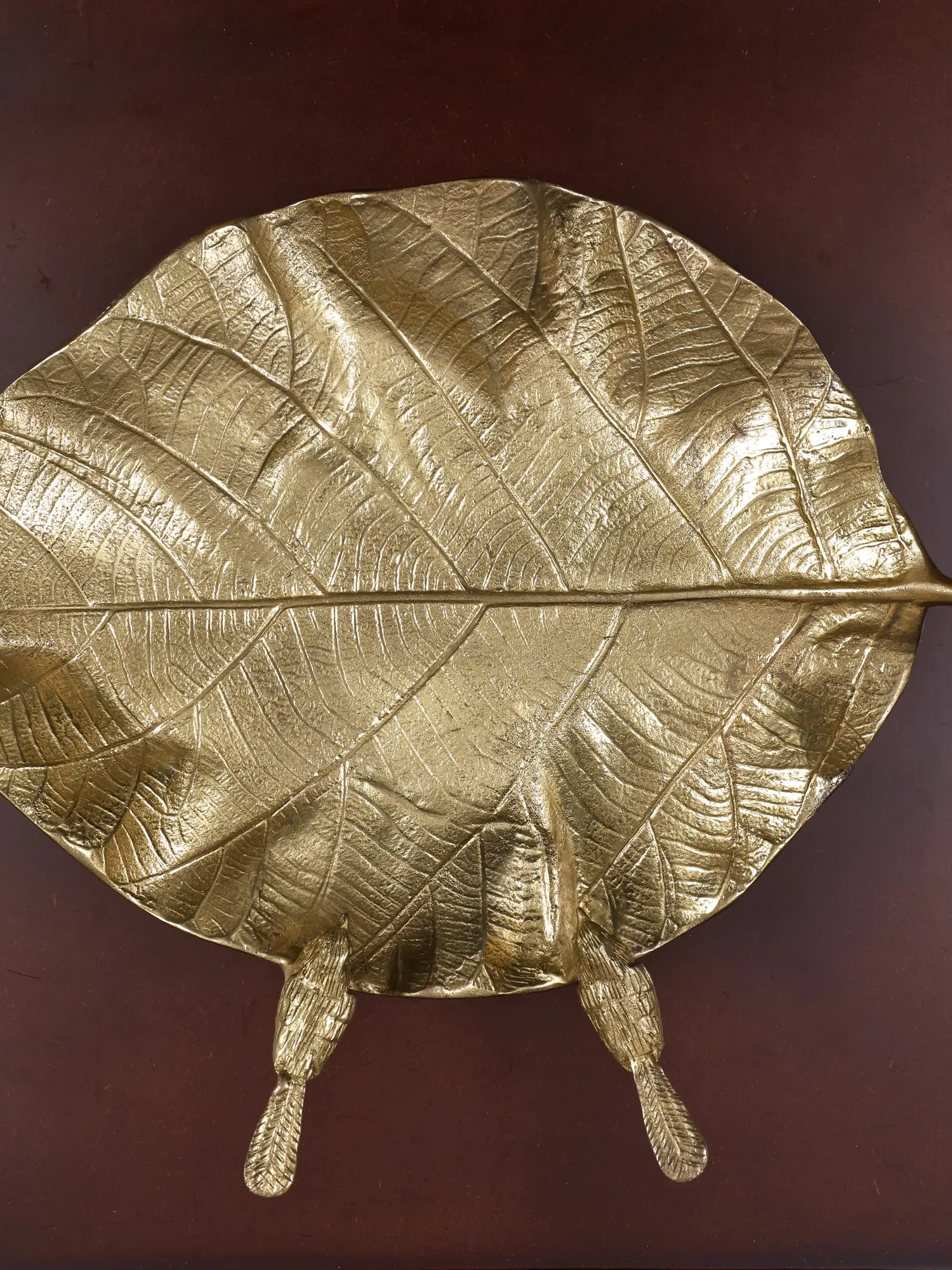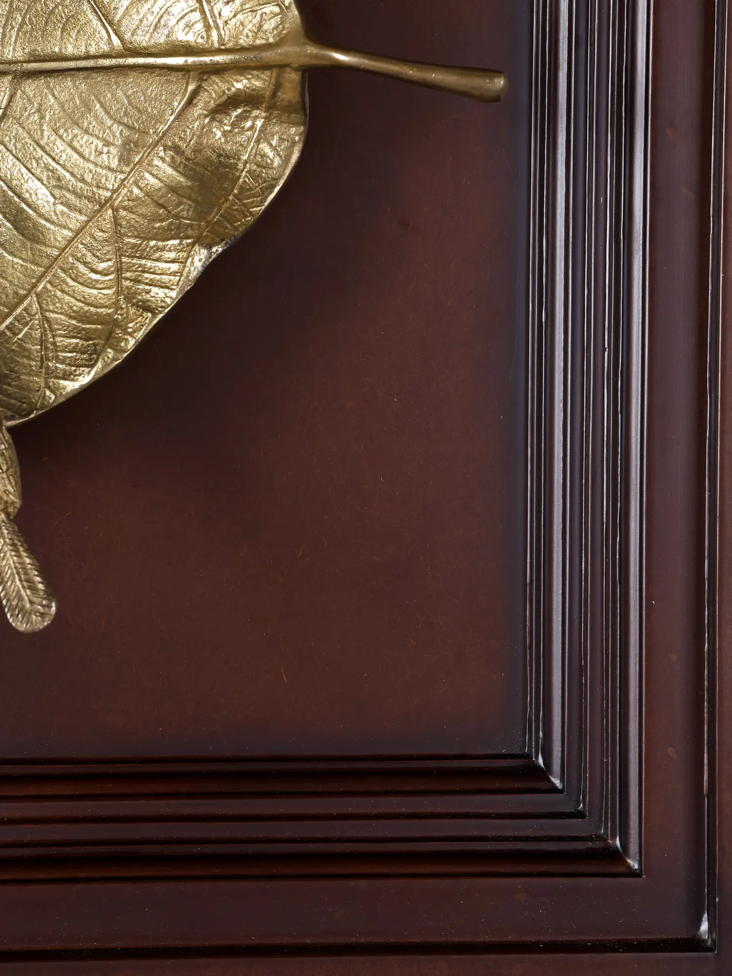 This wood and brass wall hanging brings the beauty of nature into your home, transforming the sacred Pipal leaf into an exquisite brass vessel.
