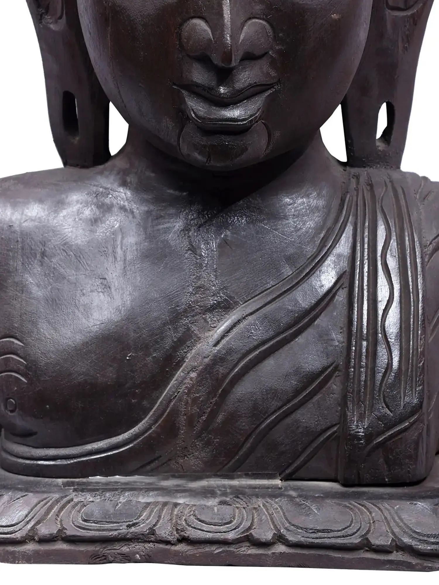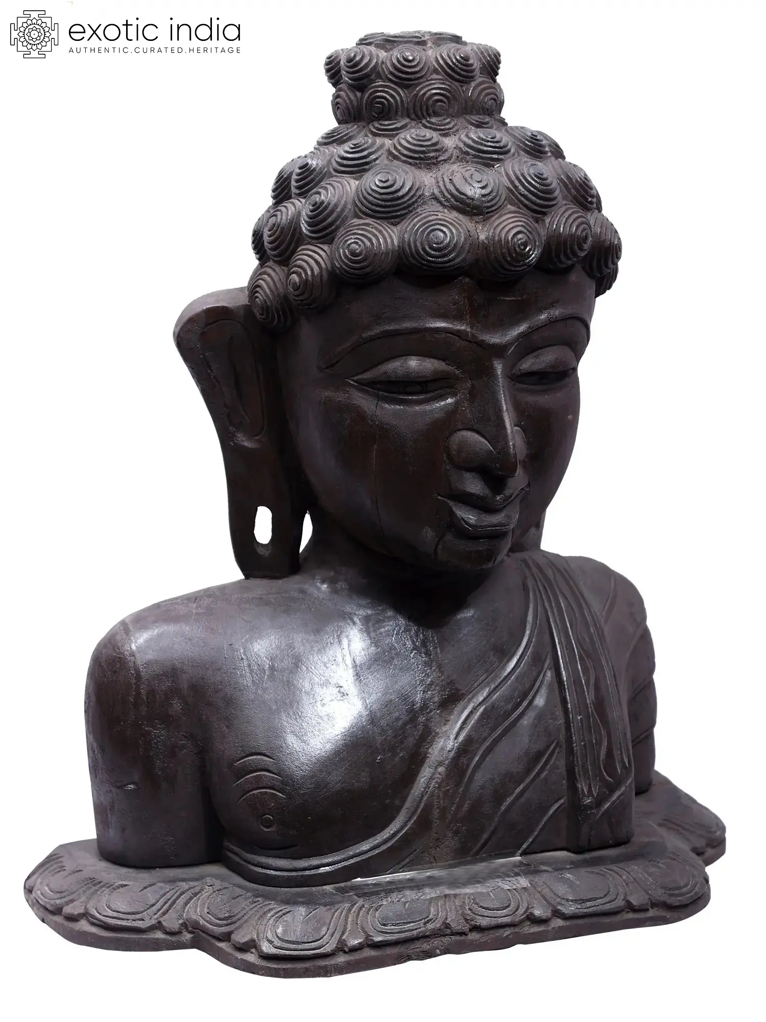 Buddha bust sculptures are a sophisticated element in art, representing all the virtues of the Buddha, including his curly hair, contemplative eyes, divine countenance, elongated earlobes, and cranial hump, which stands for ultimate wisdom. Reminding all who observe to walk the path of Dhamma and take on the attributes of the Buddha, the reflection carries the beauty of the enlightened mind of the Buddha.