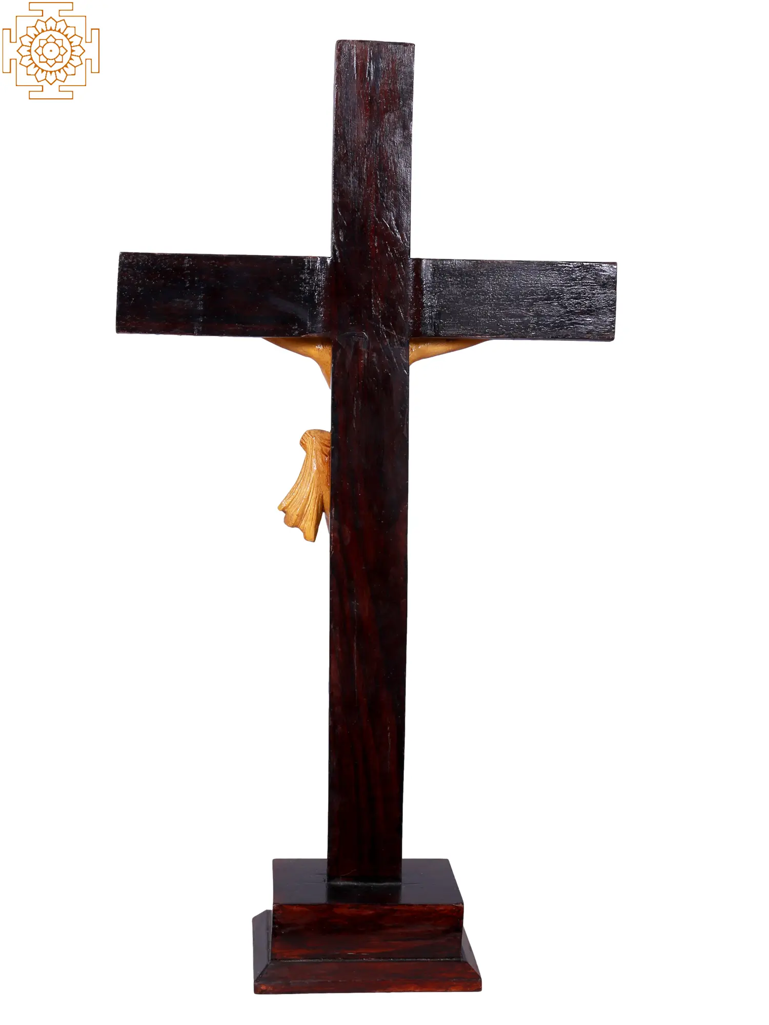 This exquisitely crafted wooden crucifix embodies profound spiritual significance and artistic mastery. The dark, rich wood of the cross provides a striking contrast to the warm, natural tone of the carved figure of Jesus Christ. Each detail, from the serene expression on His face to the gentle drape of the loincloth, speaks of deep reverence and meticulous craftsmanship. Measuring 20 inches in height, this piece is substantial enough to be a focal point in any sacred space, whether it be a home altar, a church, or a personal meditation corner. The cross itself is a potent symbol across many cultures and religions, representing sacrifice, redemption, and the ultimate act of divine love. In Christianity, it is the central icon, recalling the crucifixion of Jesus Christ, an event that forms the bedrock of the faith. The inscription "INRI" at the top of the cross stands for "Iesus Nazarenus Rex Iudaeorum," Latin for "Jesus of Nazareth, King of the Jews," a title attributed to Jesus during his crucifixion as proclaimed by Pontius Pilate. This inscription serves as a reminder of His royal status, not of earthly dominion, but of spiritual authority. This wooden statue is more than just a decorative item; it is a tangible representation of faith, a source of comfort, and an object of contemplation. The natural grain of the wood brings an organic warmth and texture, making each piece unique. The act of carving wood into such a sacred form can be seen as a continuation of ancient traditions, where artisans poured their devotion into creating objects of worship and spiritual connection. In many cultures, wood carving has been a way to imbue objects with life and spirit, connecting the earthly realm with the divine. The presence of such a piece in your home can serve as a constant reminder of the teachings of compassion, forgiveness, and hope.
