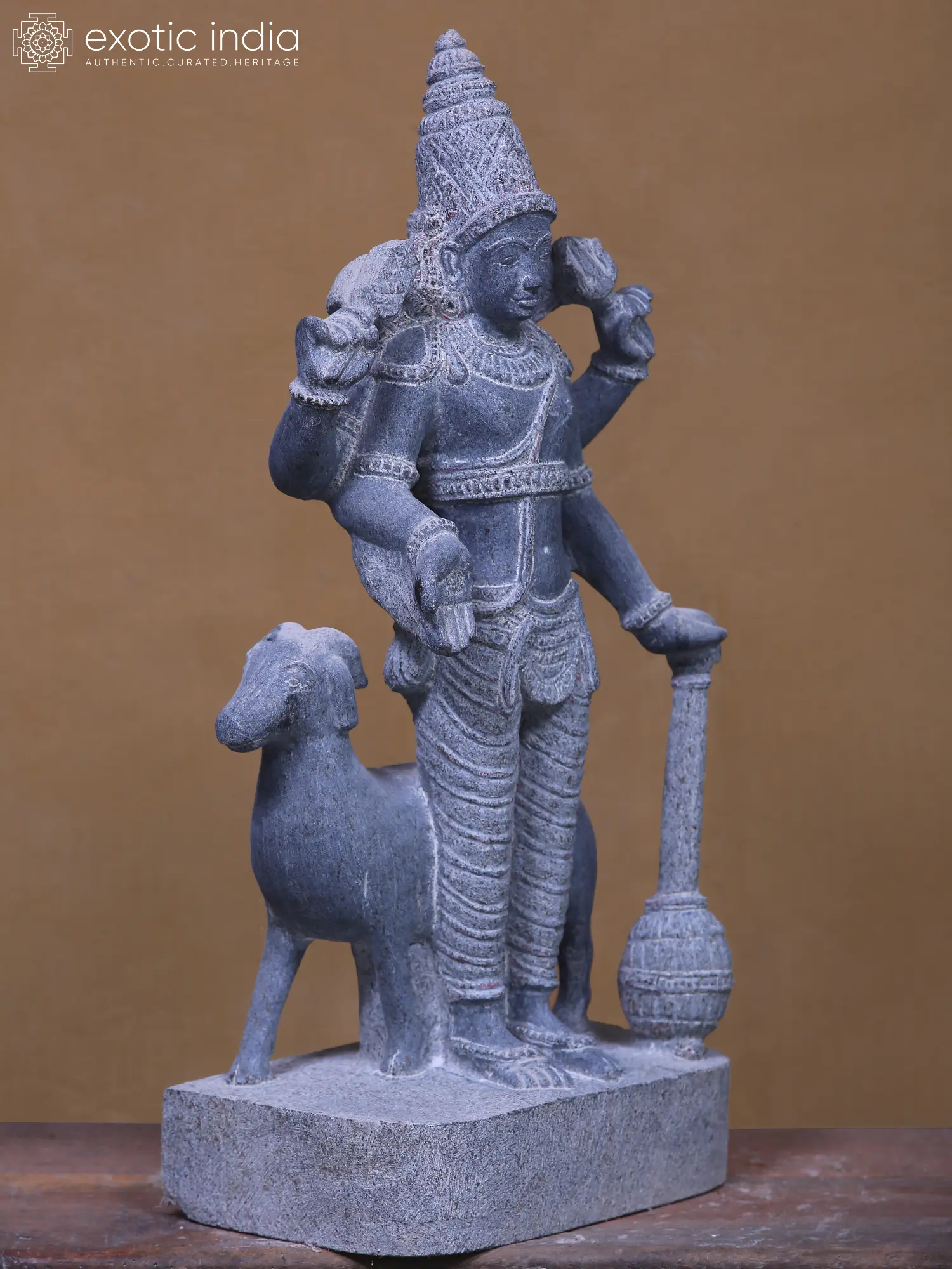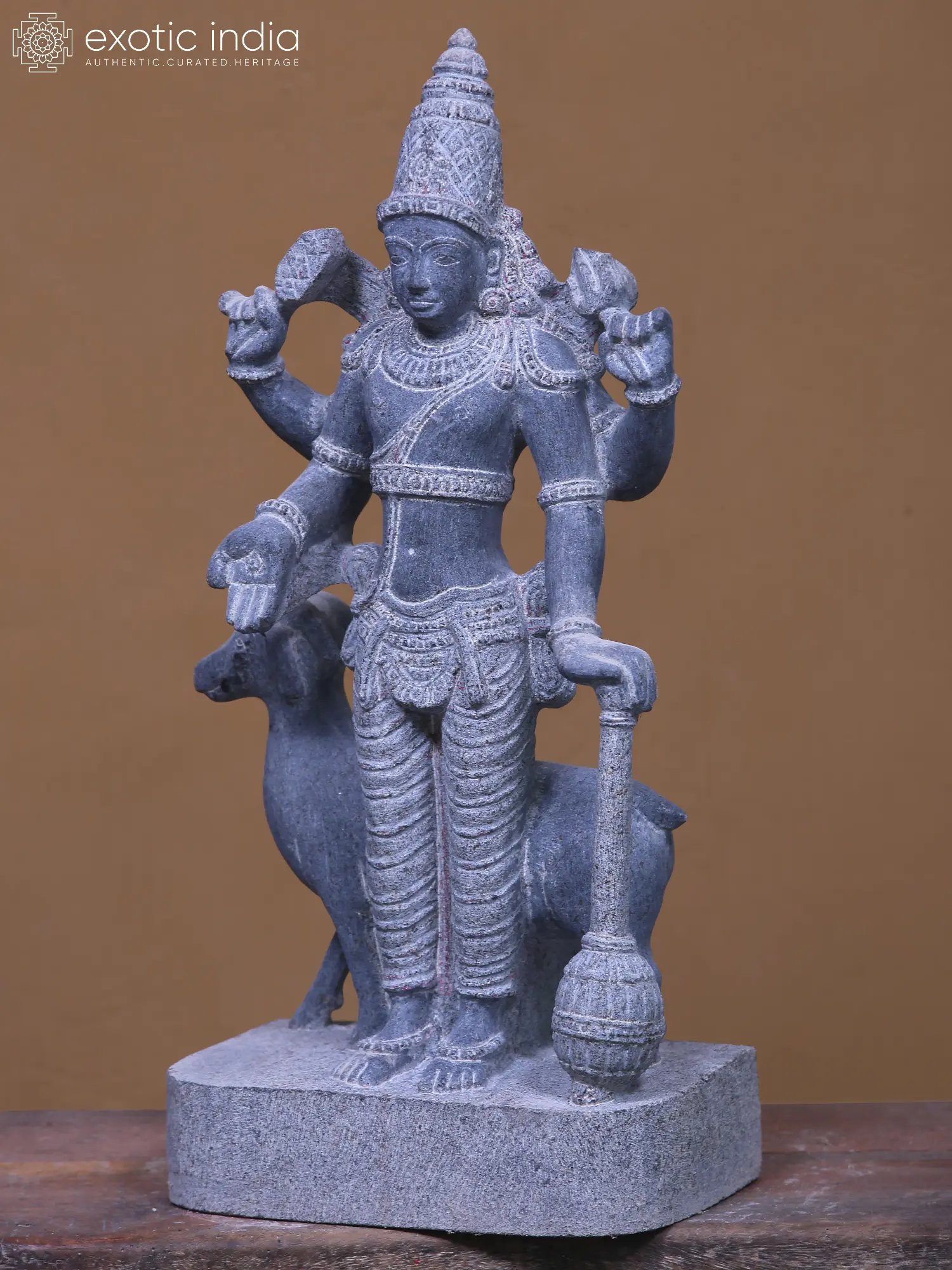 This granite statue of Agni Dev represents the God of Fire in Hinduism, symbolizing purification, energy, and transformation.