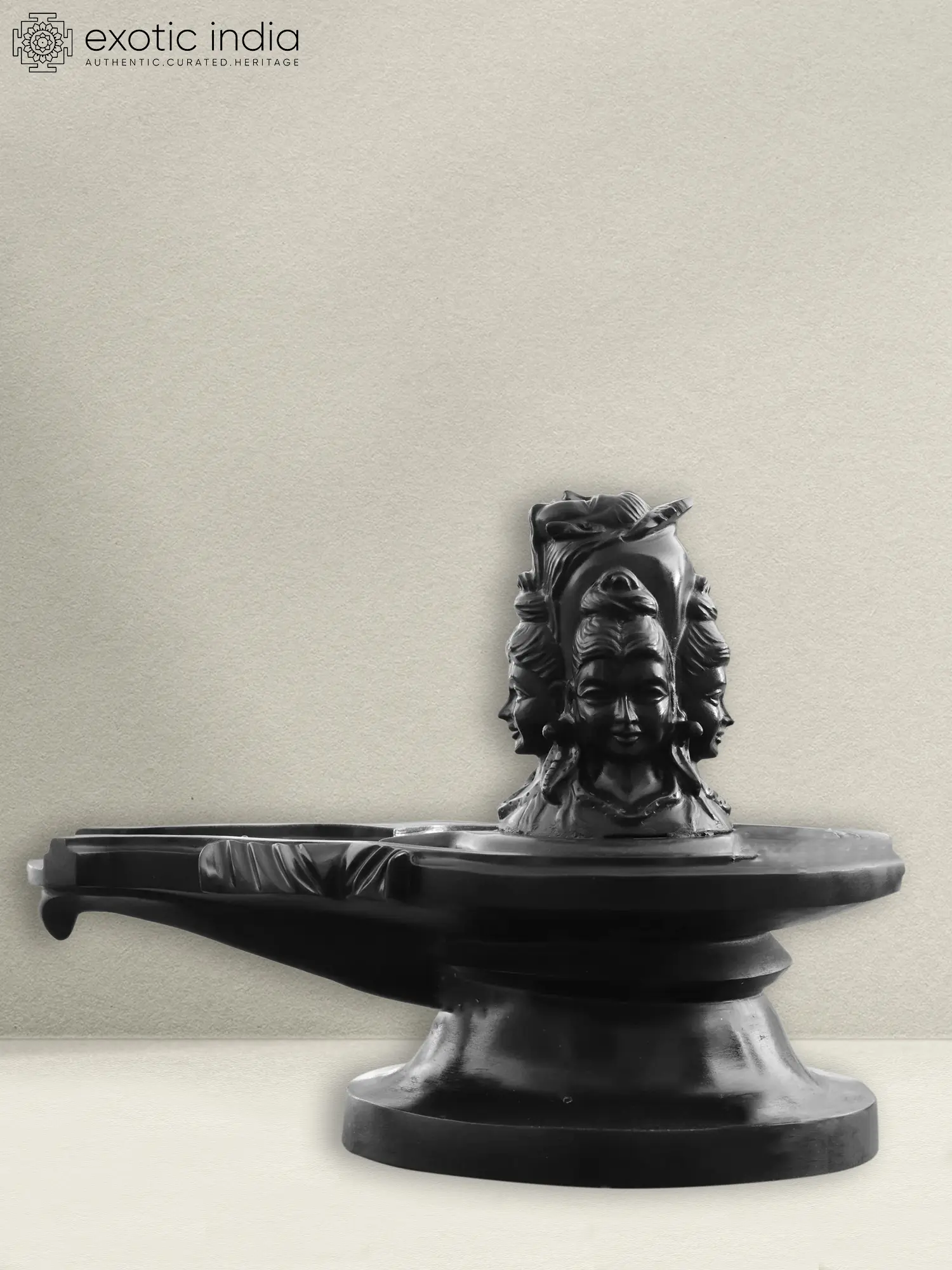 21" Attractive Shivling With Lord Shiva Face | Black Marble Shivling