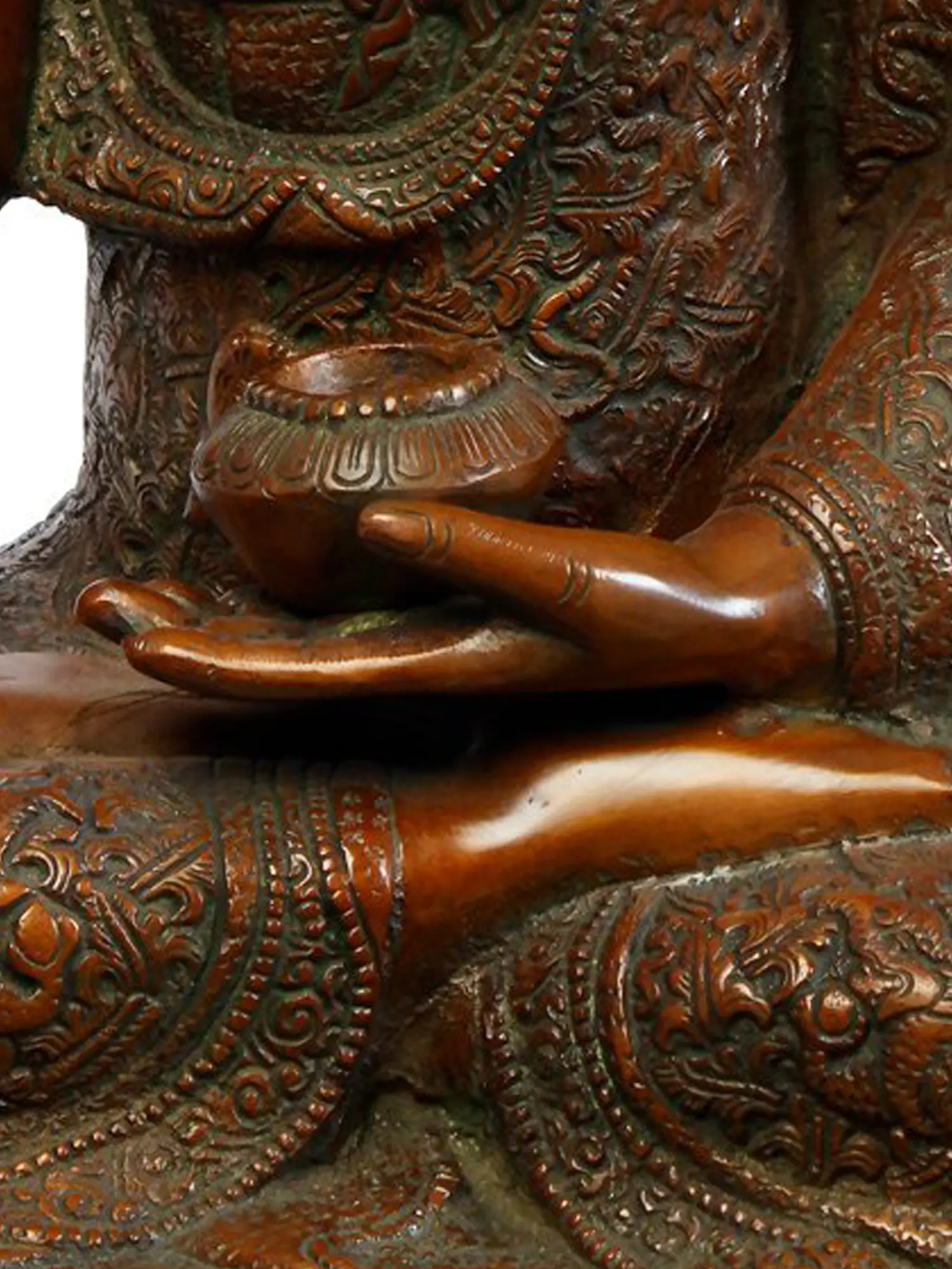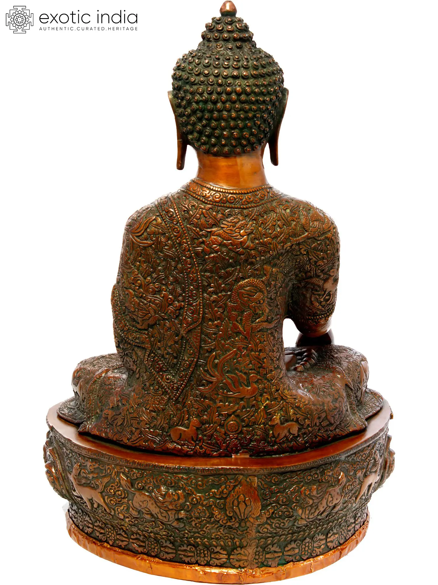 21" Bhumisparsha Buddha Wearing a Carved Robe (Tibetan Buddhist) In Brass | Handmade | Made In India