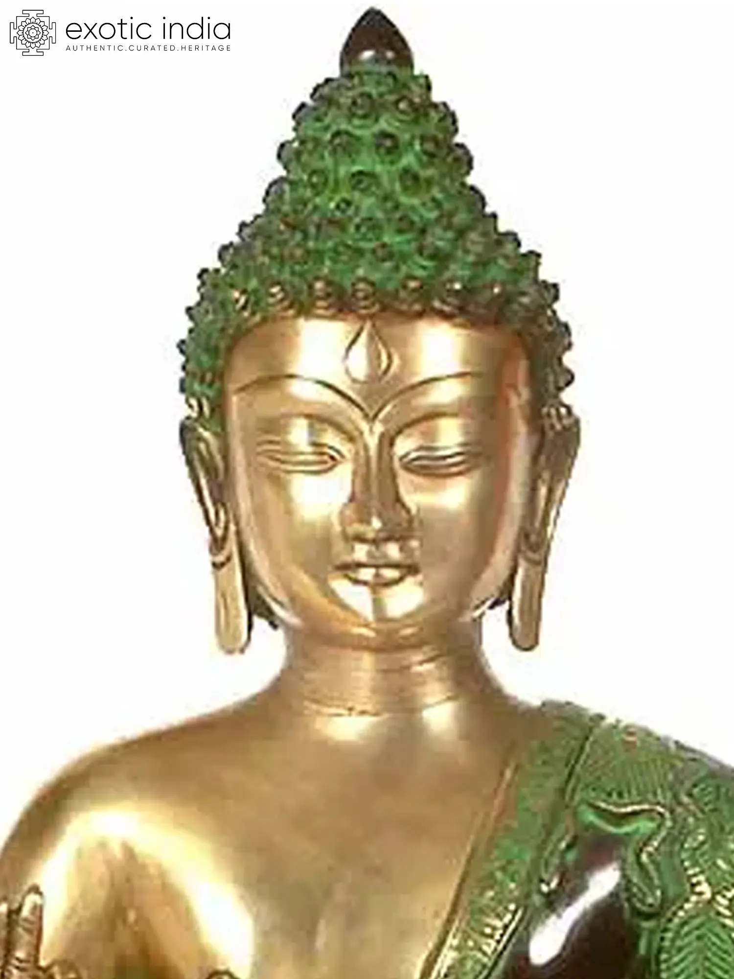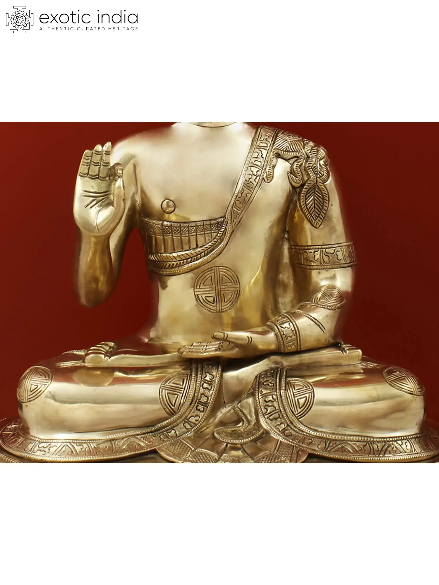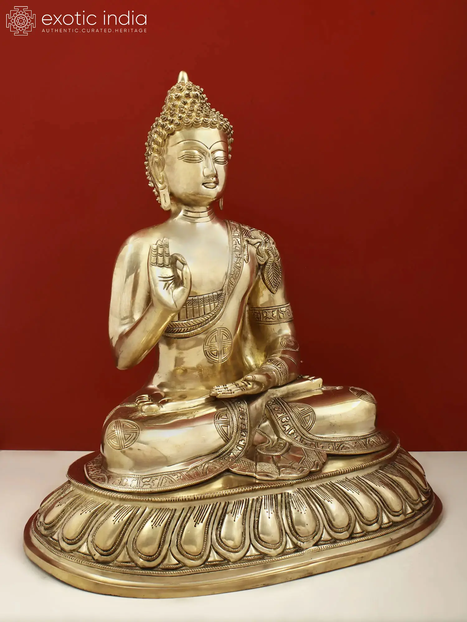 21" Blessing Buddha Seated on Lotus Throne with Sacred Symbols on His Robe In Brass | Handmade | Made In India