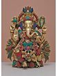 21" Brass Lord Ganesha Seated on Lotus with Inlay Work | Handmade