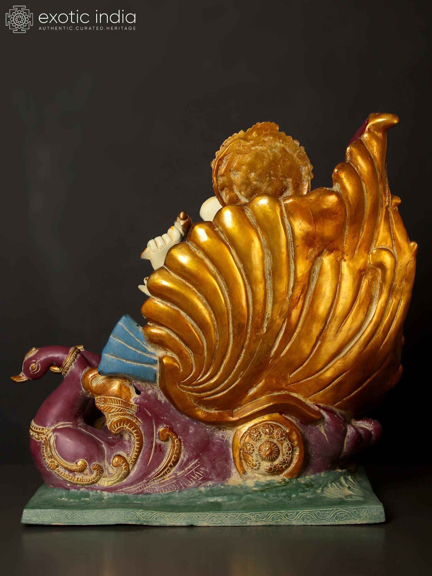 16" Colorful Inlayed Blessing Ganesha Inlay Brass Statue | Indian Handcrafted Idol