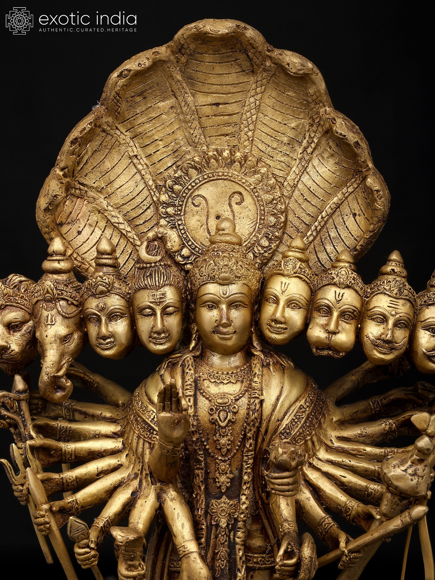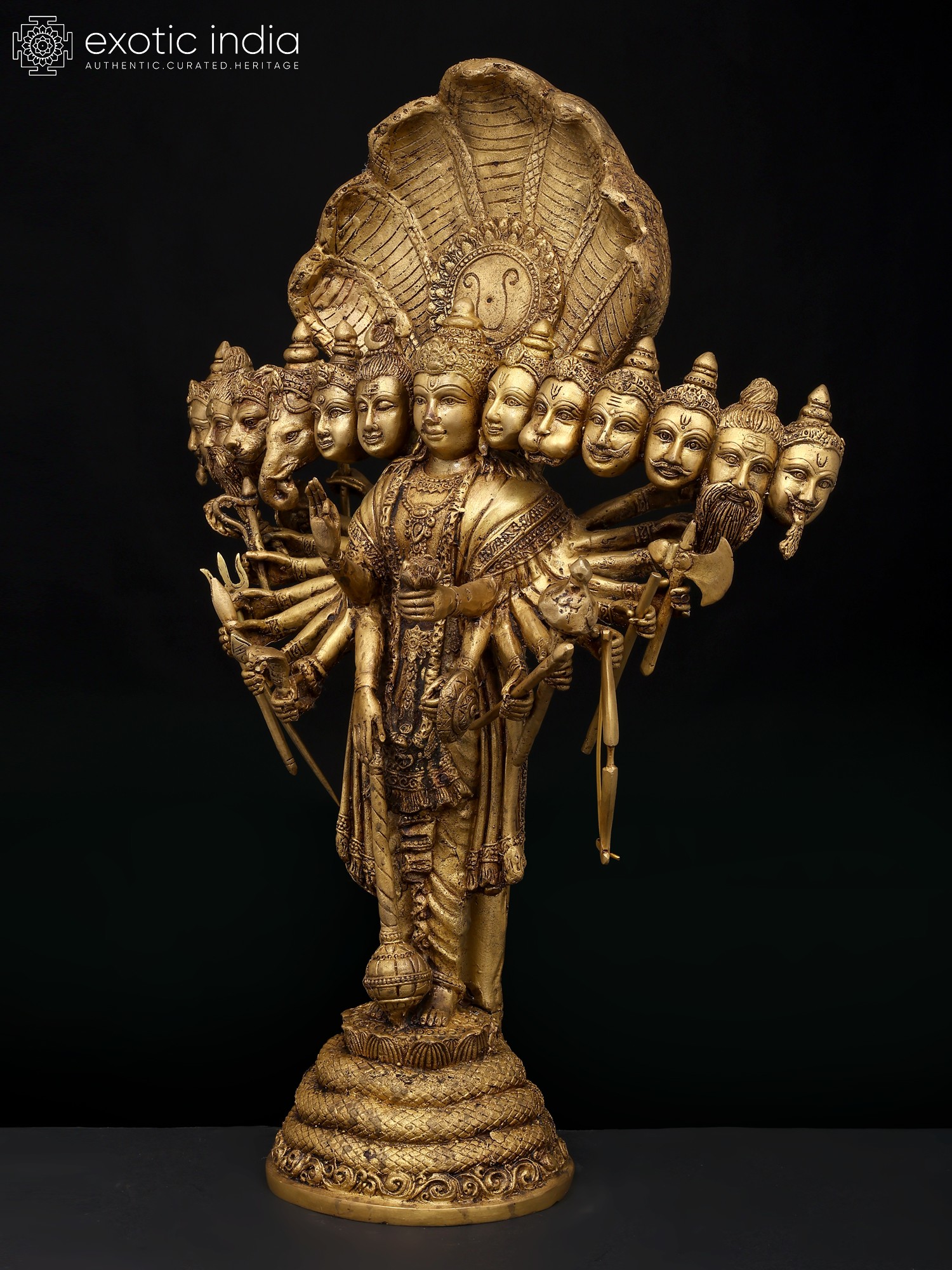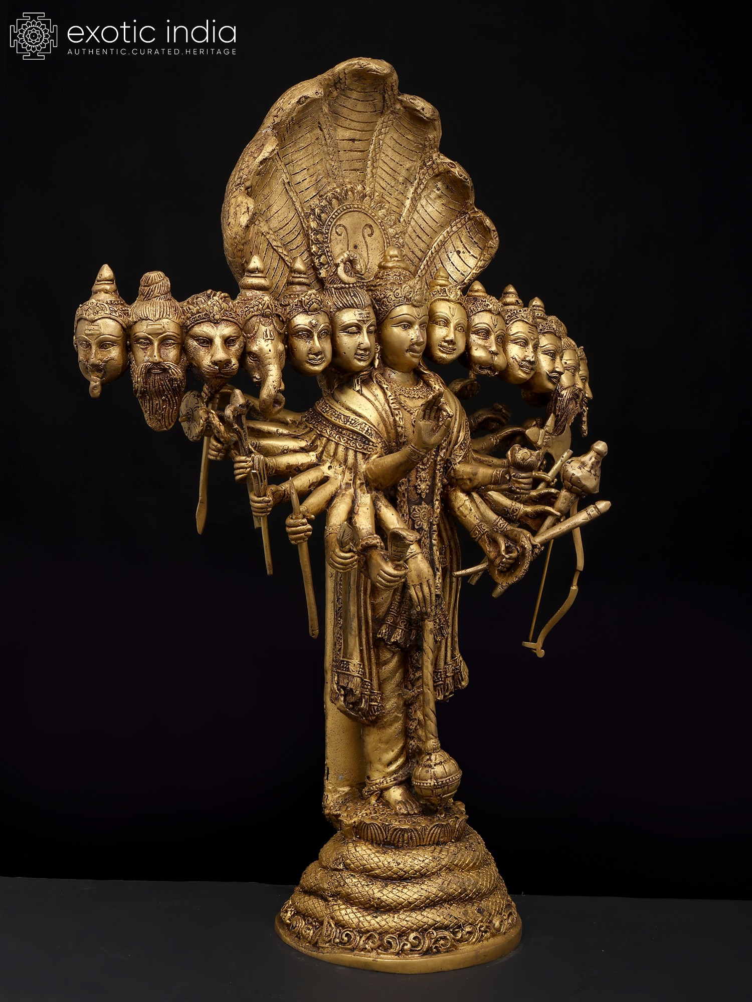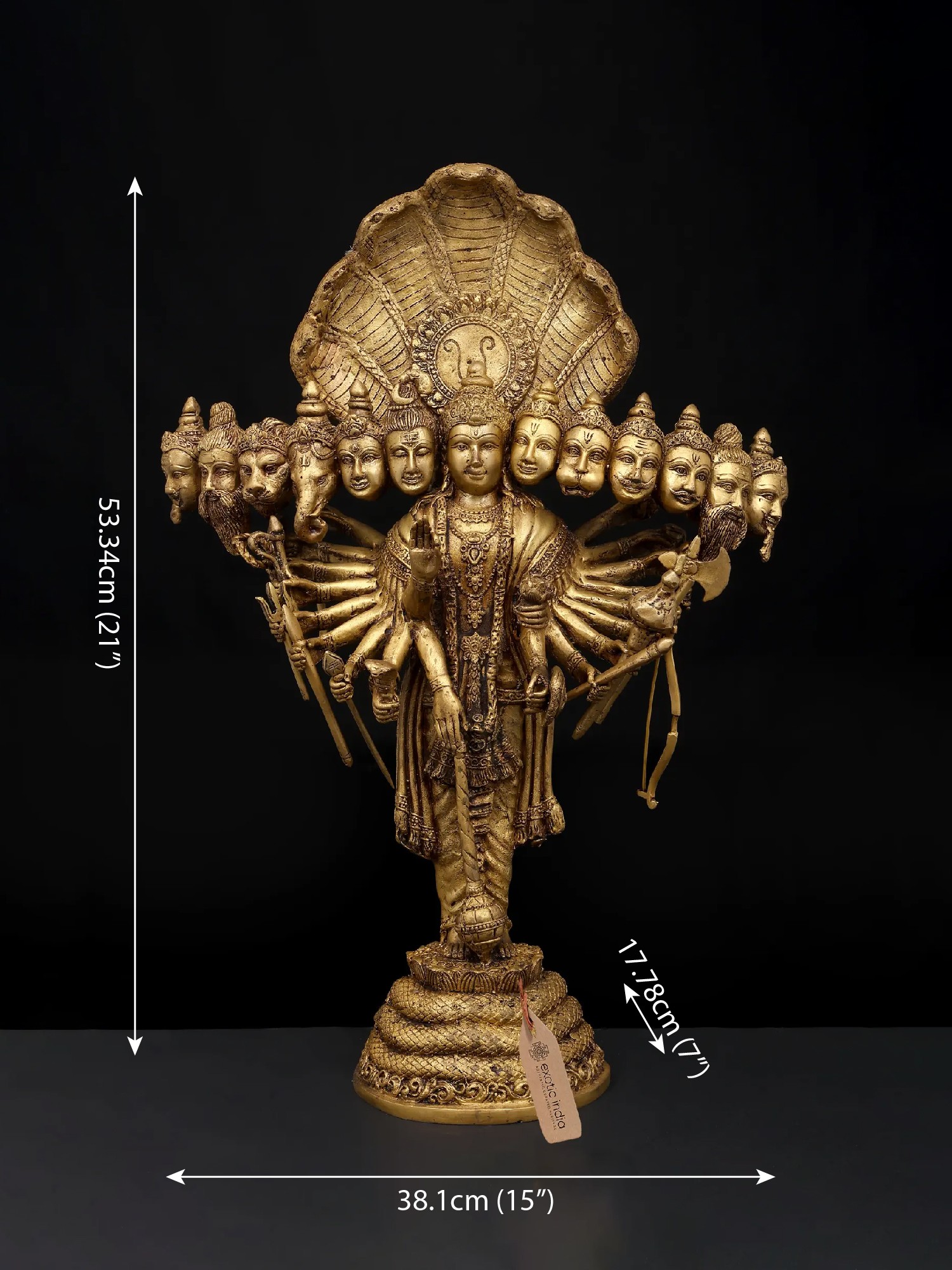 14" Lord Vishnu in His Cosmic Incarnation In Brass | Handmade | Made In India