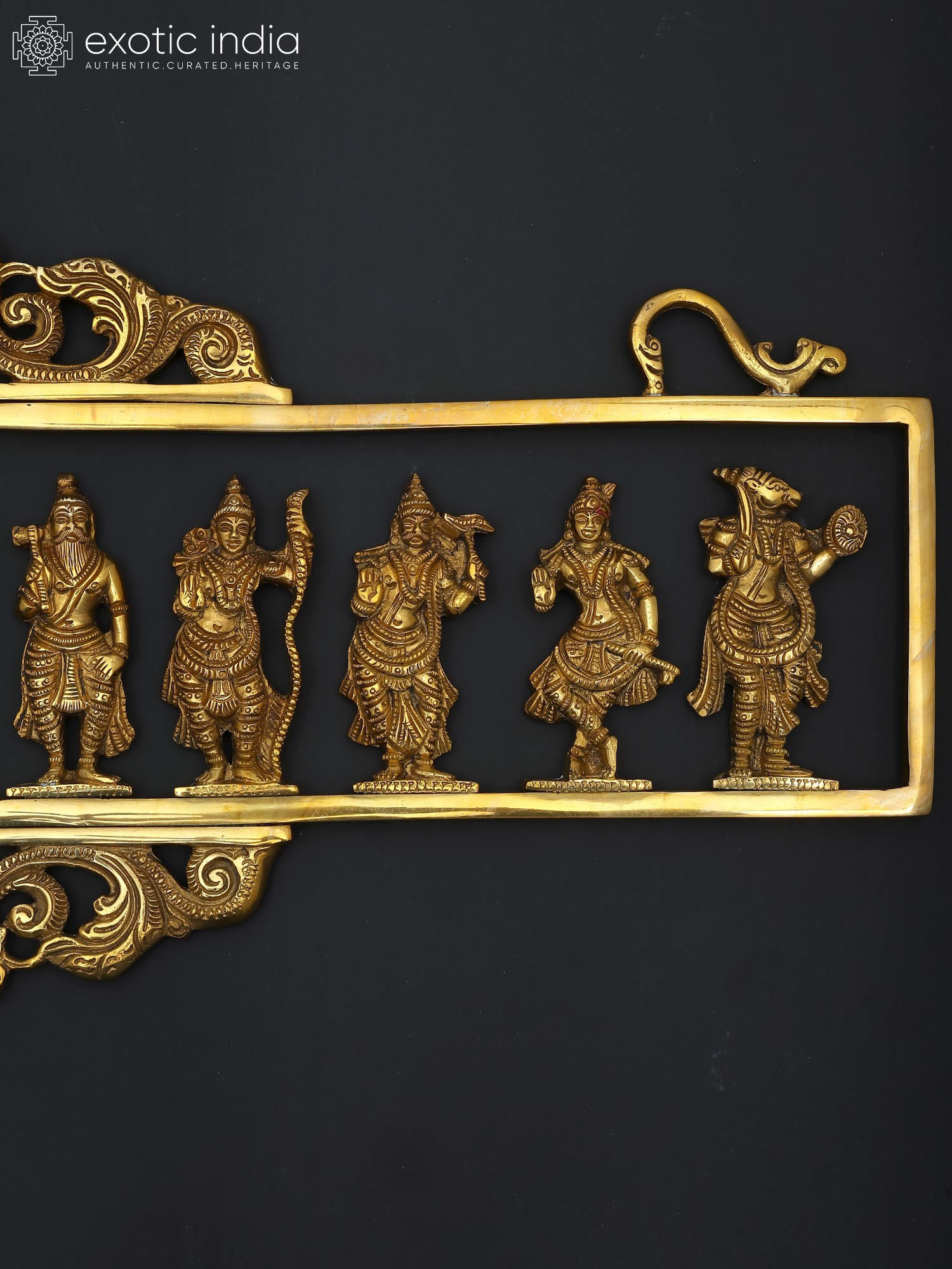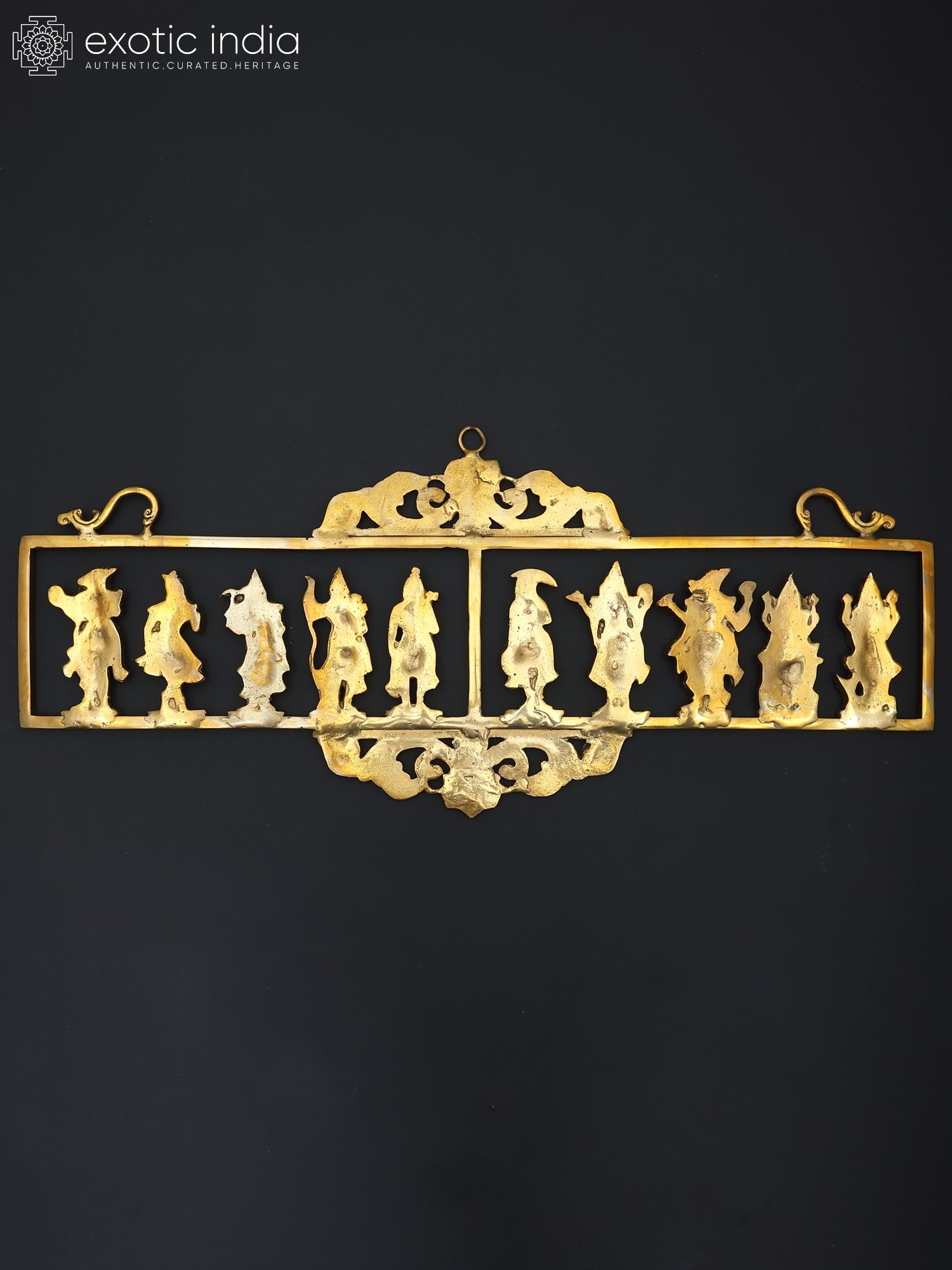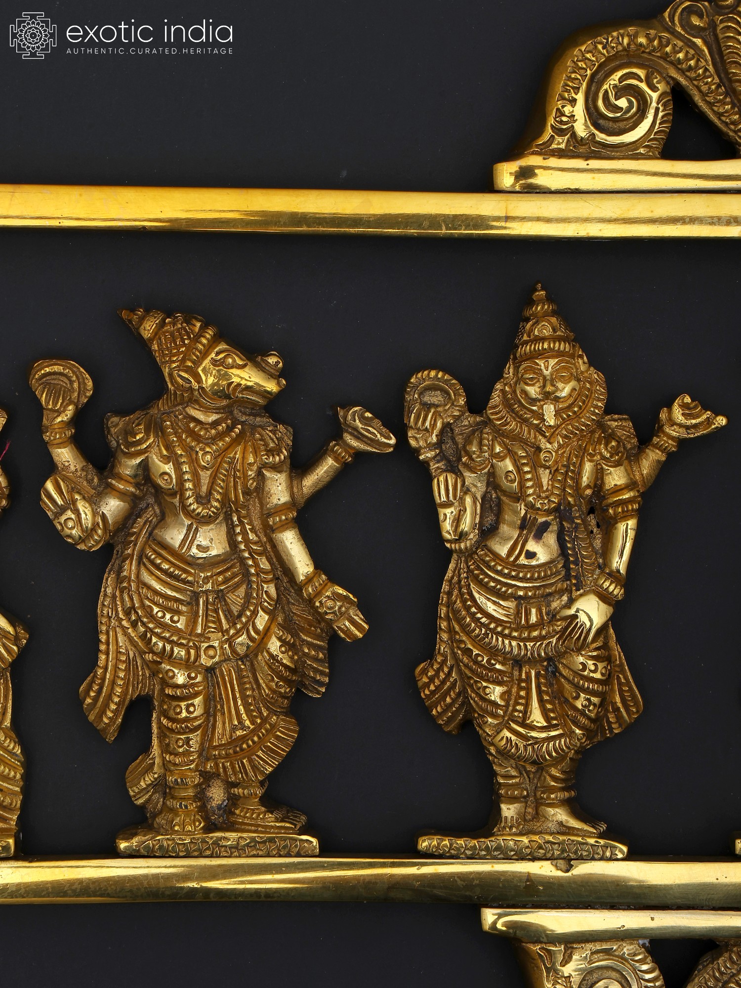 Victory to Keshava, Lord of the Universe, who took ten different forms, is part of a poem by Jayadeva. This section of Jayadev's Dasavatara Strotam extols the Dasavatar, or ten incarnations of Lord Vishnu. The portrayal of all reincarnations in one piece is considered highly fortunate, and followers commonly worship it in paintings or sculptures. This spiritual artwork is a brass wall with a plate containing all avatars encased within a brass ornate frame. The idea behind the creation of this wall hanging is to unite the self with the sacred via the gorgeous view of Lord Vishnu's ten forms.