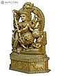 45" Large Idol of Chaturbhuja Lord Ganesha with Holding Laddu | Black Granite Stone Statue
