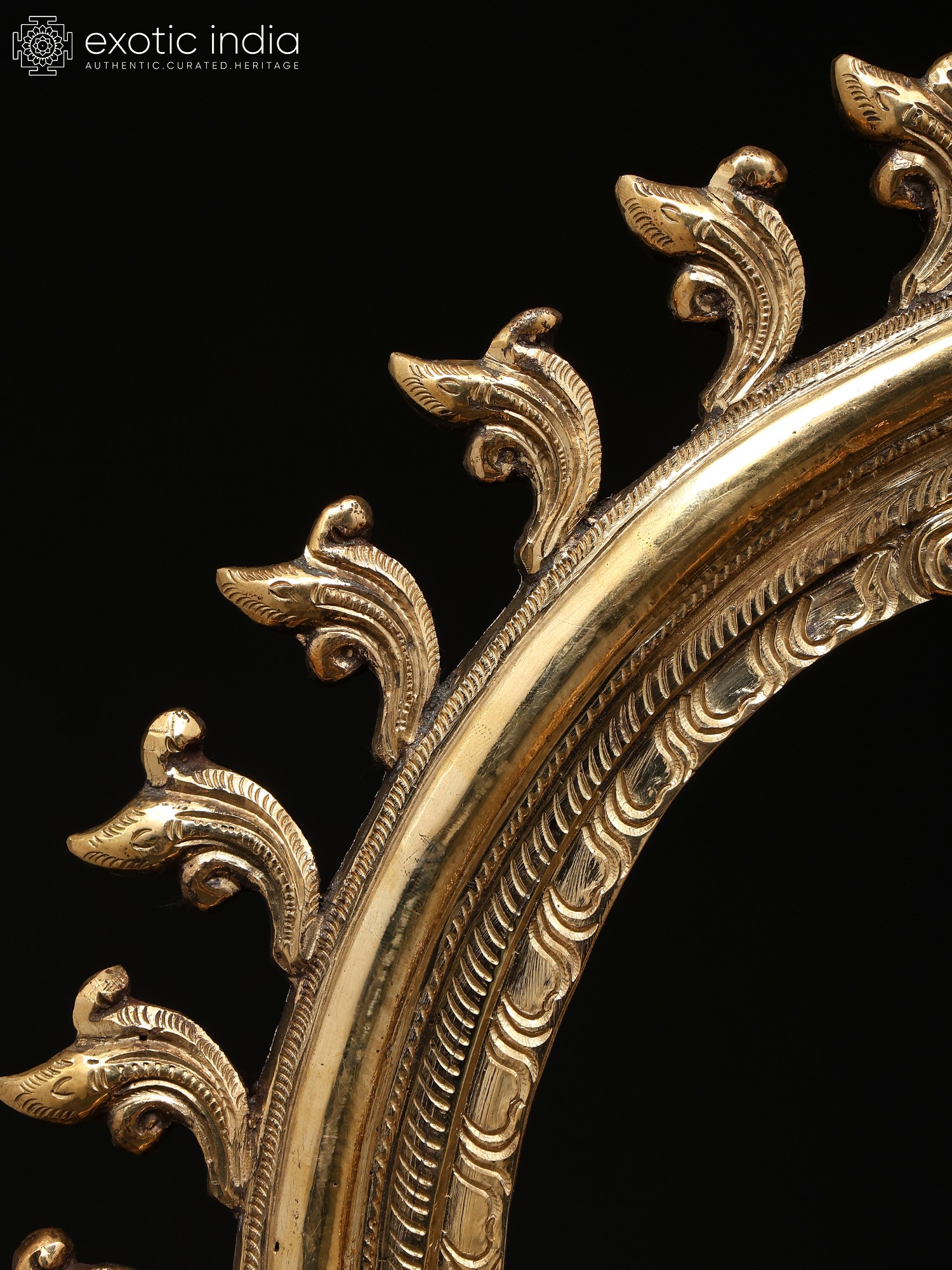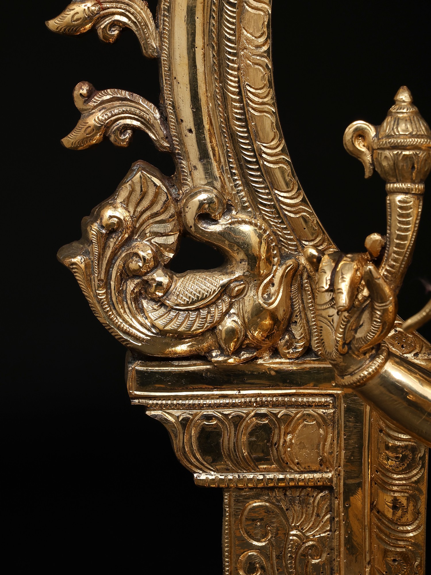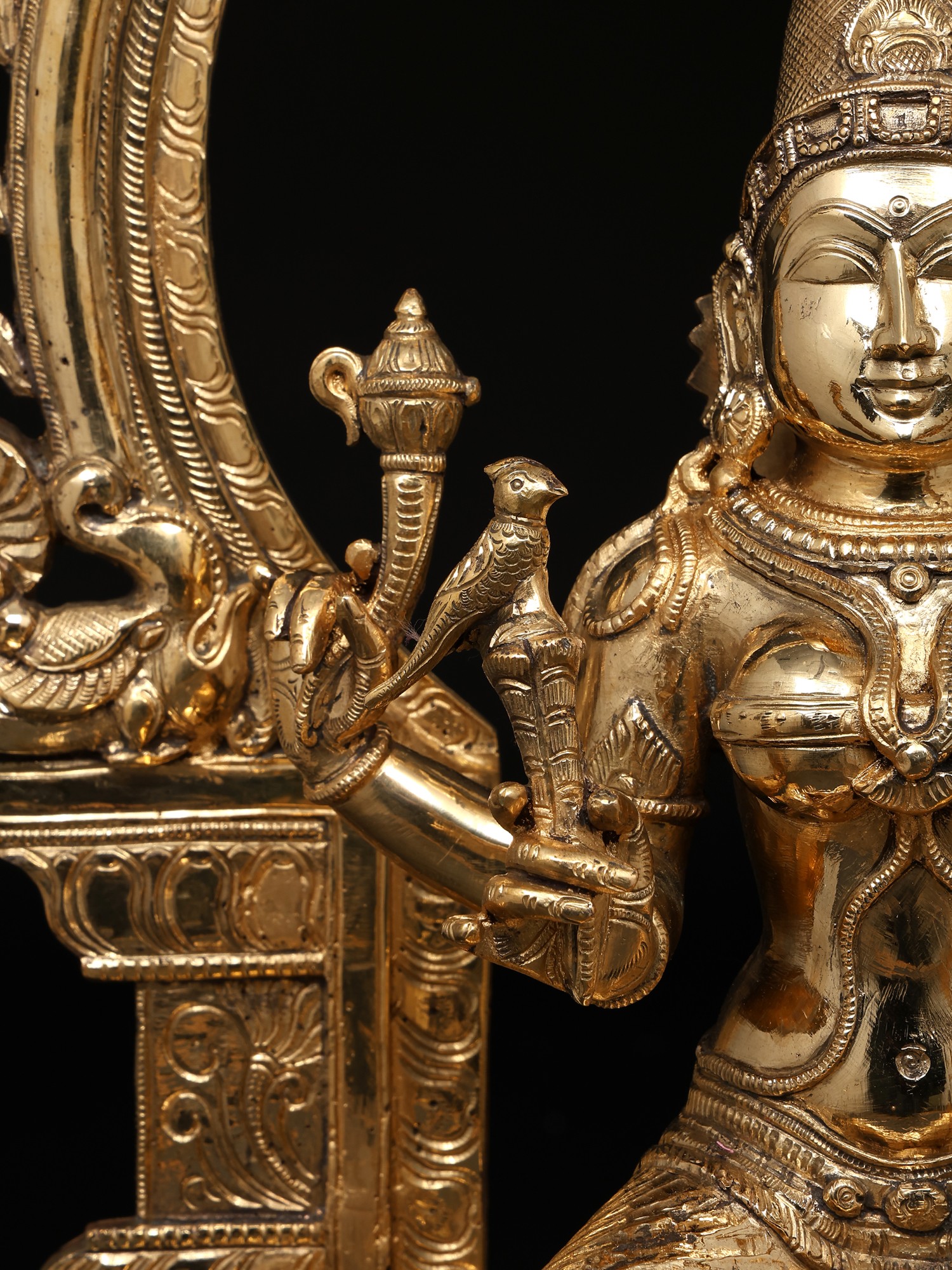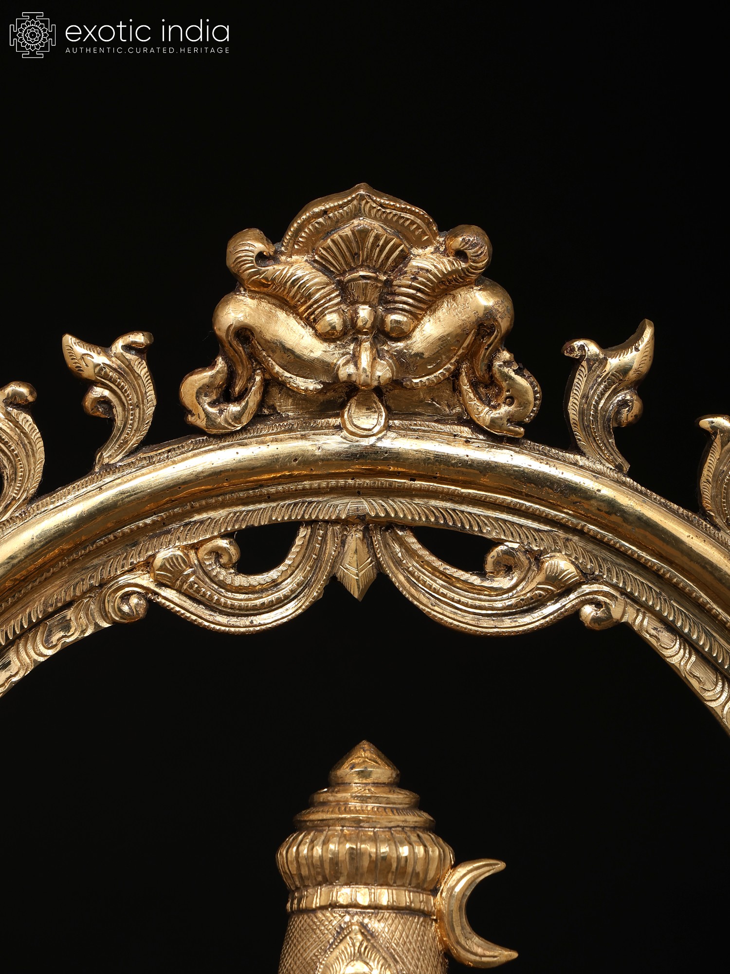 This exquisite statue is the product of the skilled artisans of Swamimalai, a town renowned for its centuries-old tradition of bronze casting. Passed down through generations, these artisans employ the Madhuchista Vidhana, or lost-wax technique, a process demanding precision, patience, and a deep understanding of both metallurgy and spiritual iconography. Each statue is a unique masterpiece, born from the molten heart of the five metals and shaped by the hands of masters who have dedicated their lives to the art of divine representation. Measuring an impressive 21.0 x 15.0 x 11.0 inches, this statue commands attention and reverence. It is more than just a decorative object; it is a conduit to the divine, an embodiment of timeless wisdom and boundless grace, a legacy of artistic excellence from Swamimalai, the land of sacred bronze.