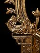 Rajarajeshvari is seated upon a majestic throne, adorned with the fearsome Kirtimukha, a guardian figure whose very presence wards off negative energies and protects the devotee. Kirtimukha, often depicted as a grotesque yet benevolent lion-like face, is a symbol of raw power and unwavering vigilance. Legend has it that Kirtimukha was born from the wrath of Shiva himself, tasked with devouring his own insatiable hunger. This act of self-consumption transformed him into a protector, a reminder of the transformative power of sacrifice and control over one's own destructive tendencies. The throne, meticulously crafted in Panchaloha – the sacred five-metal alloy – further amplifies the statue's inherent power. The Panchaloha composition, traditionally consisting of gold, silver, copper, zinc, and iron, is believed to be highly conducive to spiritual energy, enhancing the statue's ability to connect with the divine realm.