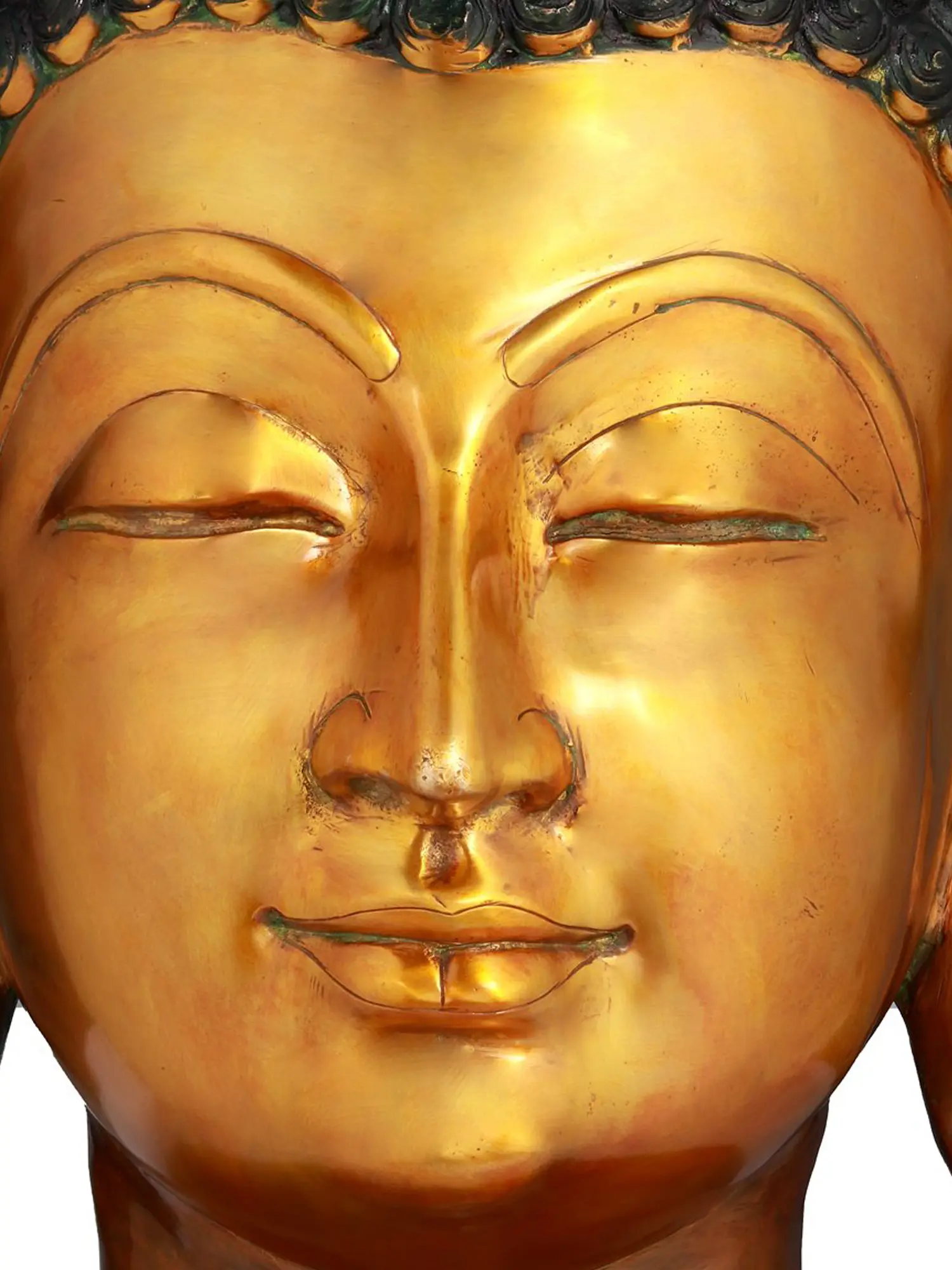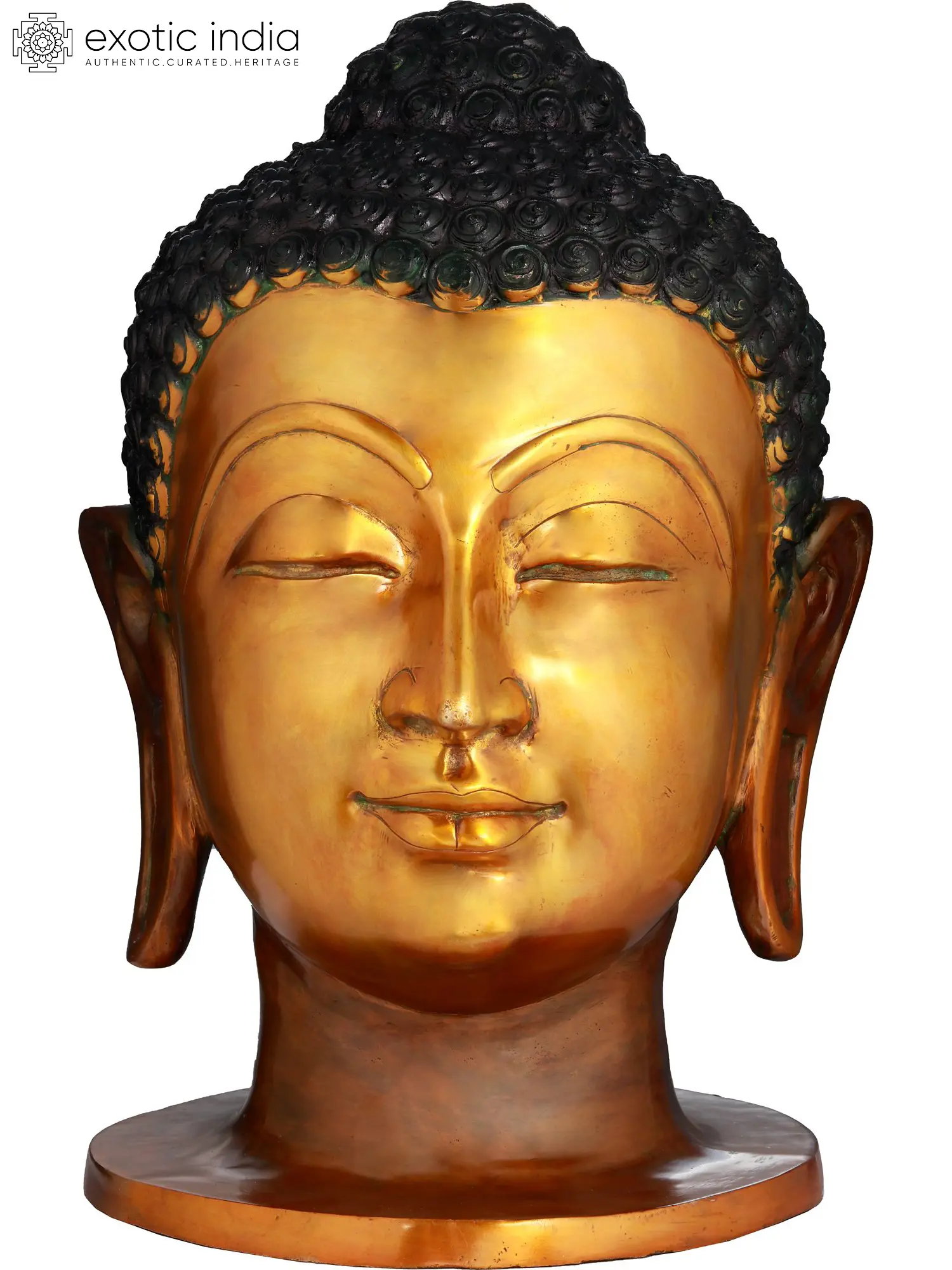 21" Large Size Buddha Head In Brass | Handmade | Made In India