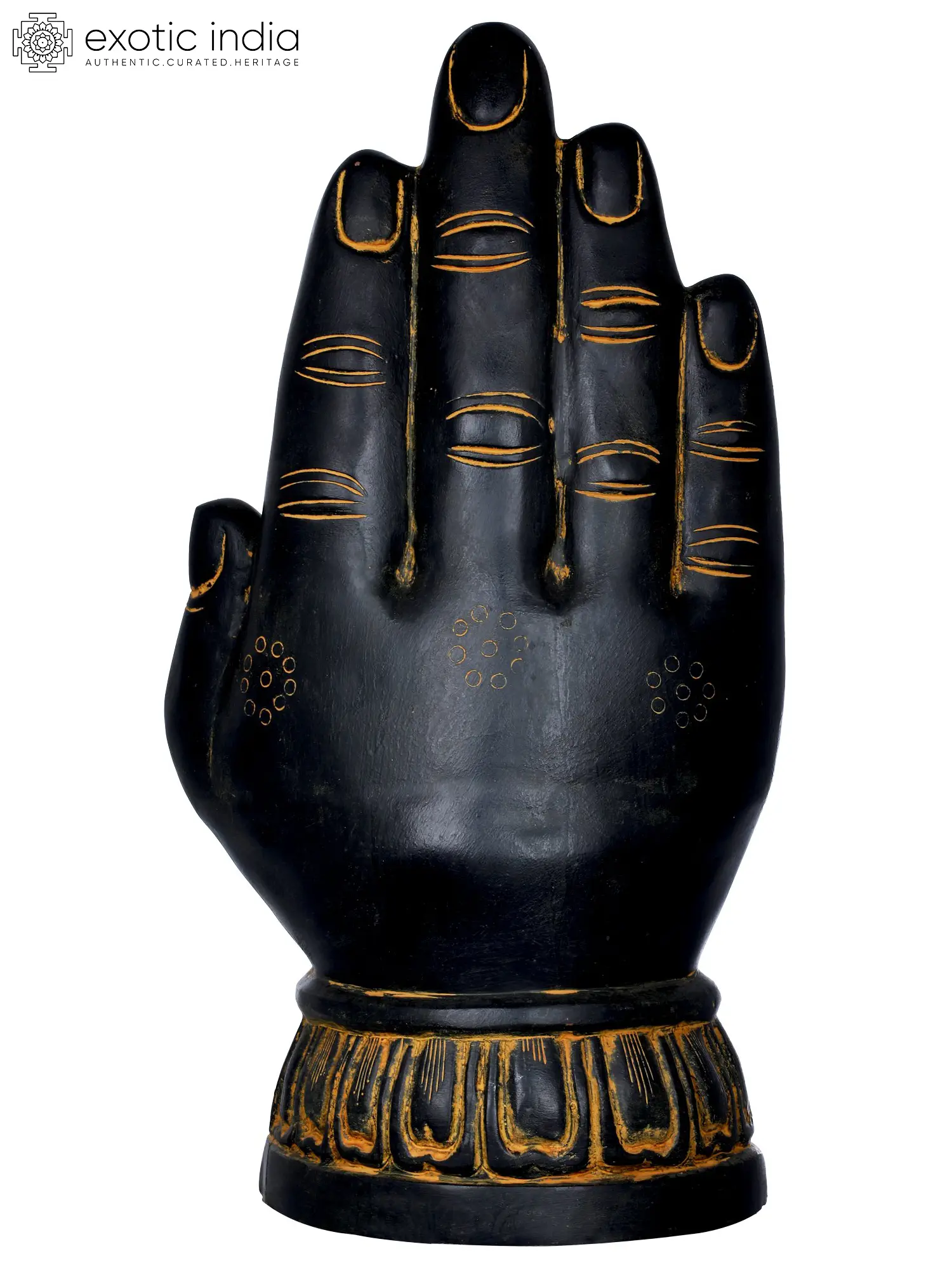 Image of Buddha sculpted on a hand symbolizes that he will enable doers to be at peace with work and maintain divinity. Wrist in the shape of an inverted lotus represents purity and rebirth in the varied aspects of work and life.