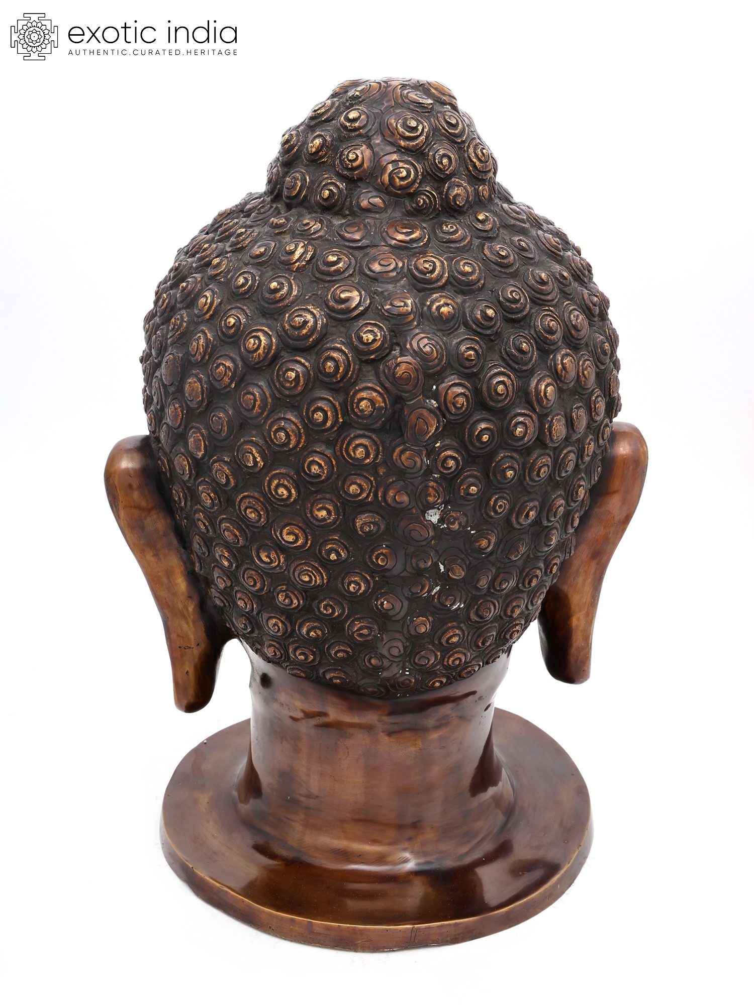 9" Meditating Buddha Head | Brass Statue with Inlay Work
