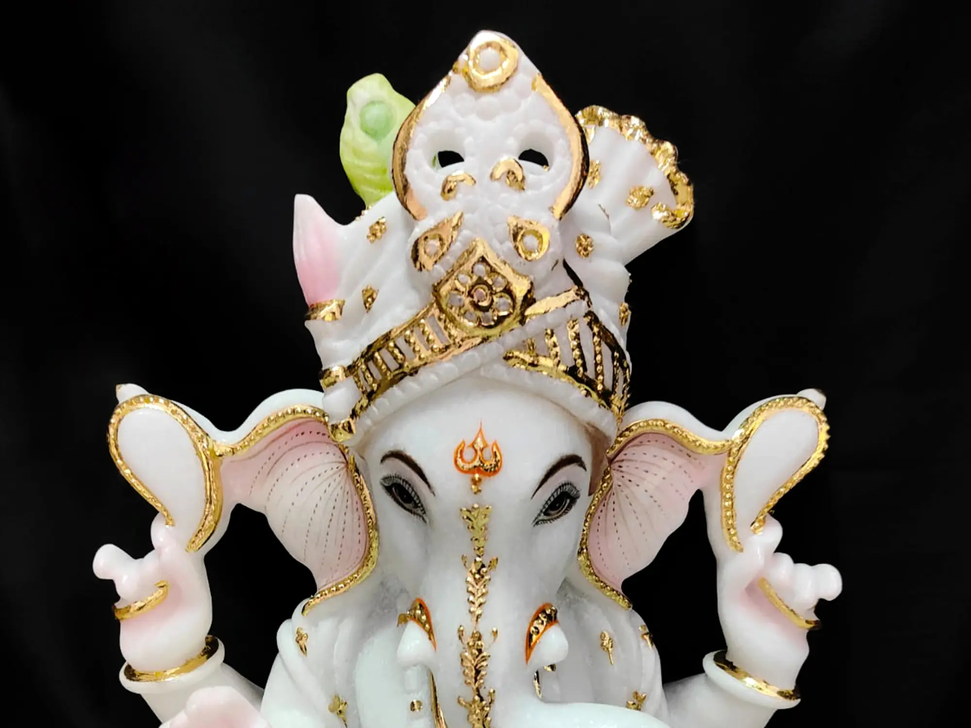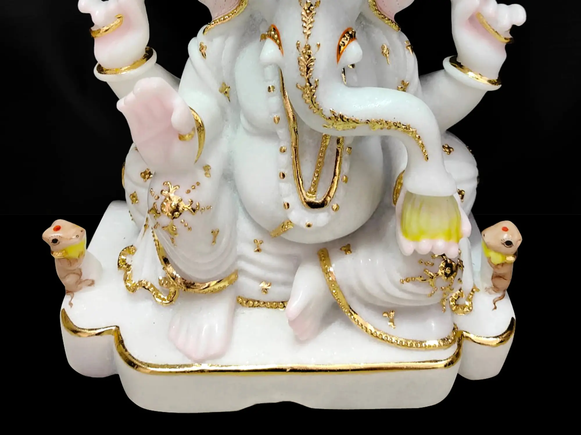 This magnificent marble statue is more than just a decorative piece; it is a conduit of divine energy, designed to elevate your spiritual practice and bring harmony to your living space. Whether placed in your puja room, meditation corner, or as a focal point in your living area, this Ganesha statue will serve as a constant reminder of the power of wisdom, perseverance, and faith. Its substantial presence, coupled with the pristine beauty of the marble and the lustrous gold accents, makes it a truly captivating and inspiring addition to any home or office seeking spiritual enrichment and aesthetic elegance. Embrace the divine presence of Ganesha and welcome a new era of blessings and prosperity.