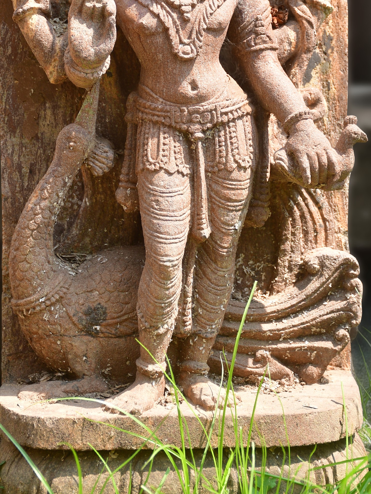 Each nuance of this magnificent form is meticulously carved from robust Orissa sandstone, a material celebrated for its enduring quality and warm, earthy tones. Artisans have painstakingly brought the divine figure to life, ensuring every fold of fabric, every delicate adornment, and the serene countenance are rendered with exceptional detail and skill. The rich patina achieved through years of natural exposure speaks to its authentic heritage and profound artistic lineage.