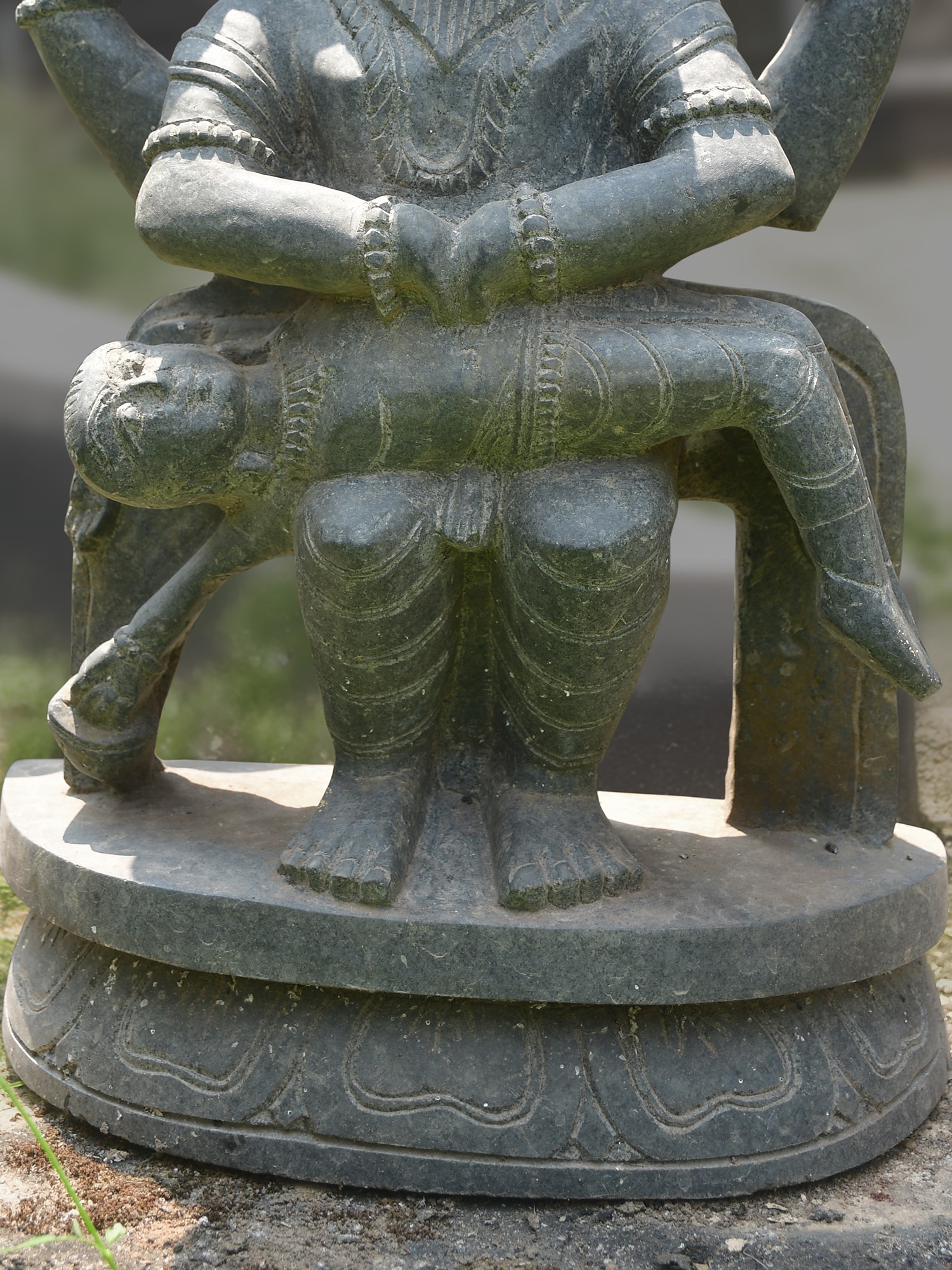 This representation draws deeply from Hindu mythology, specifically the fierce avatar of Vishnu known for his unwavering protection of the devout. It symbolizes the triumph of righteousness over malevolence, a theme that has resonated for centuries and continues to inspire awe and devotion. You will feel the weight of this rich history embedded within the stone.