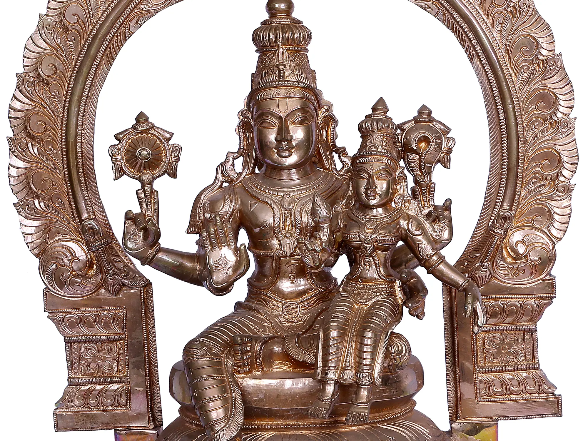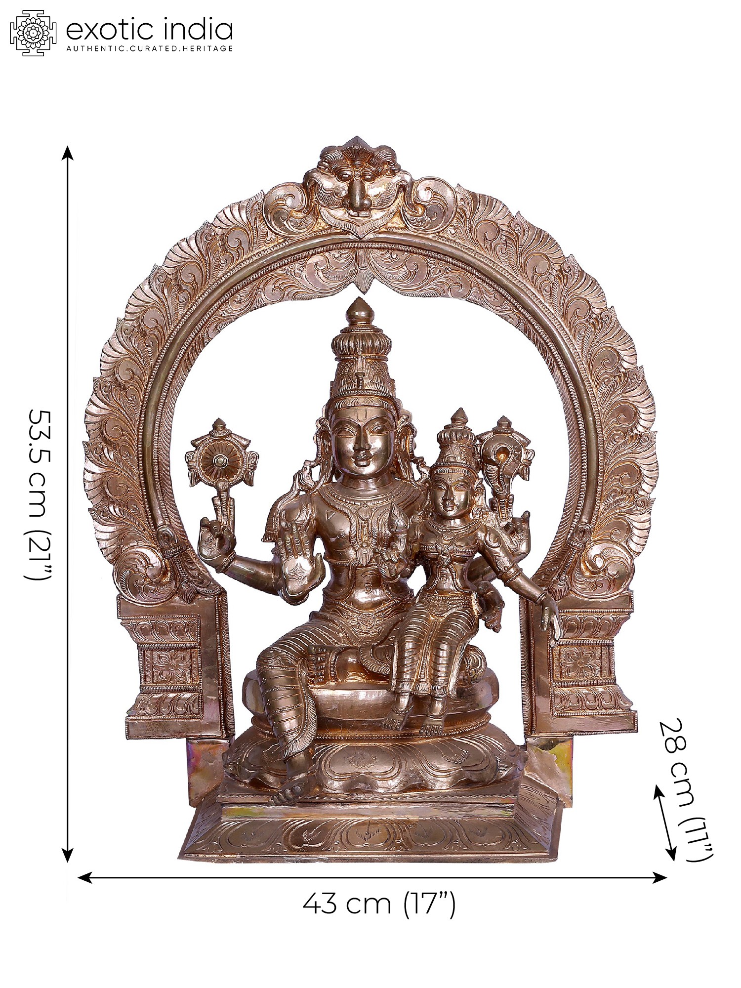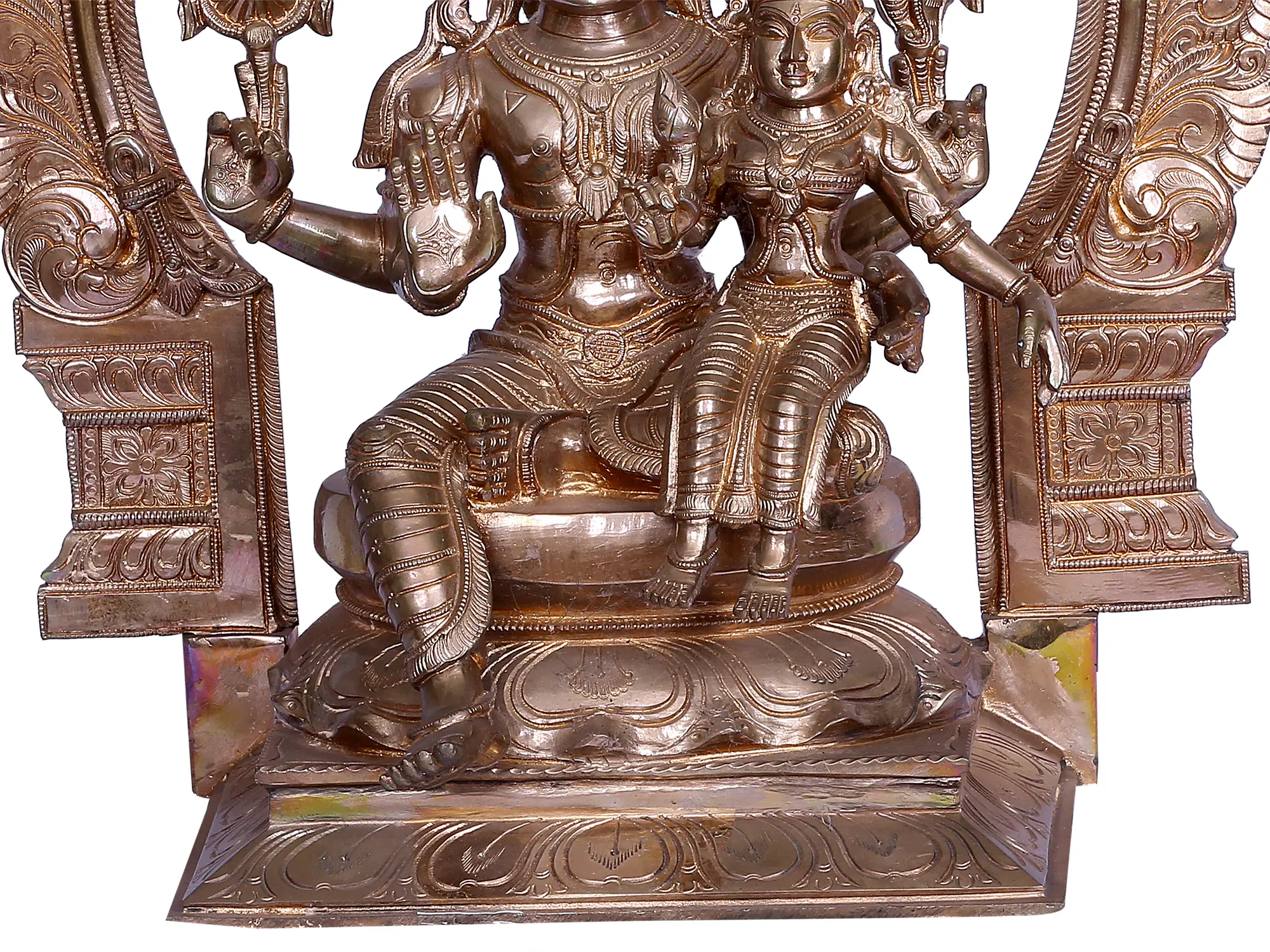 21" Lord Vishnu Seated on Throne with Goddess Lakshmi | Madhuchista Vidhana (Lost-Wax) | Panchaloha Bronze from Swamimalai