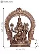 Vishnu also known as Narayana and Hari, is one of the principal deities in Hinduism. In the beautiful sculpture Vishnu is depicted in a sitting position with Goddess Lakshmi in his lap. Sitting on a pedestal podium attached with a floral Kirtimukha throne (face of glory), Lord Vishnu is sitting in Abhaya Mudra (fear not gesture), holding a conch shell in his left hand and a discus in his right hand, symbolising the cycle of existence and Dharma. Adorned in regal attire, Lord Vishnu is dressed with Vaijayanti, anklets, bracelets and a crown. While Goddess Lakshmi is carrying a lotus in her right hand, symbolising knowledge, self-realisation, and liberation. Embroidered with a beautiful dress, heavy necklaces, bracelets, and a crown, she is symbolising fortune and Wealth.
