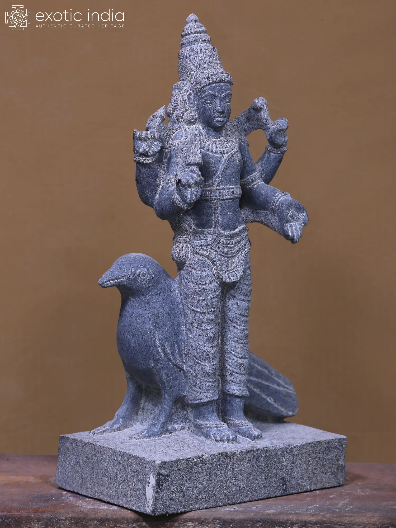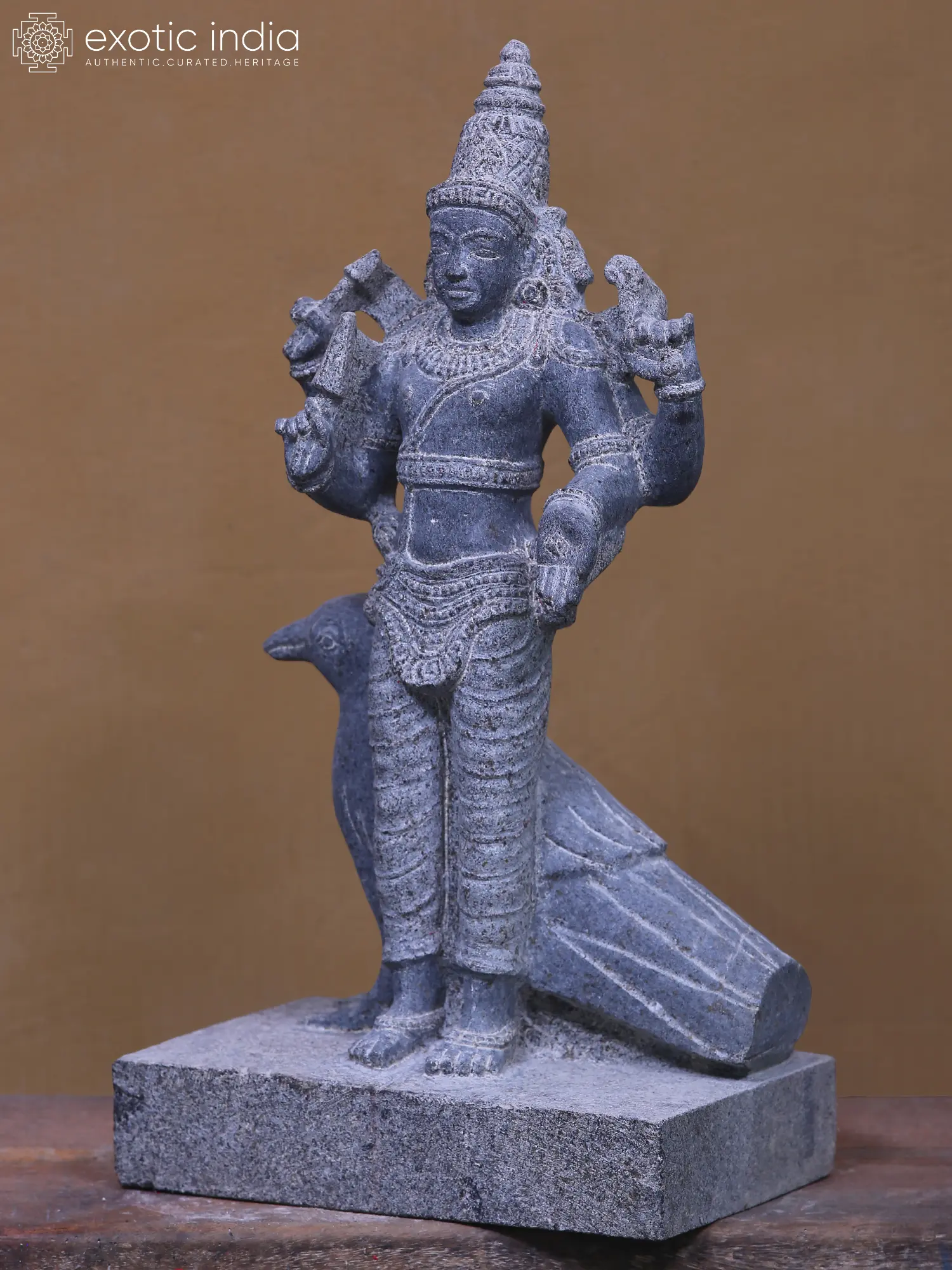 21" Shani Graha Standing Pose on Base | Black Granite Stone Statue
