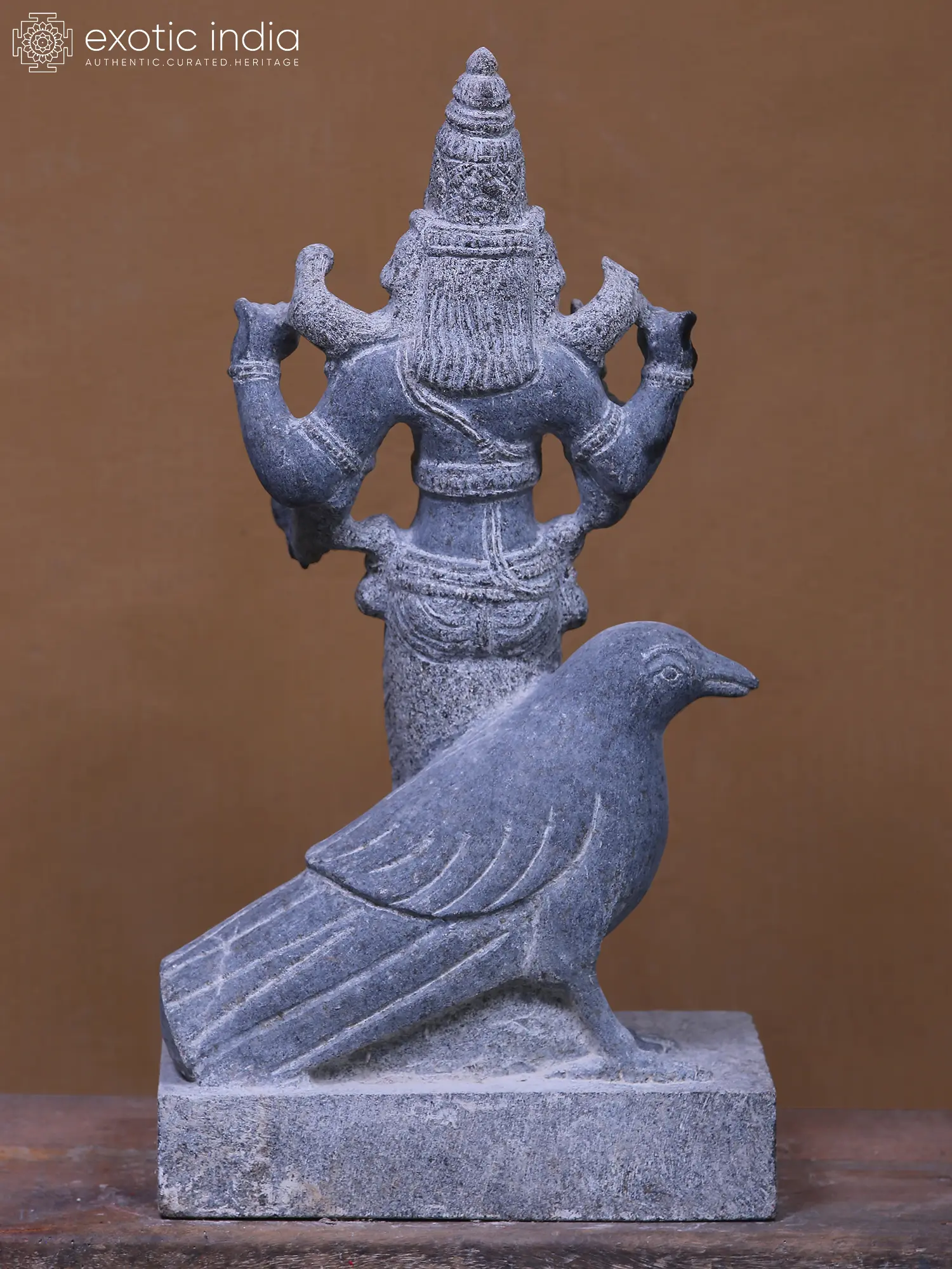 The statue’s design beautifully represents Shani's character. He is presented in a stately stance, emphasizing his authority and unwavering commitment to justice. The detailed carvings of his attire and the precise representation of his pose exude strength and composure. The accompanying bird, often represented as a crow or a kite, symbolizes Shani's swift delivery of karma. The black granite material adds a weight to the piece that aptly mirrors Shani's significant role in life's karmic journey. It is a powerful reminder of the importance of righteous actions and the eventual accountability for our choices.