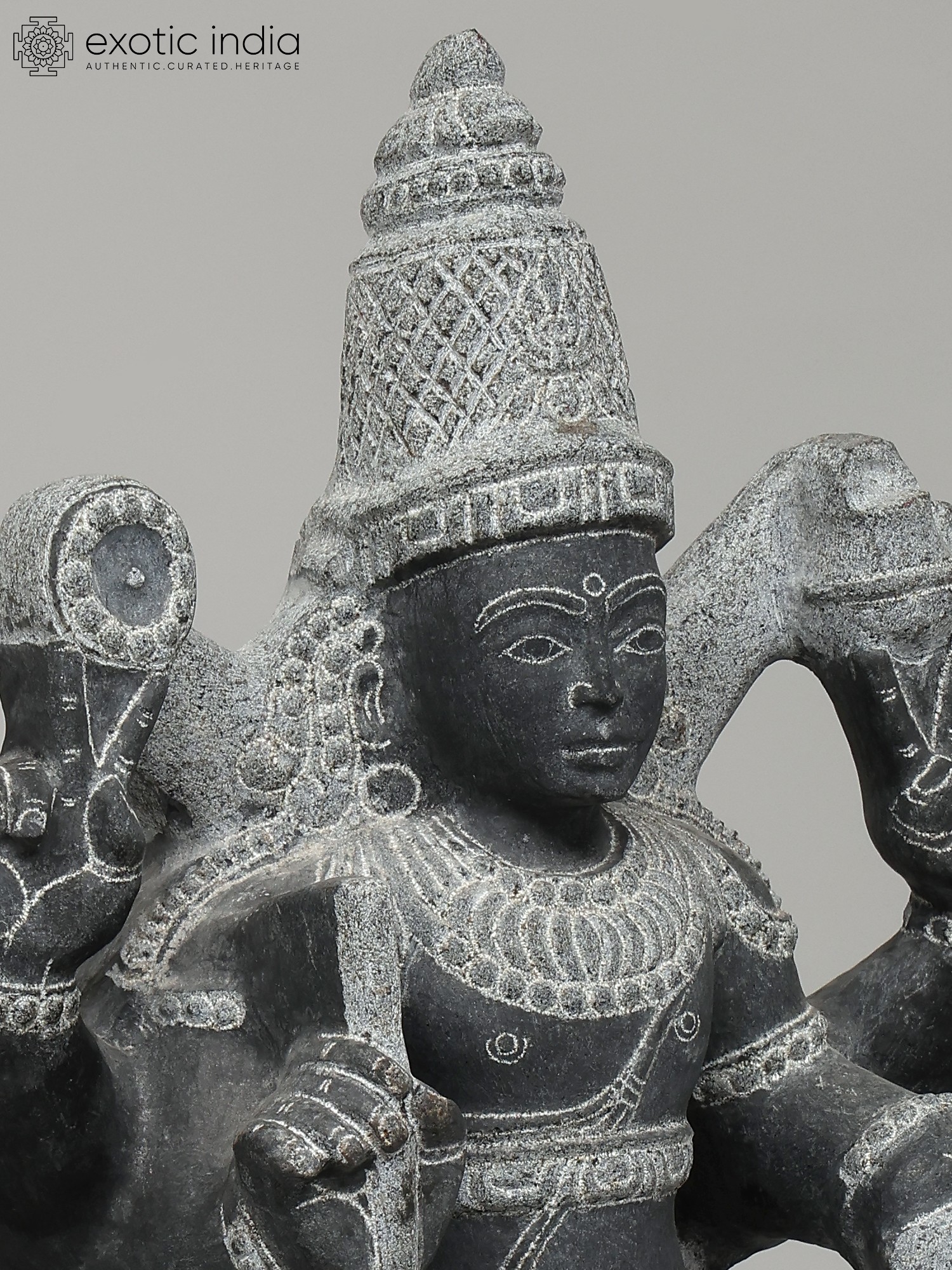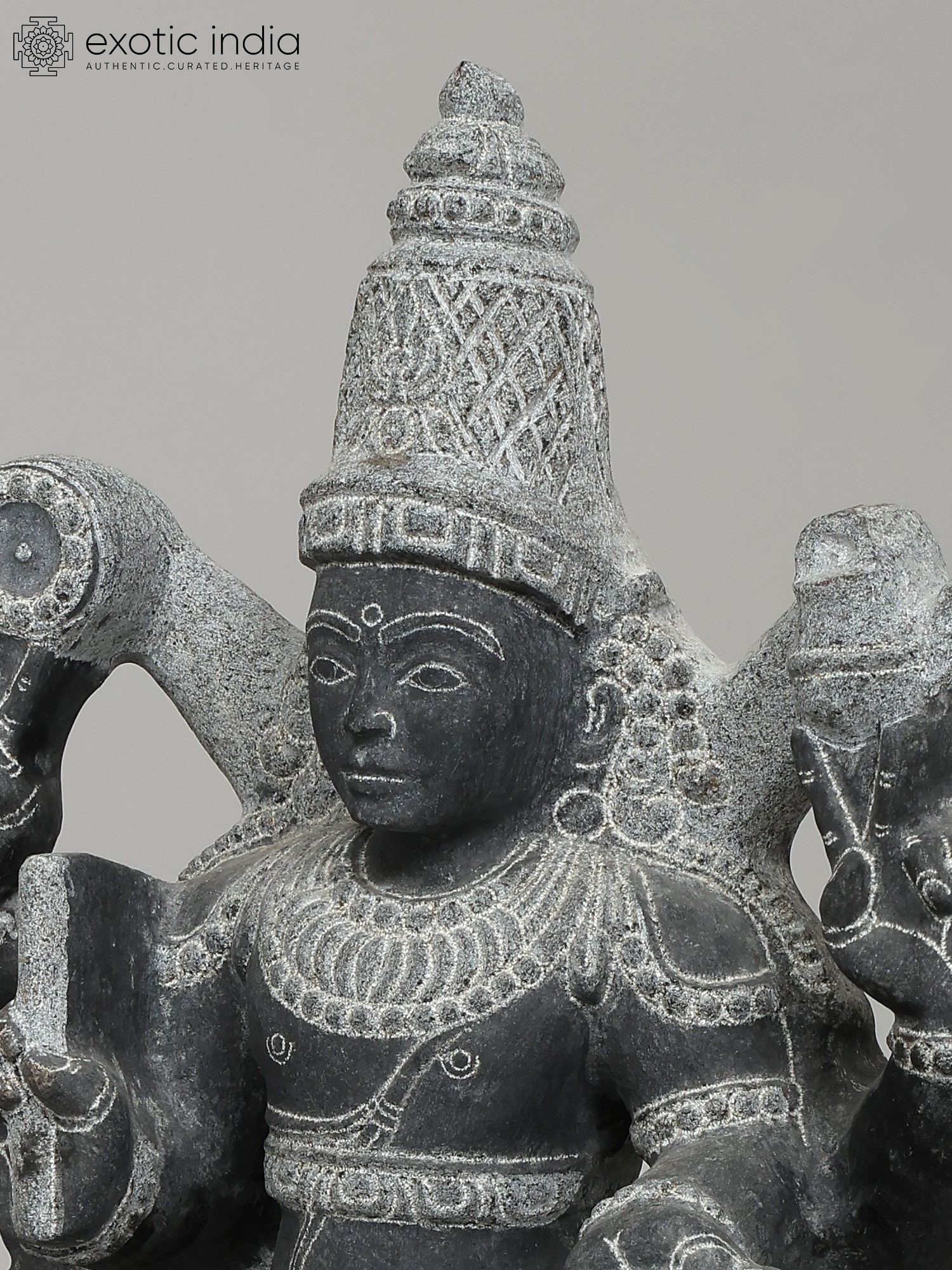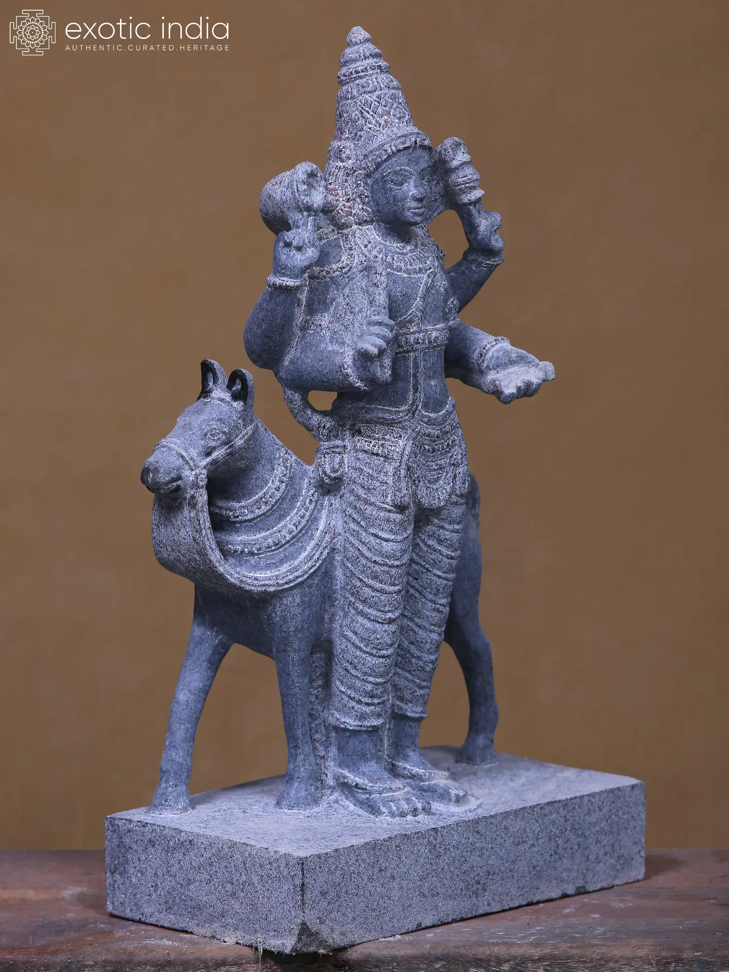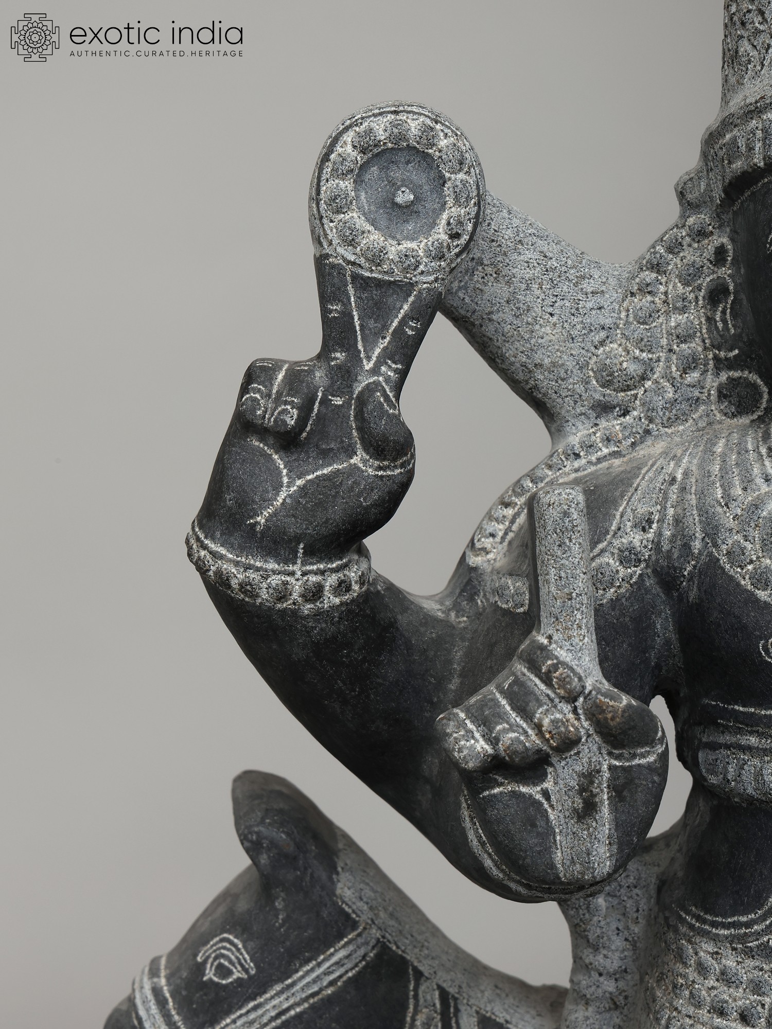 21" Shukra Graha With Vahana - Planet | Black Granite Stone Statue