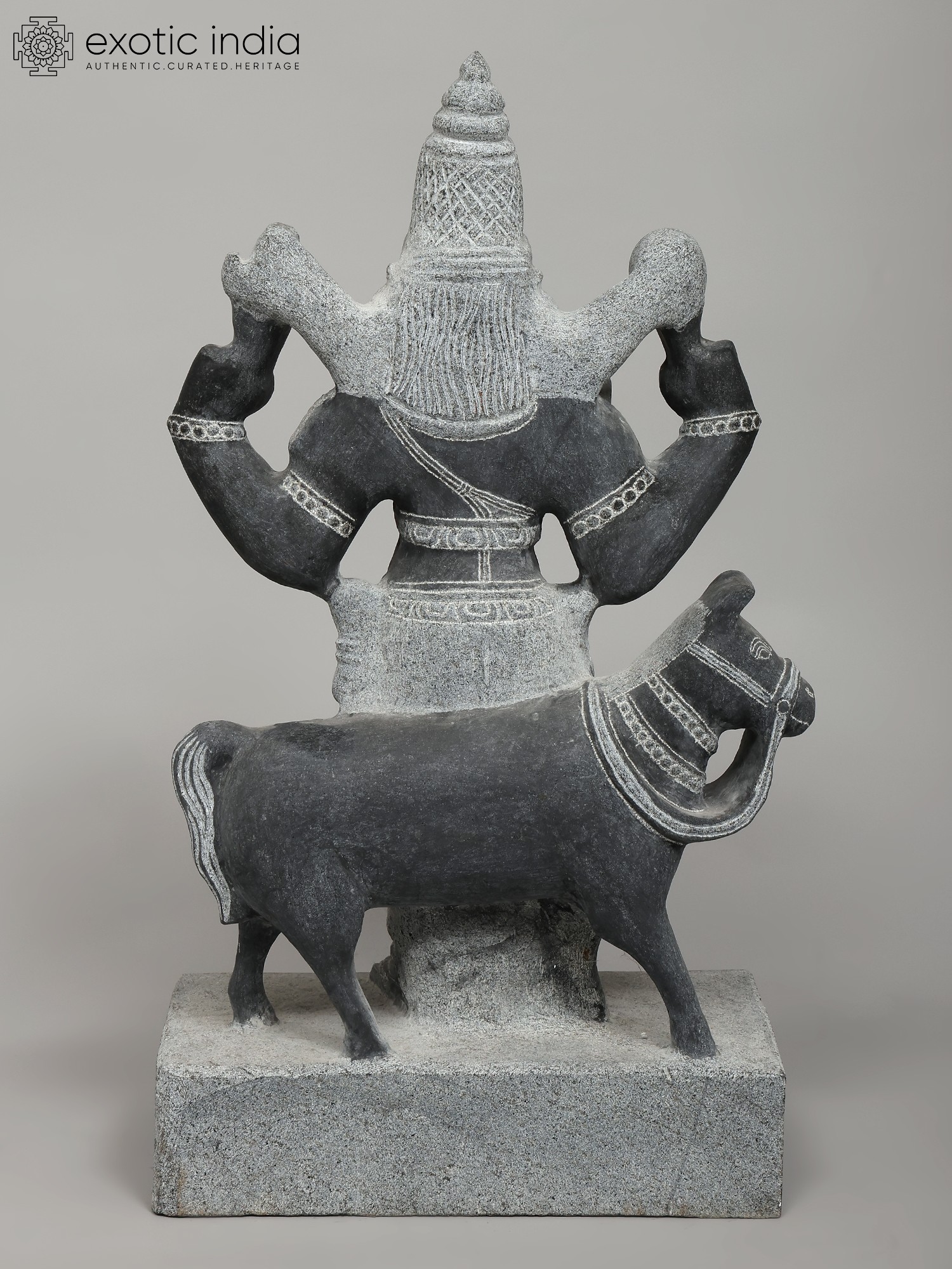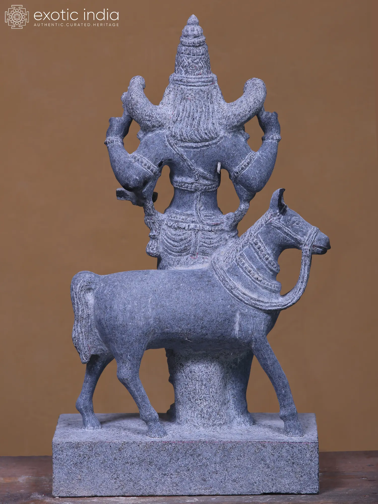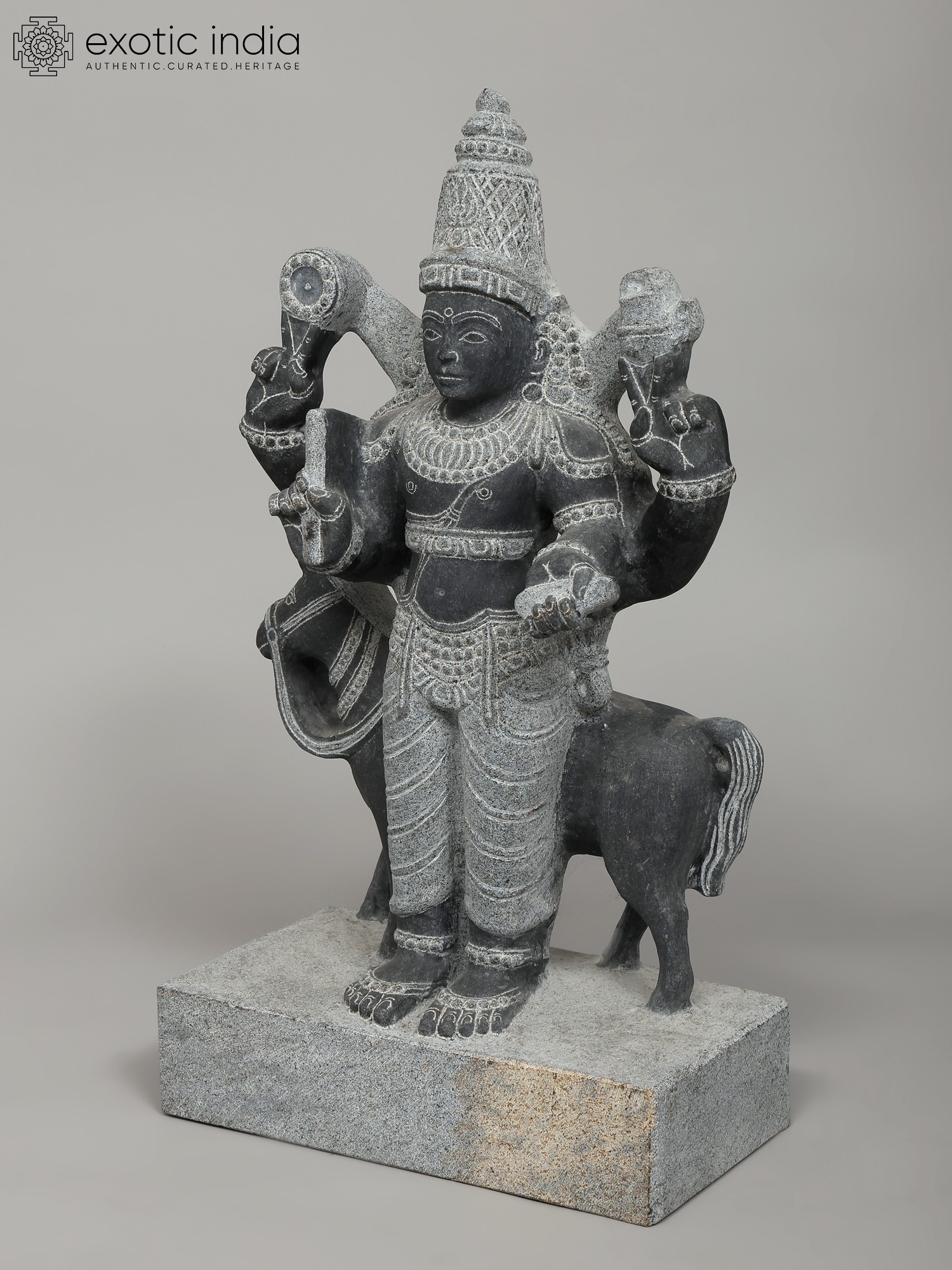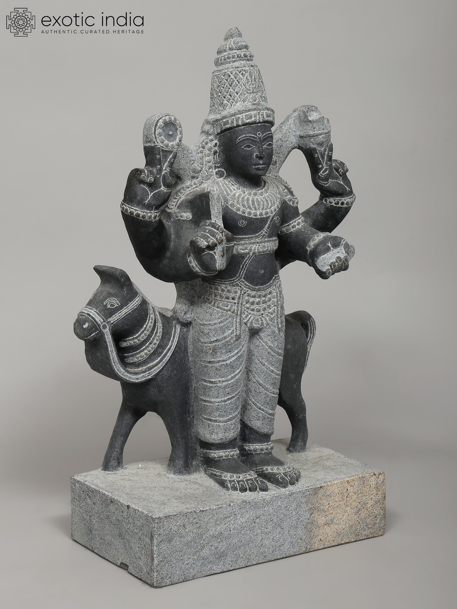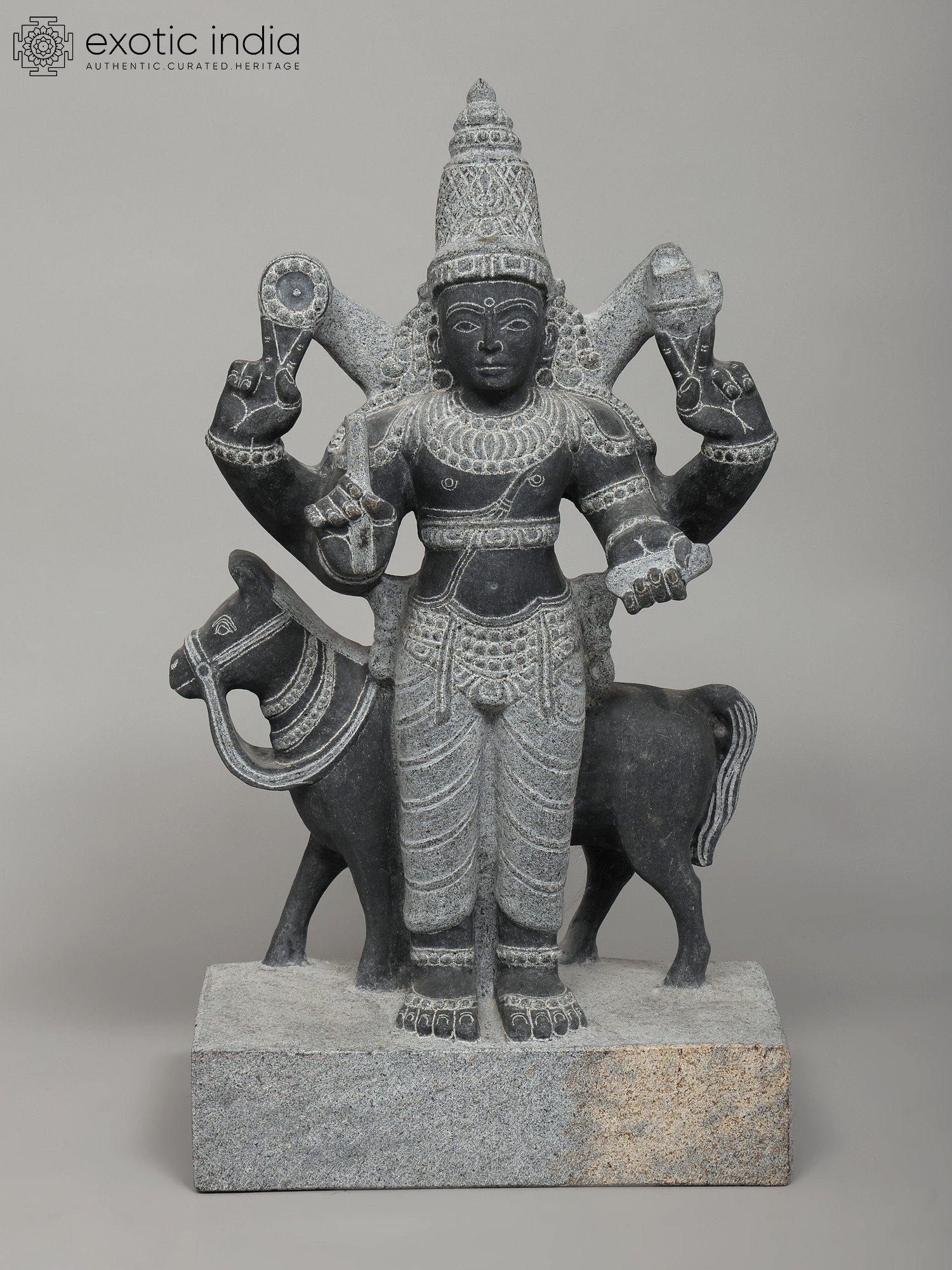 21" Shukra Graha With Vahana - Planet | Black Granite Stone Statue