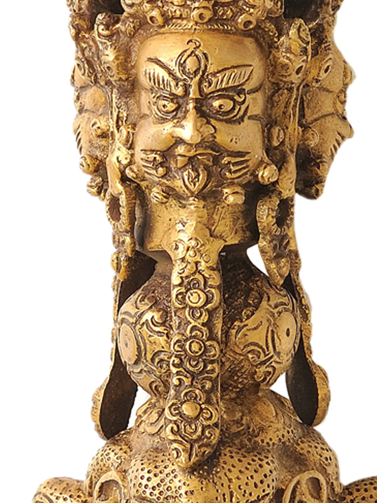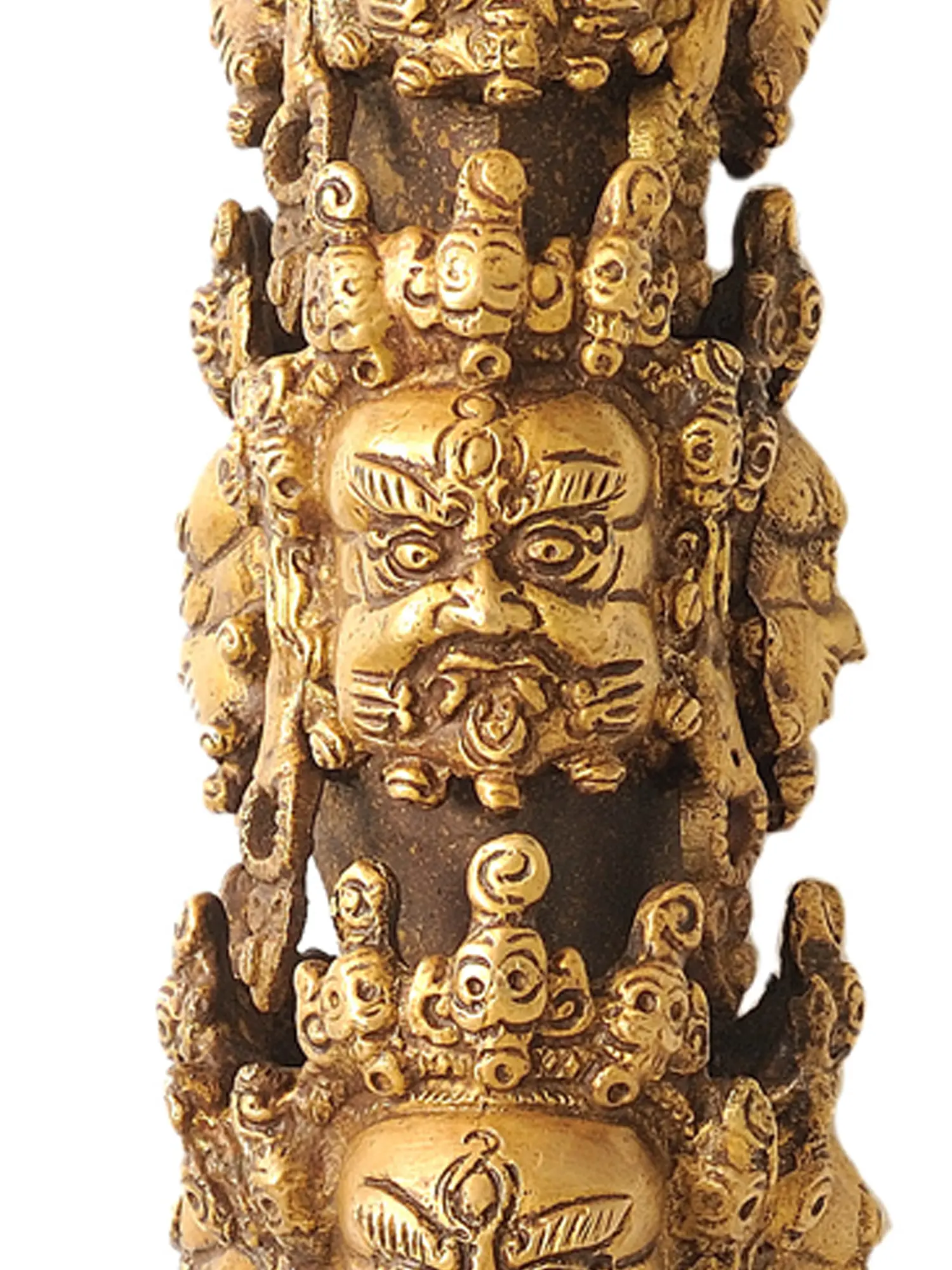 Mahakala is a prominent figure in Vajrayana Buddhism, particularly in Tibetan and Himalayan traditions. This wrathful deity symbolizes protection, transformation, and the removal of obstacles. Mahakala Phurpa signifies unwavering determination to conquer obstacles on the path to enlightenment. Devotees engage in rituals and ceremonies involving the phurpa, a ritual dagger or peg, to seek protection, transform negativity, and eliminate obstructions. Mahakala Phurpa is a powerful guardian and a symbol of fierce compassion, offering guidance and assistance to those on the spiritual journey, emphasizing the ability to confront and overcome challenges.