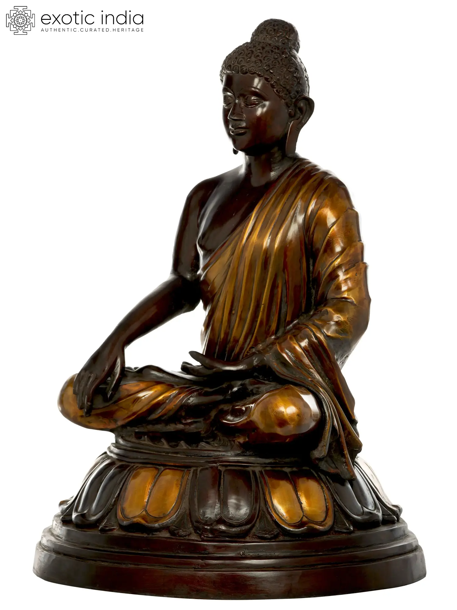 21" Tibetan Buddhist Lord Buddha in Bhumisparsha Mudra In Brass | Handmade | Made In India