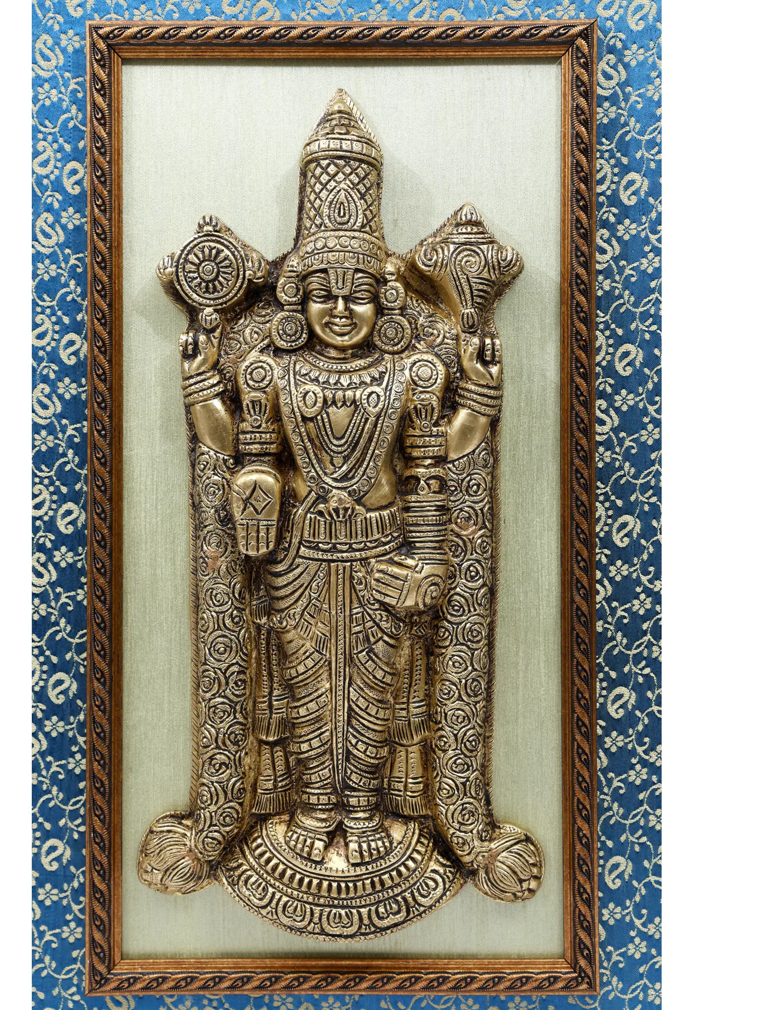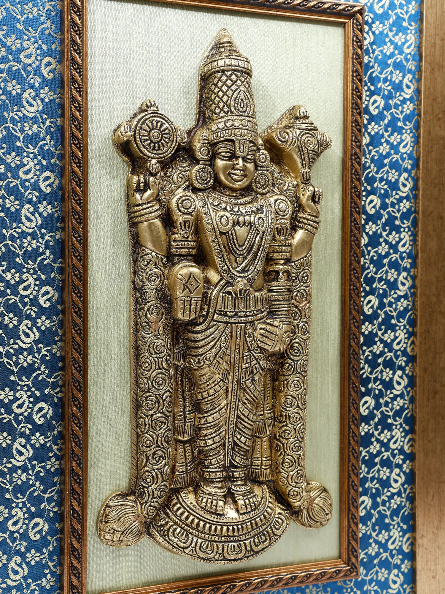 This magnificent wall hanging captures the revered form of Lord Venkateshvara, symbolizing wealth, prosperity, and protection.