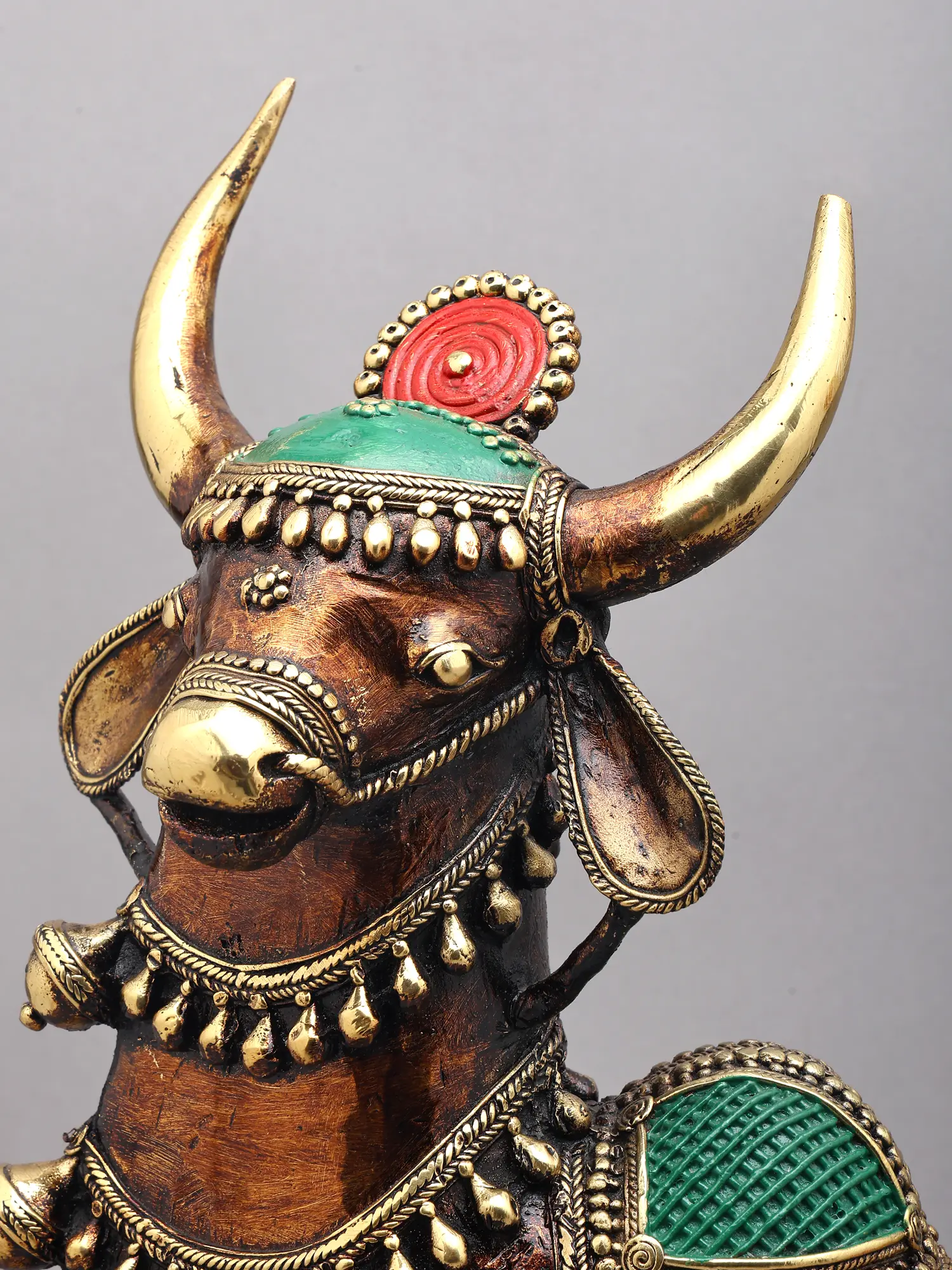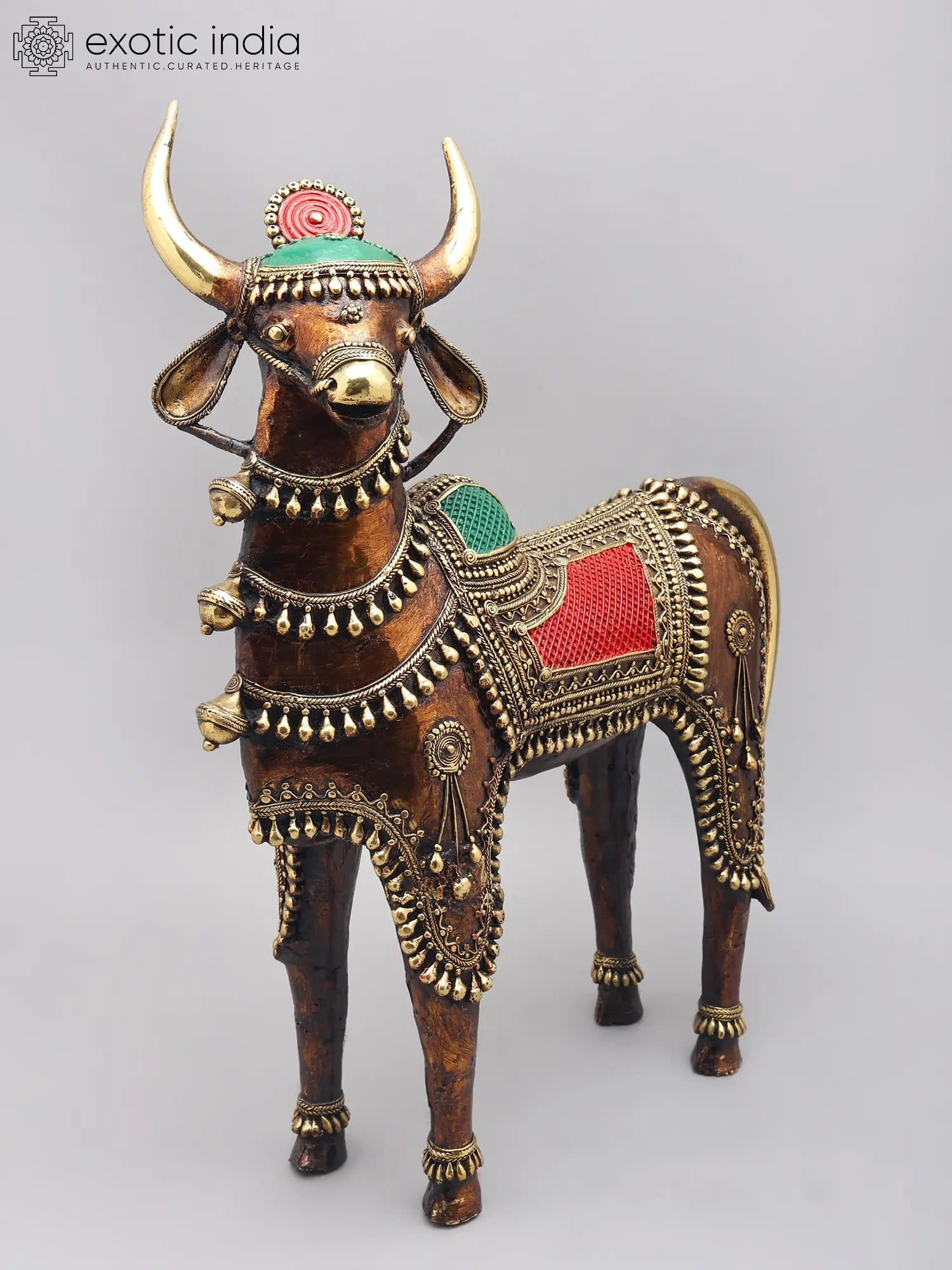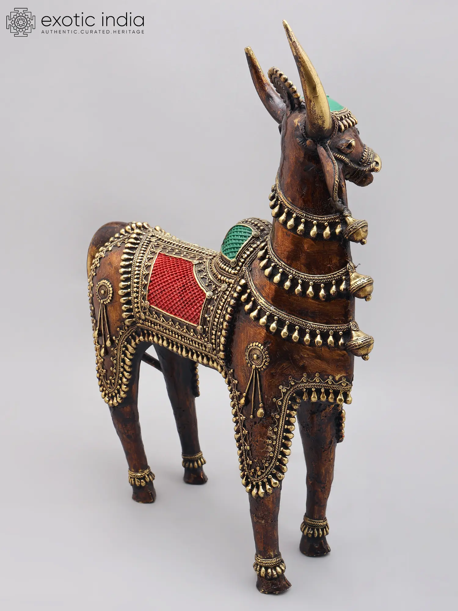7" Dhokra Art Nandi Statue in Brass | Handmade | Made In India