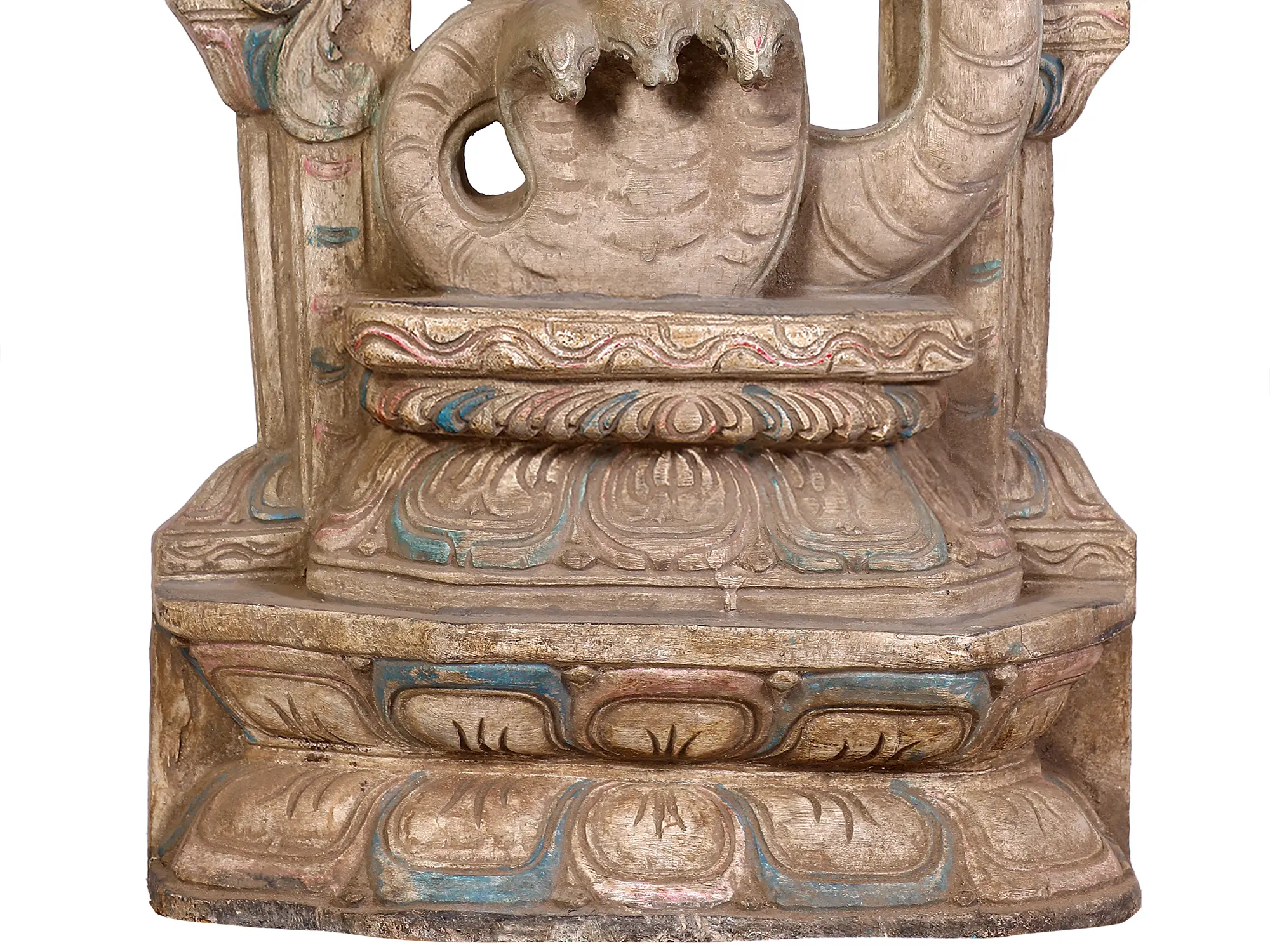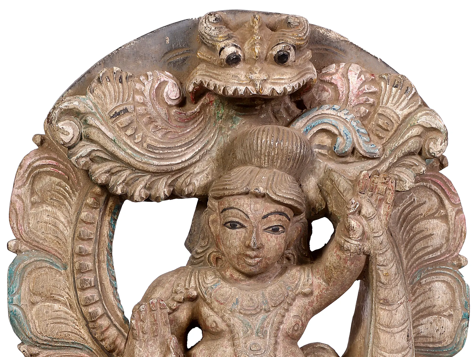 34" Large Lord Krishna Standing on Lotus Playing Flute | Wood Carved Statue